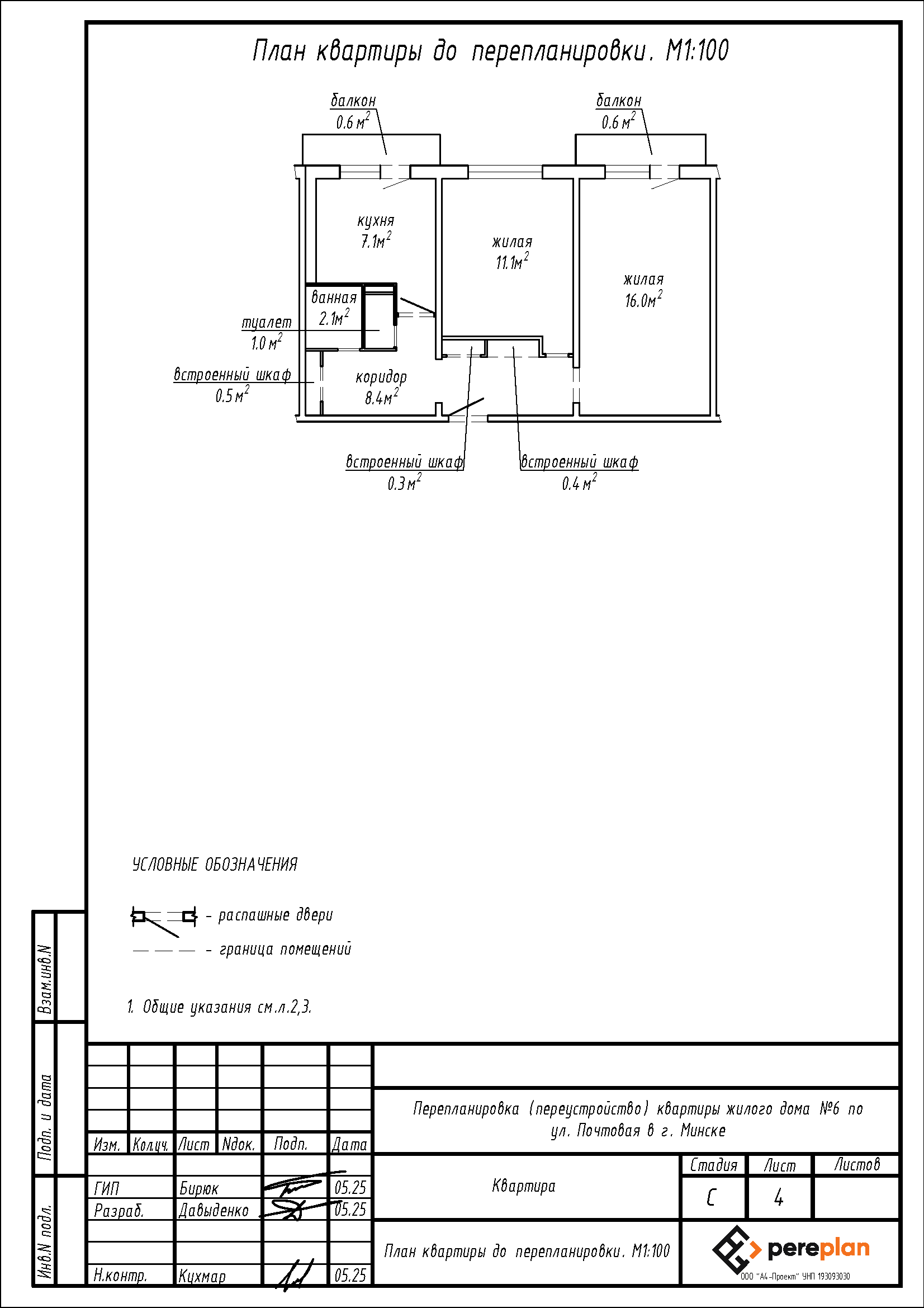 Перепланировка квартиры по ул. Почтовая, 6 в г. Минске