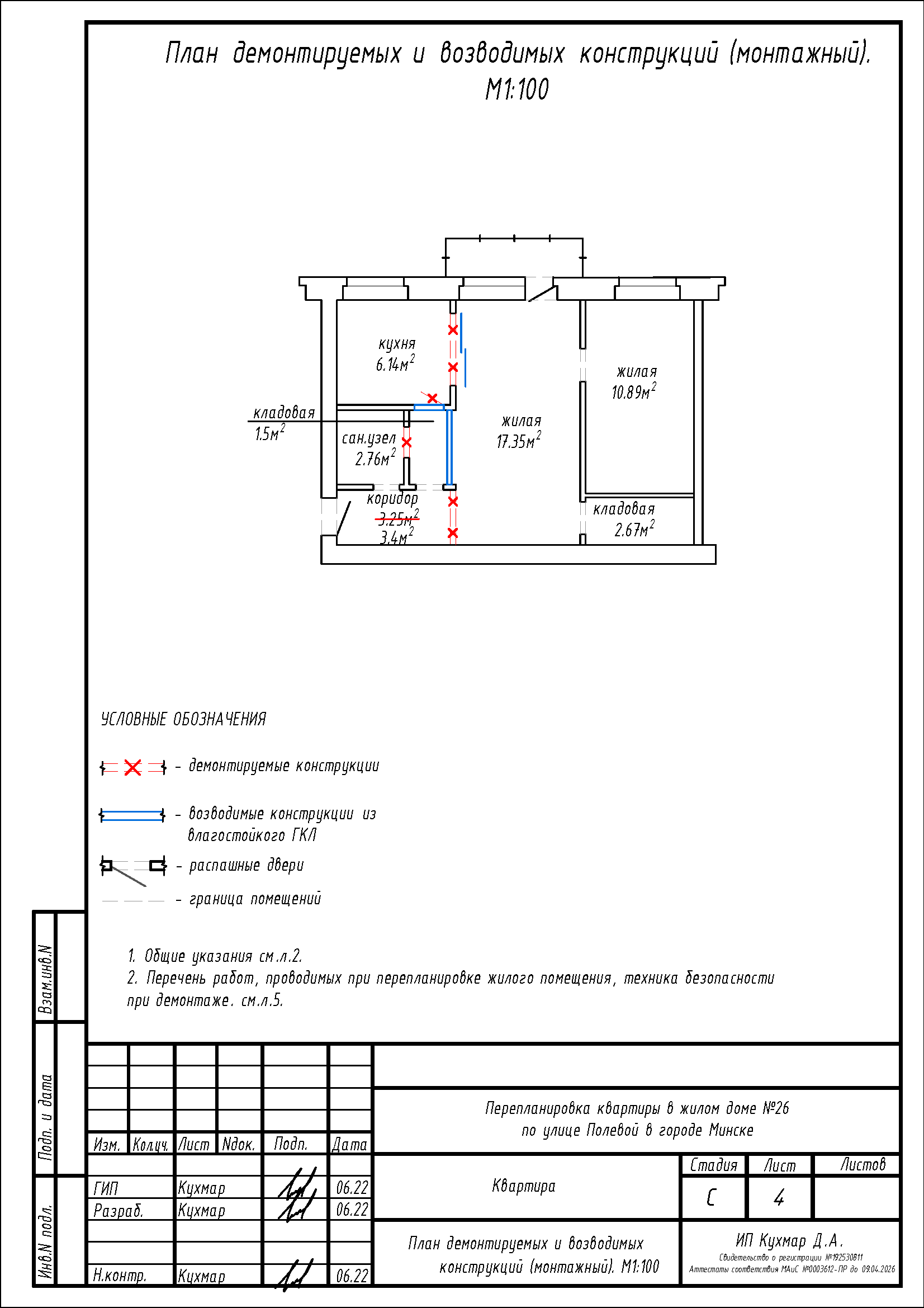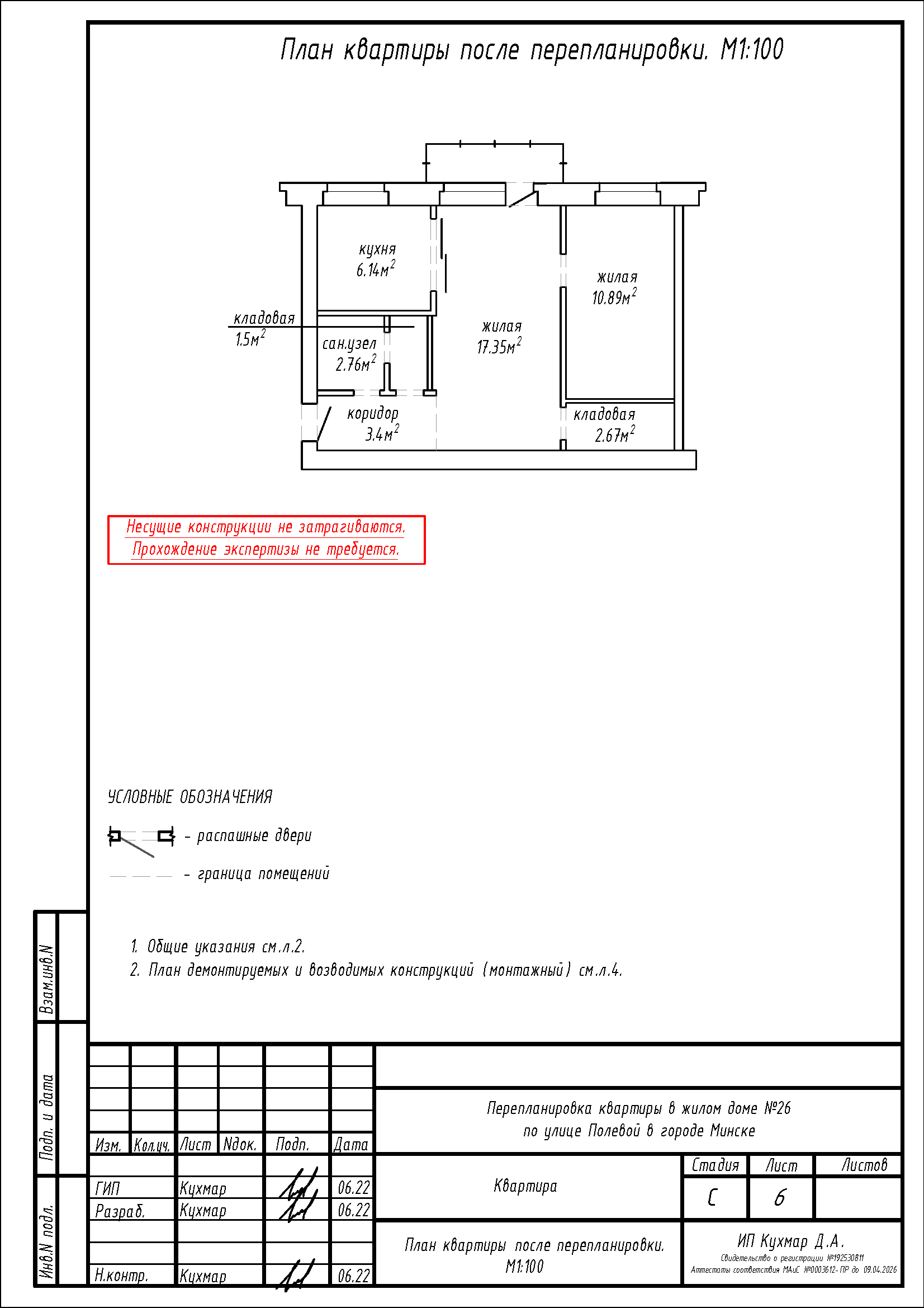 Перепланировка квартиры по ул. Полевая, 26 в г. Минске