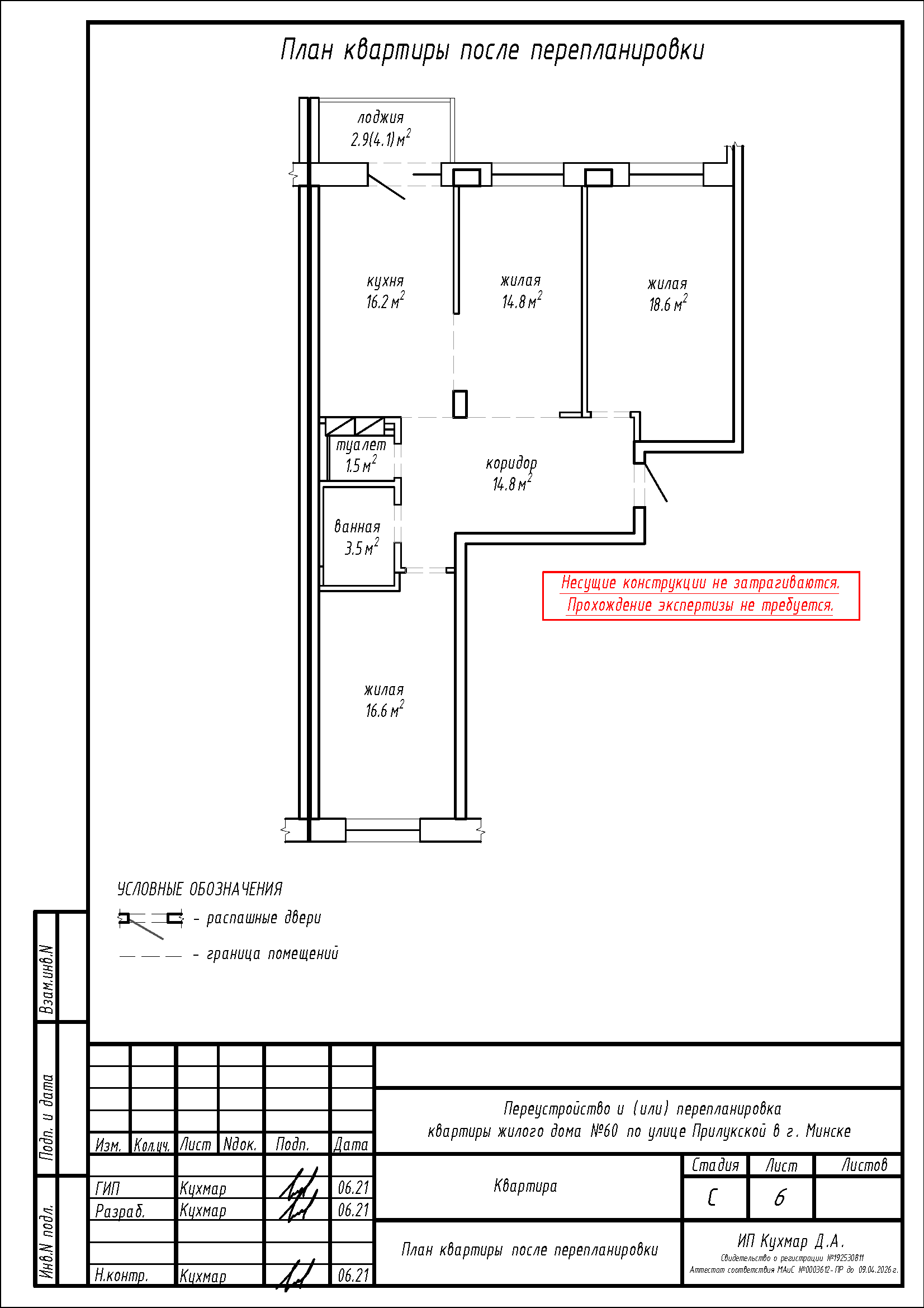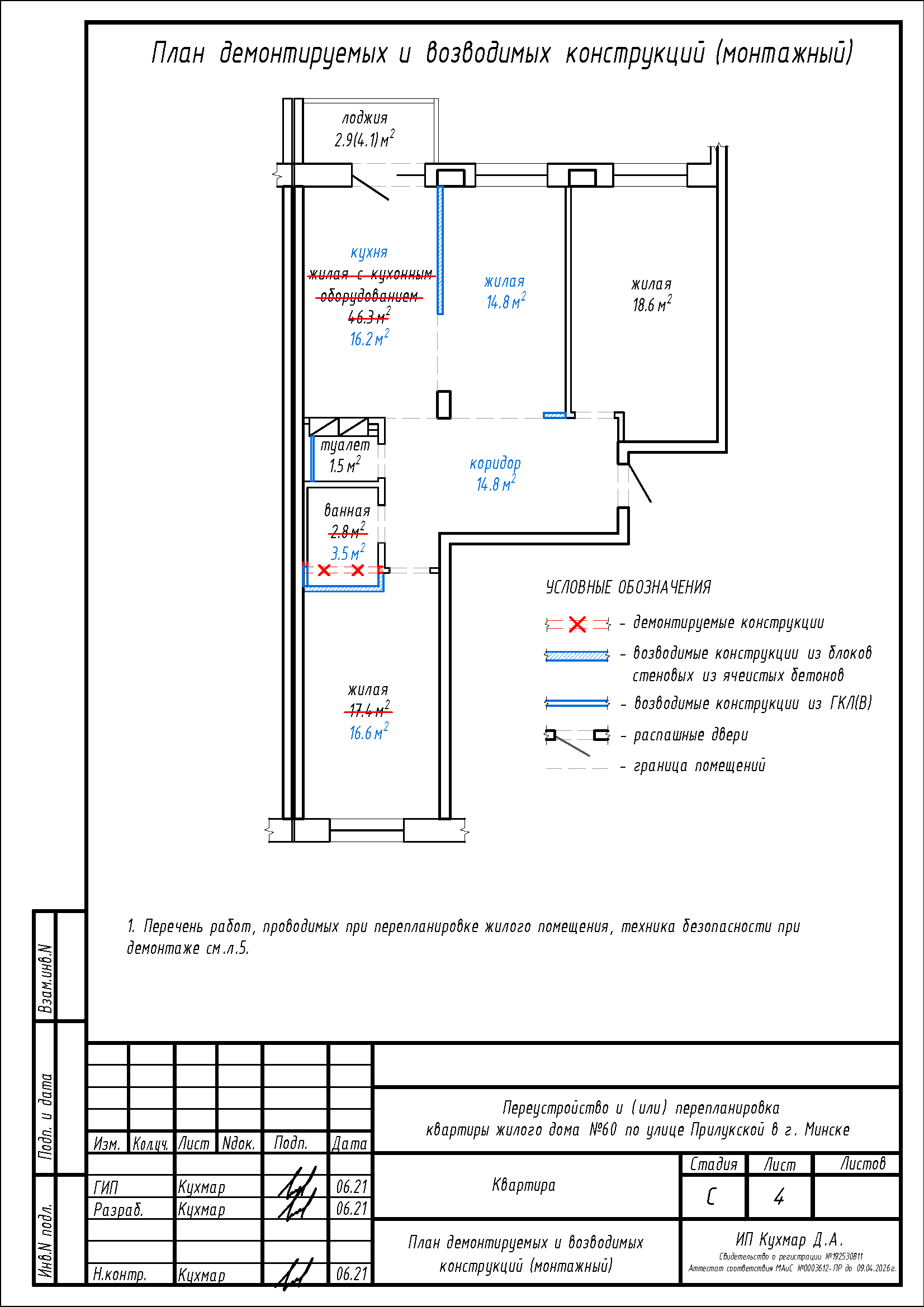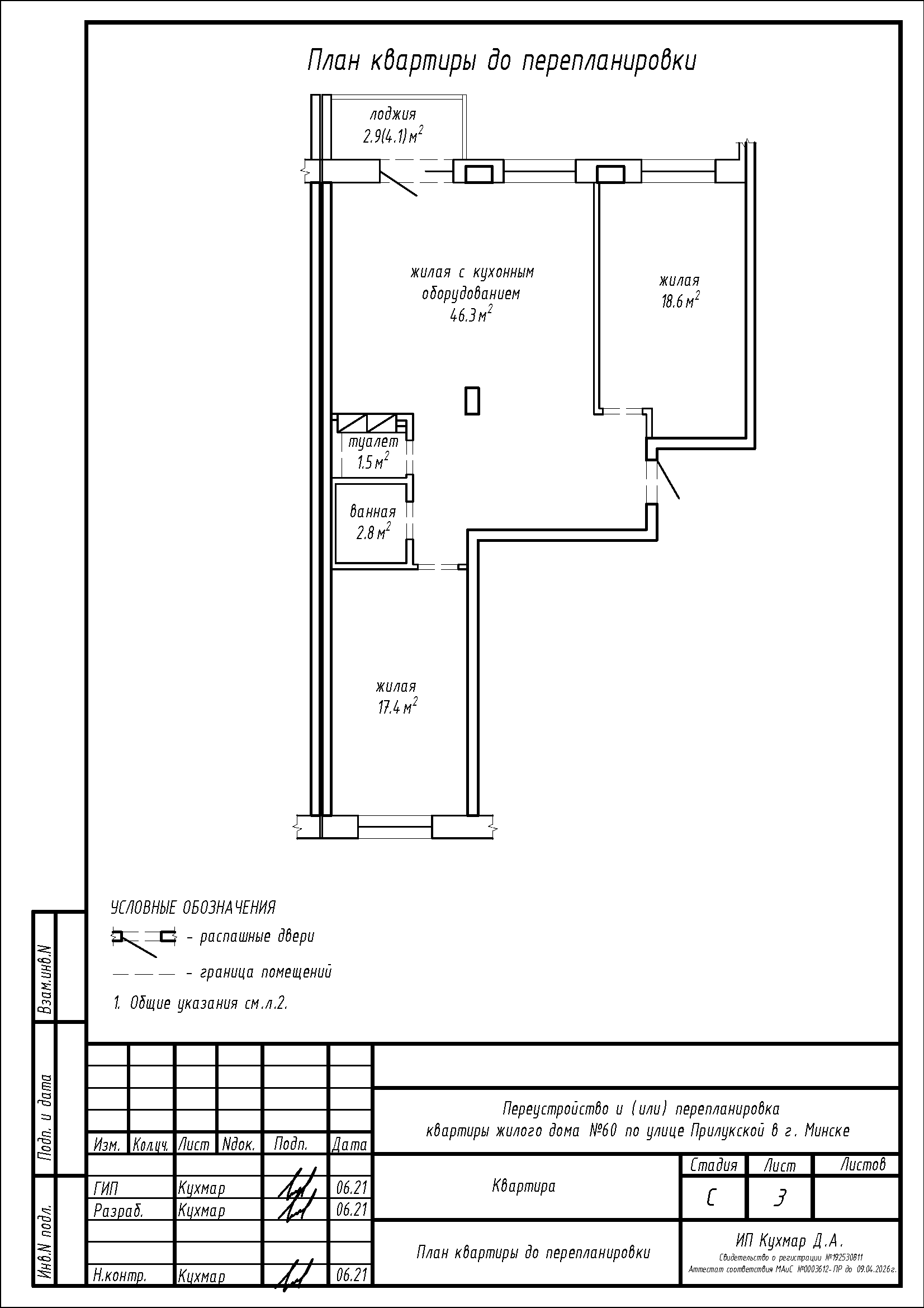 Перепланировка квартиры по ул. Прилукская, 60 в г.Минске