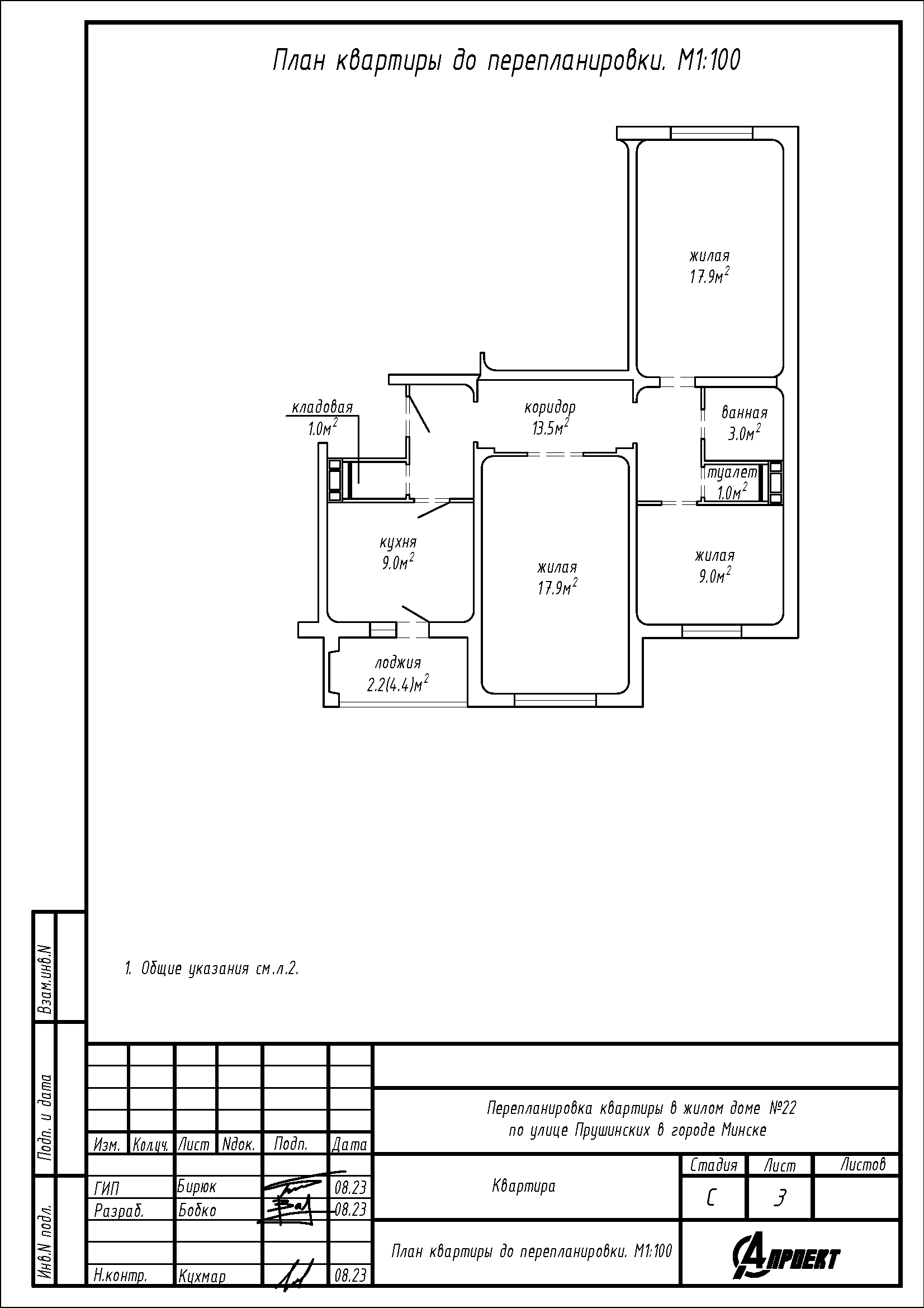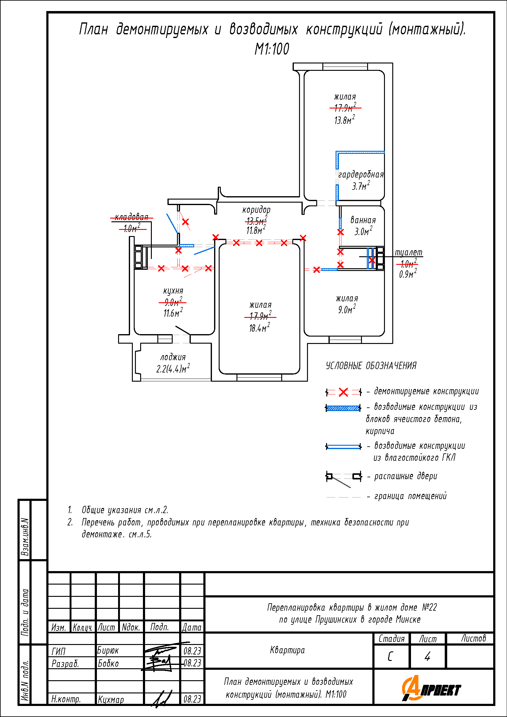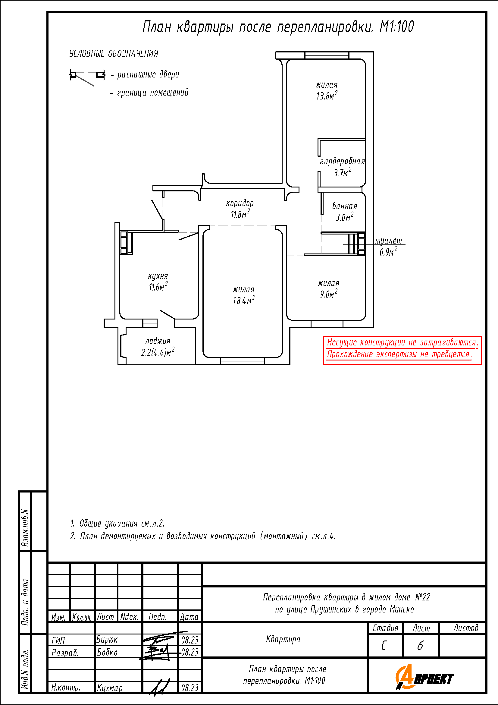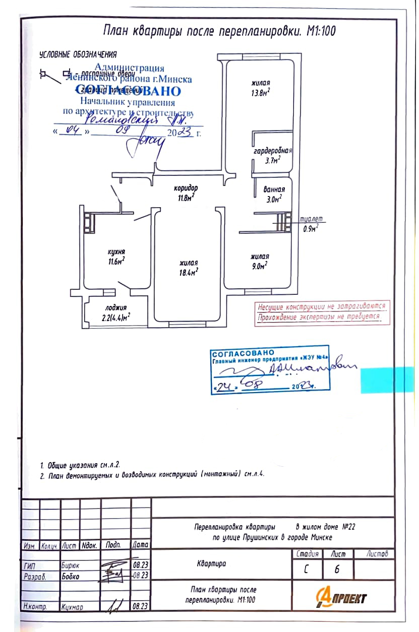 Перепланировка квартиры по улице Прушинских, 22 в г. Минске