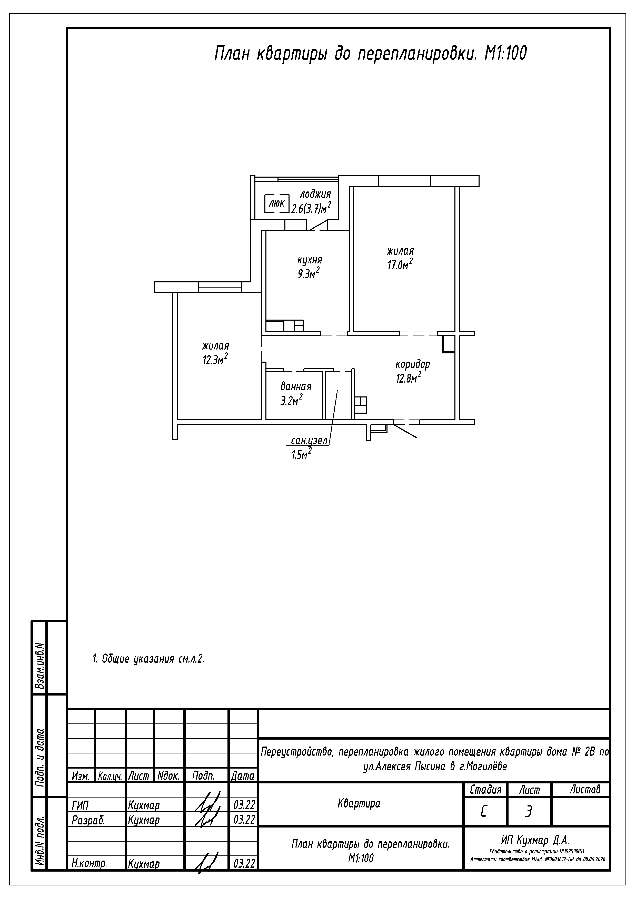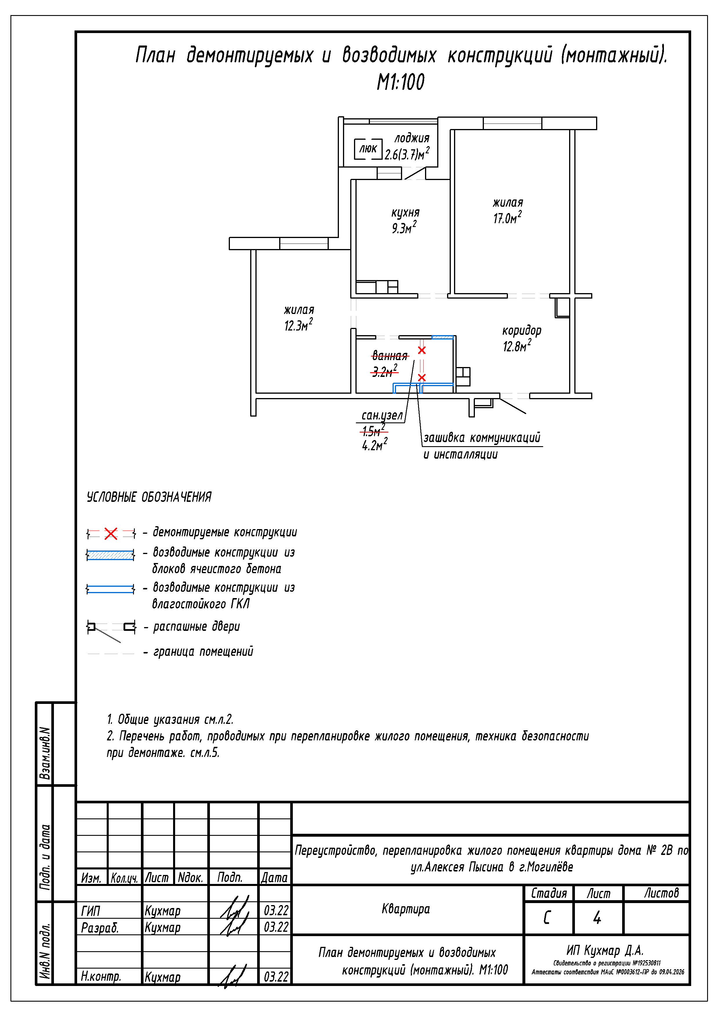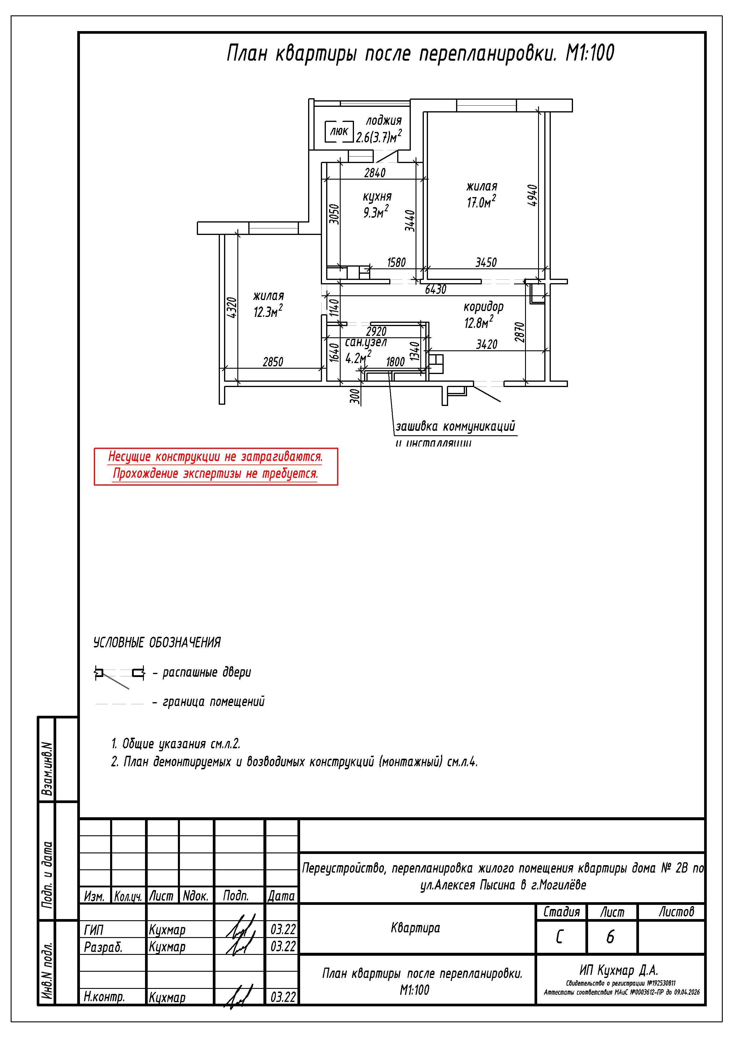 Перепланировка квартиры по ул. Алексея Пысина, 2В в г.Могилёве