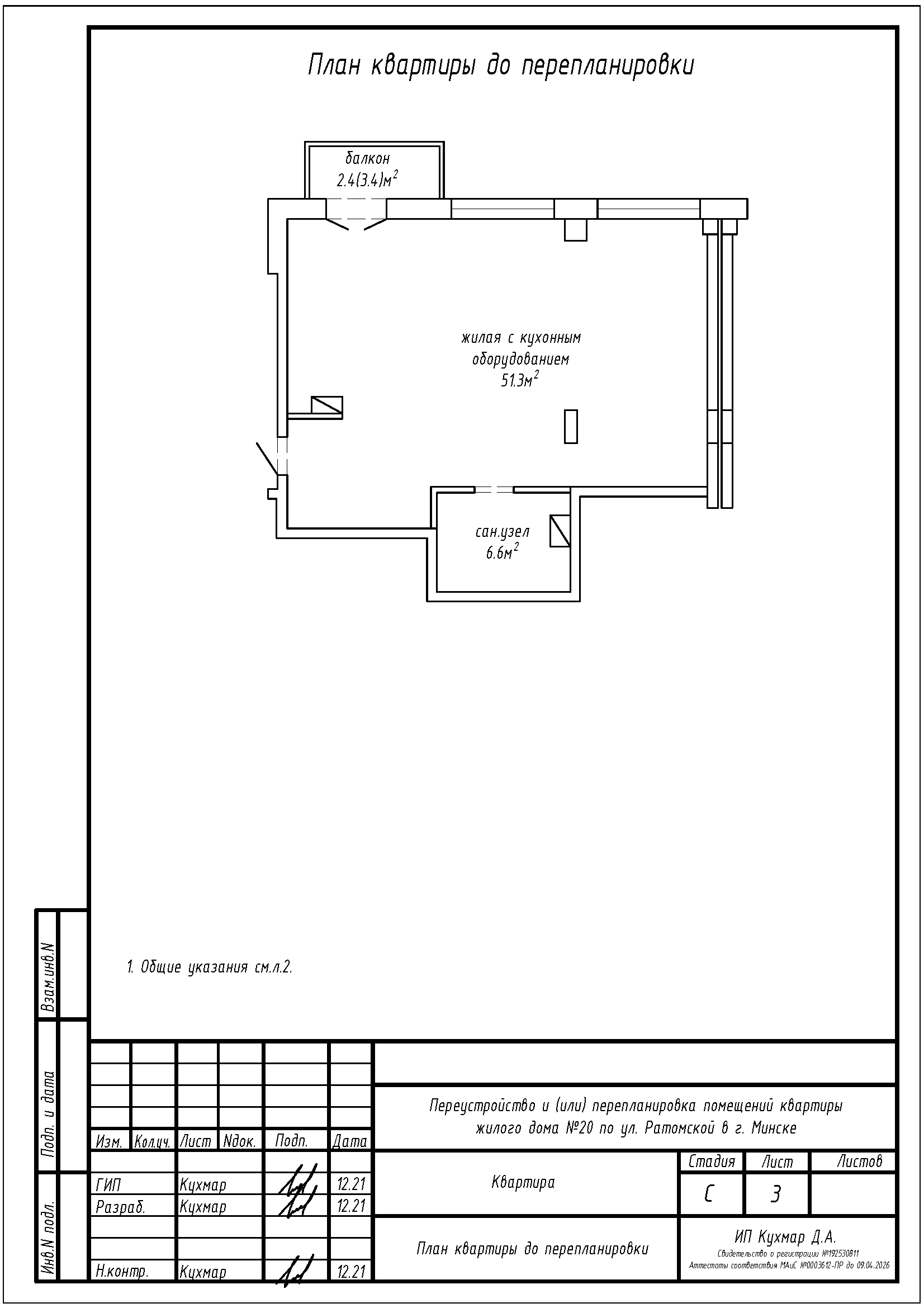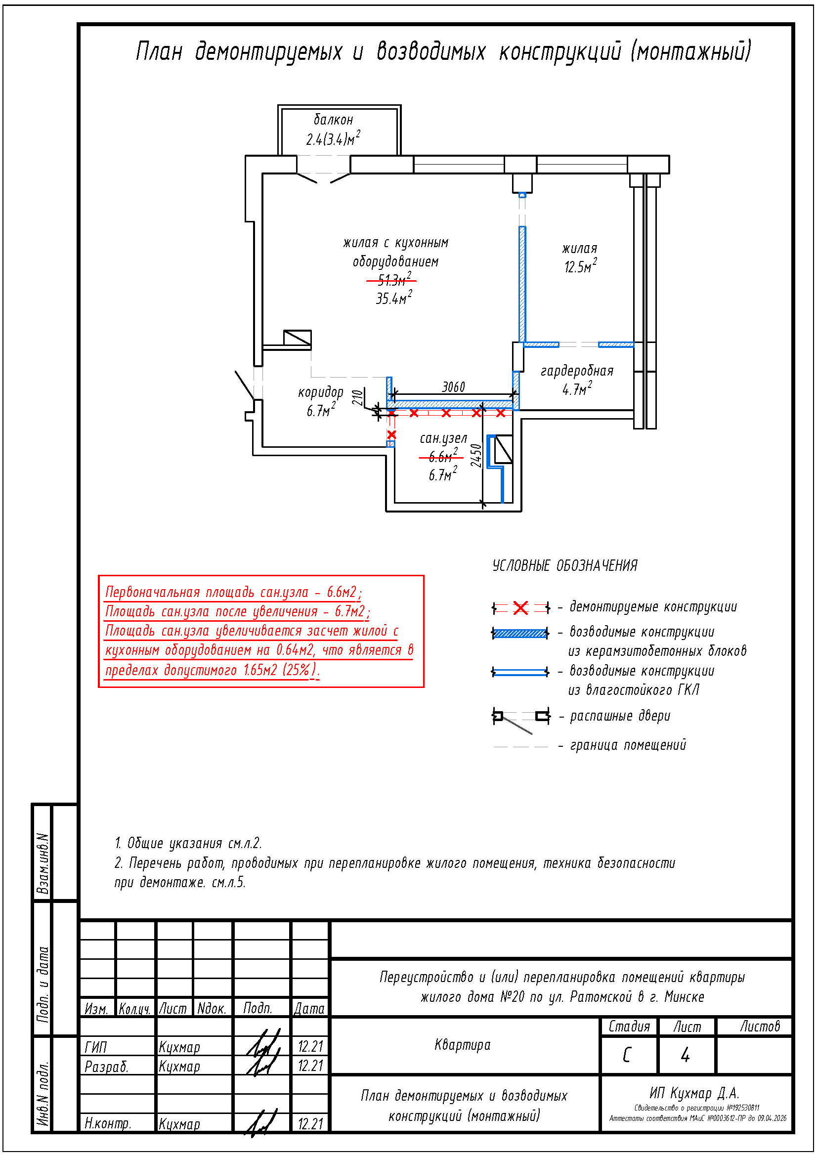Перепланировка квартиры по ул. Ратомская, 20 в ЖК «Олимпик Парк»