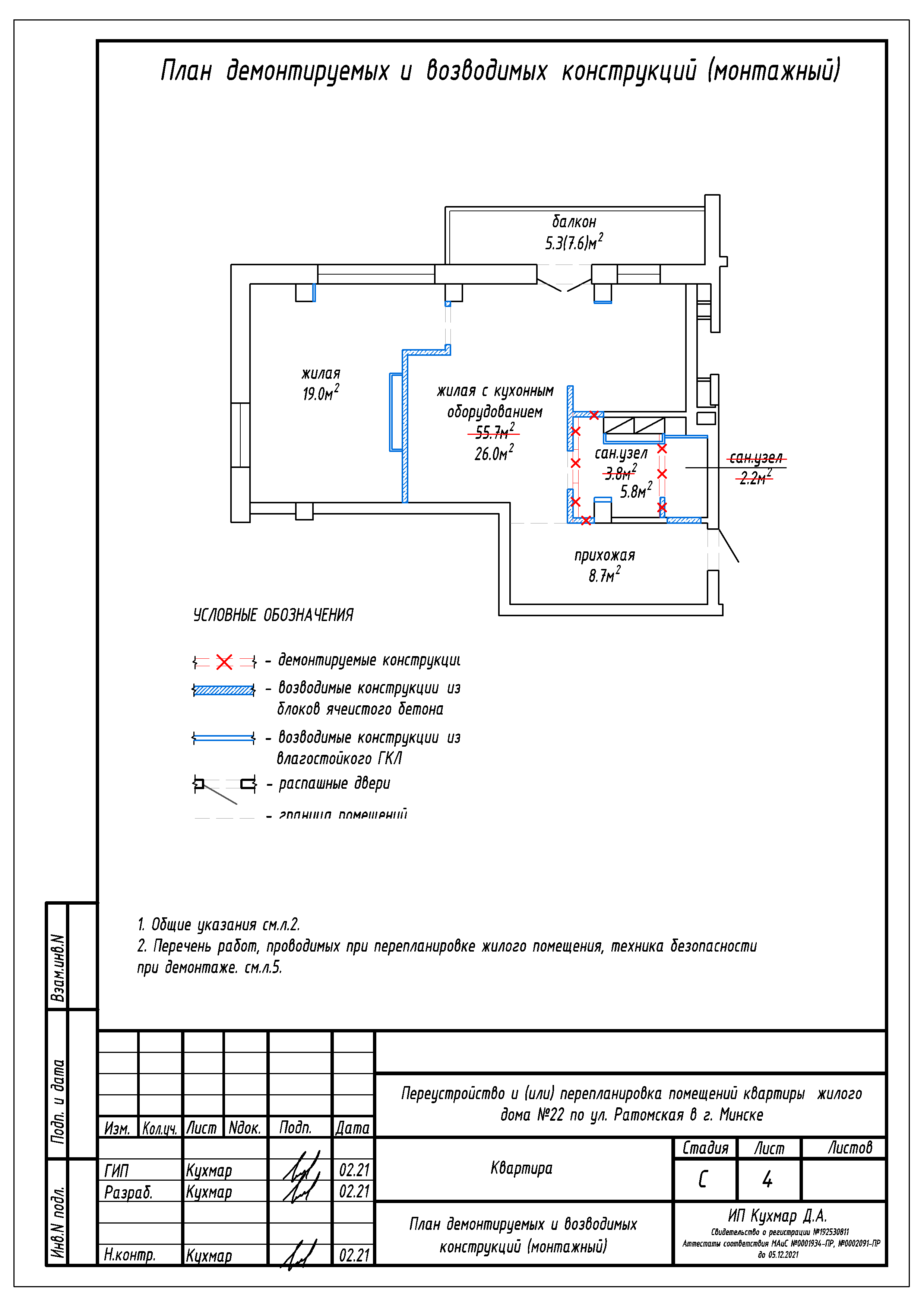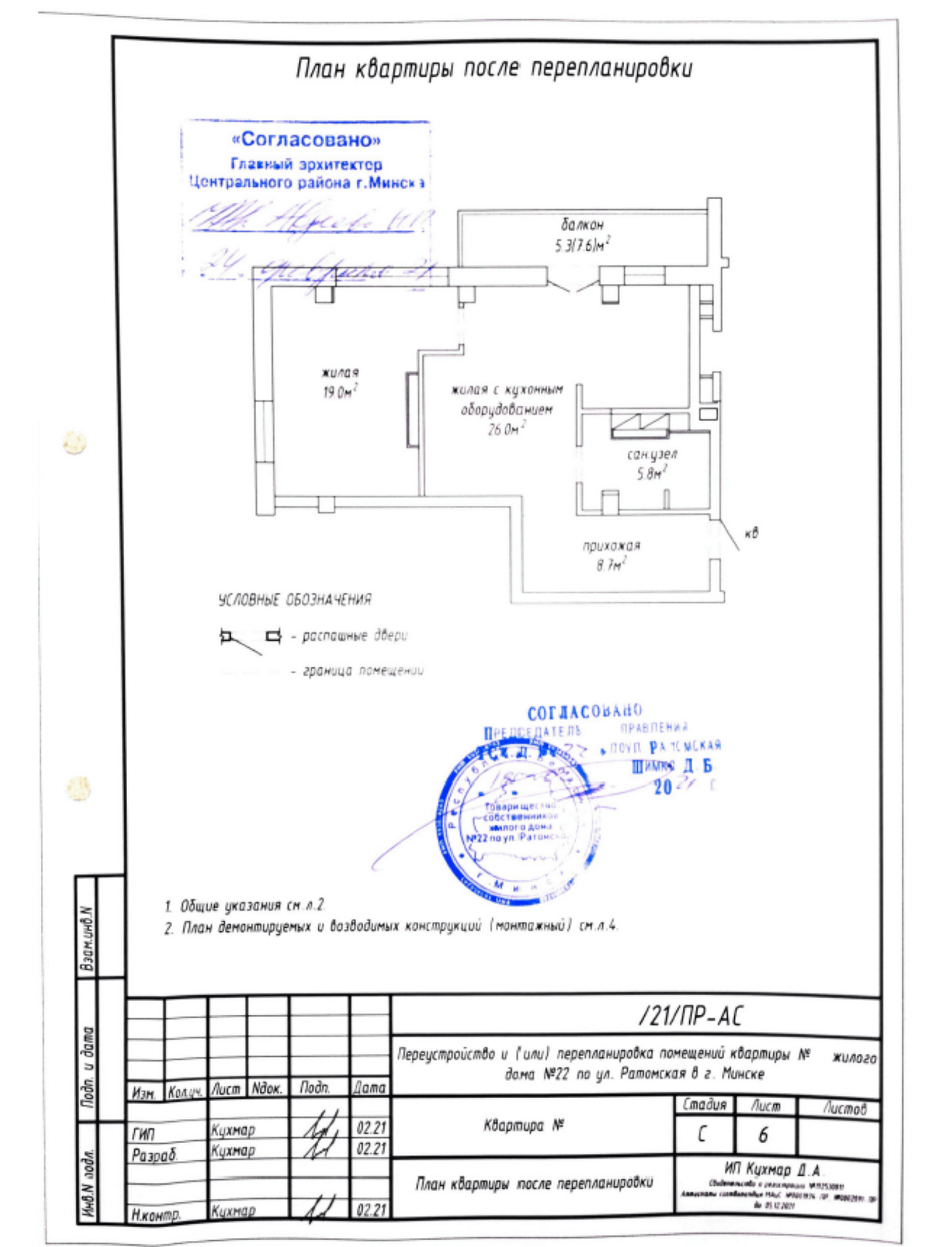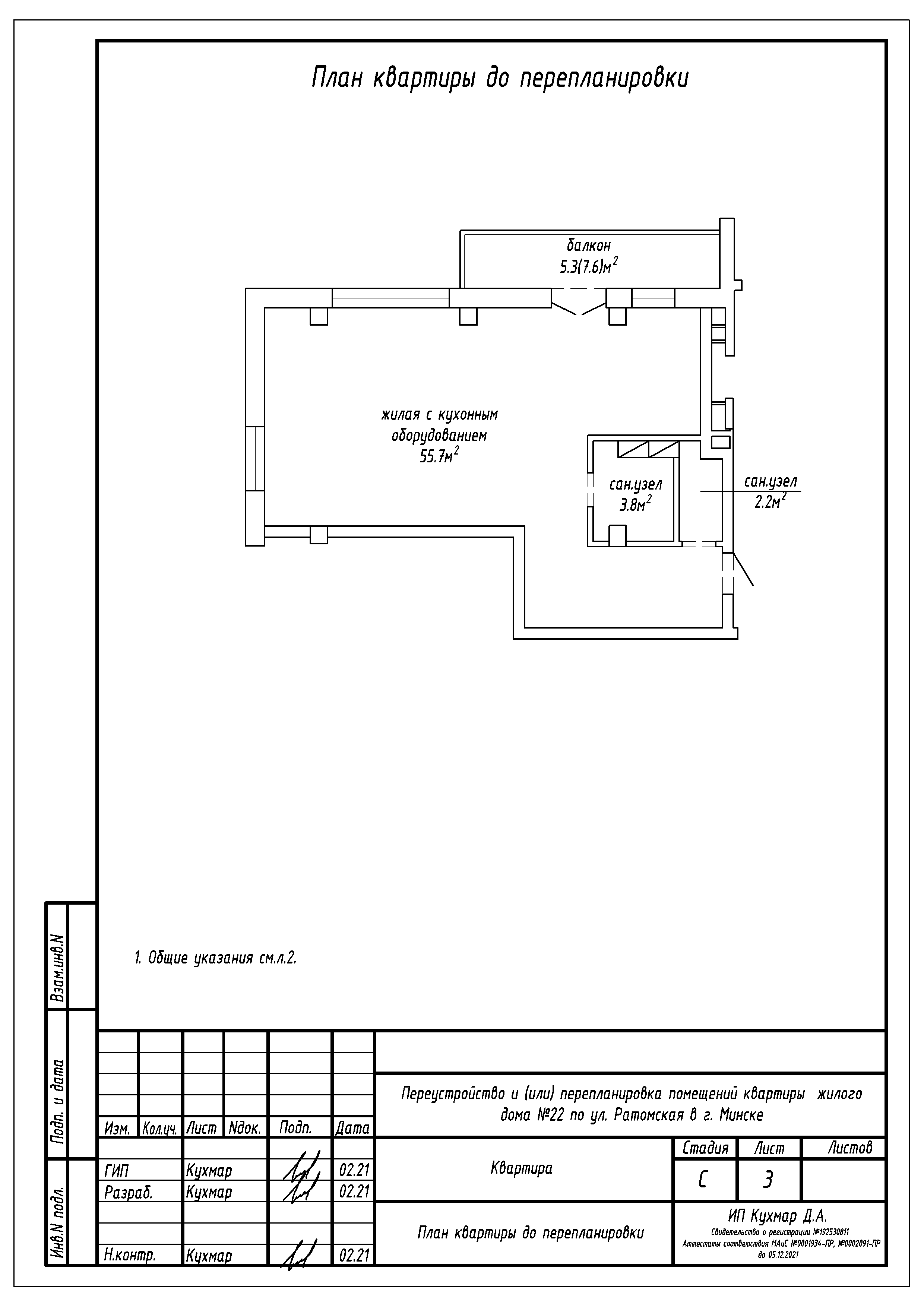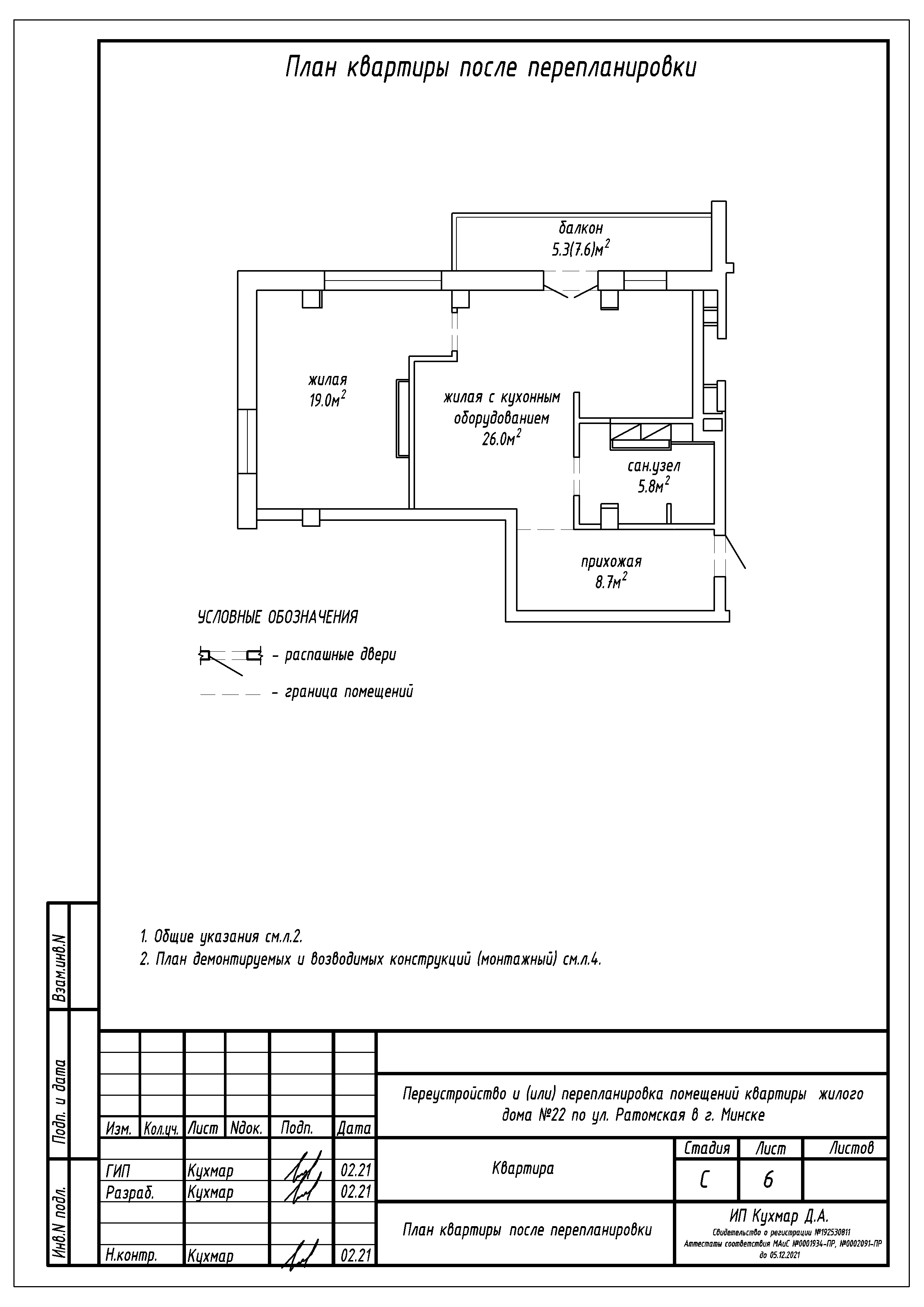 Перепланировка квартиры по ул. Ратомская, 22 в ЖК «Олимпик Парк»