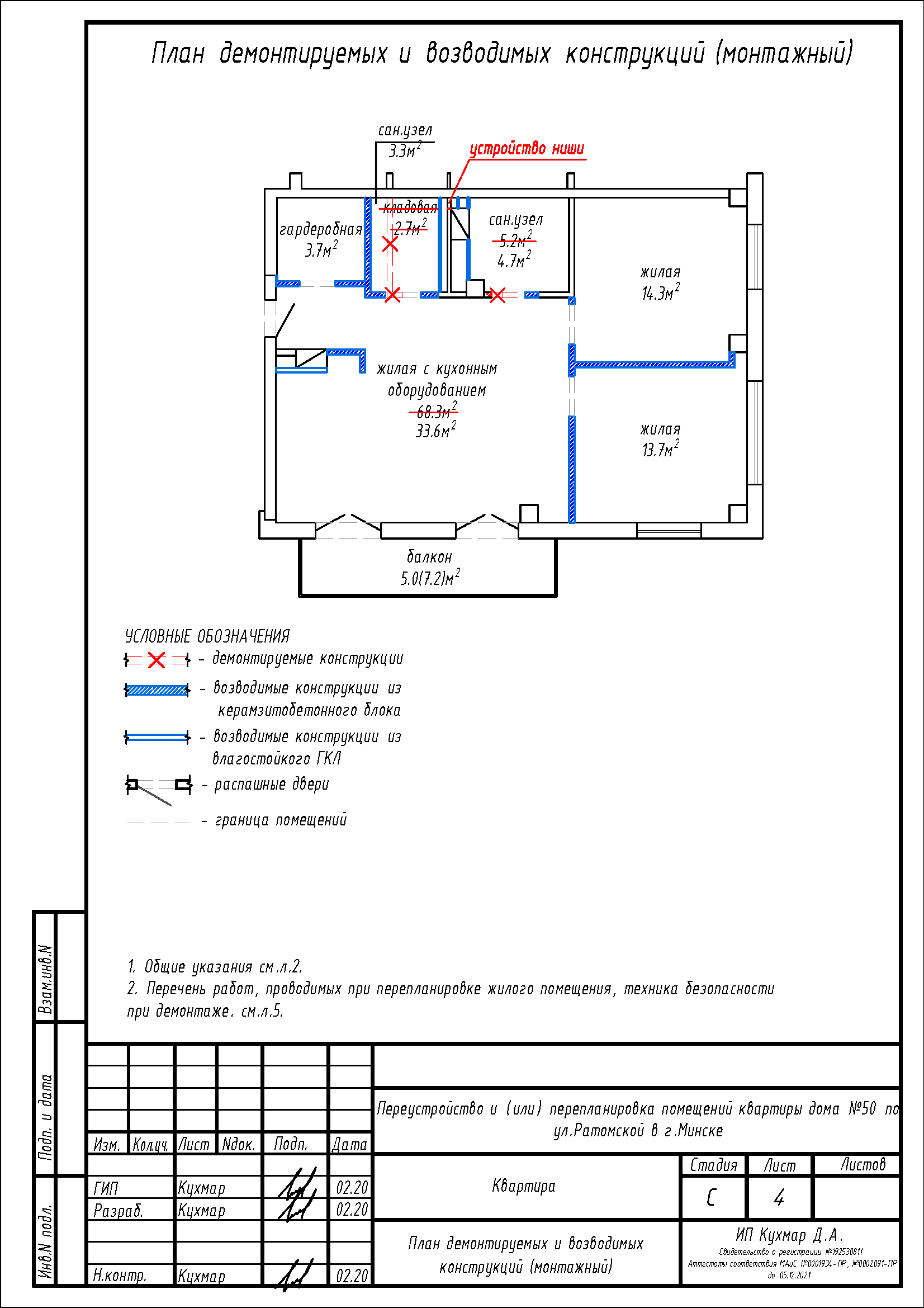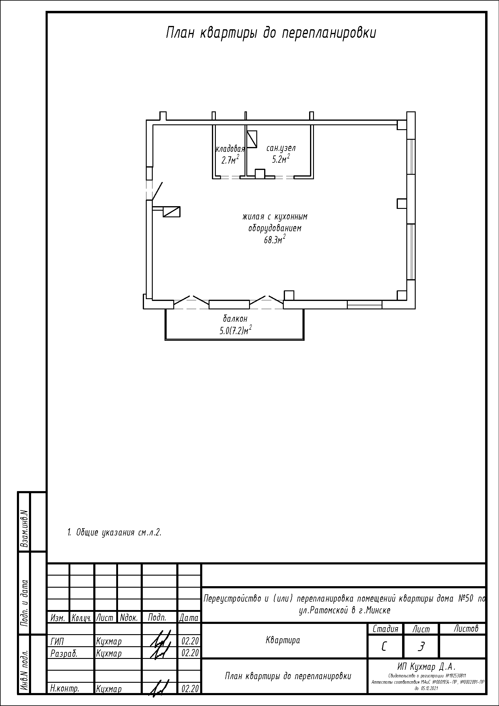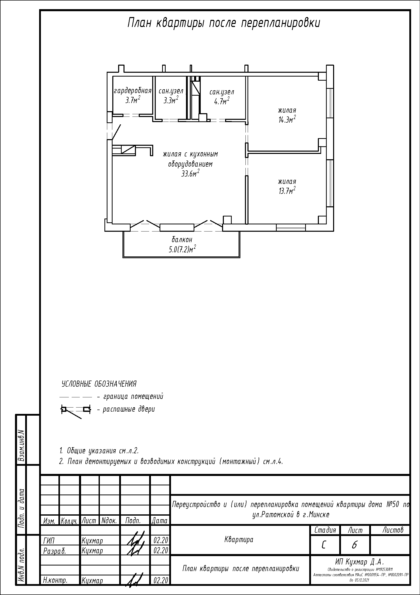 Перепланировка квартиры по ул. Ратомская, 50 в ЖК «Олимпик Парк»