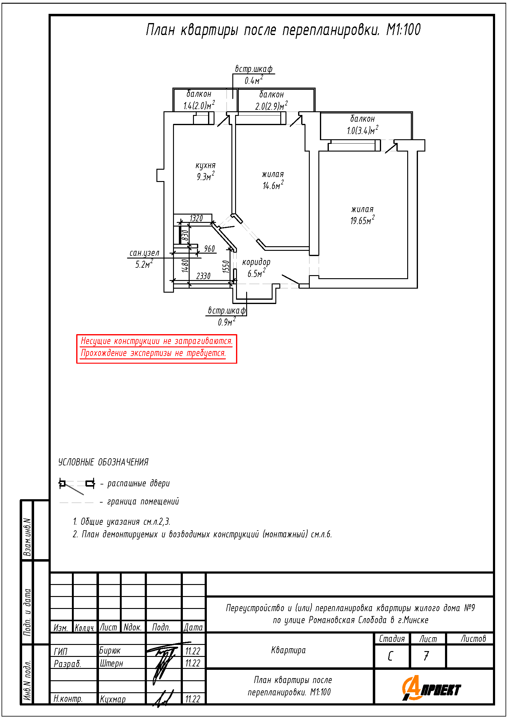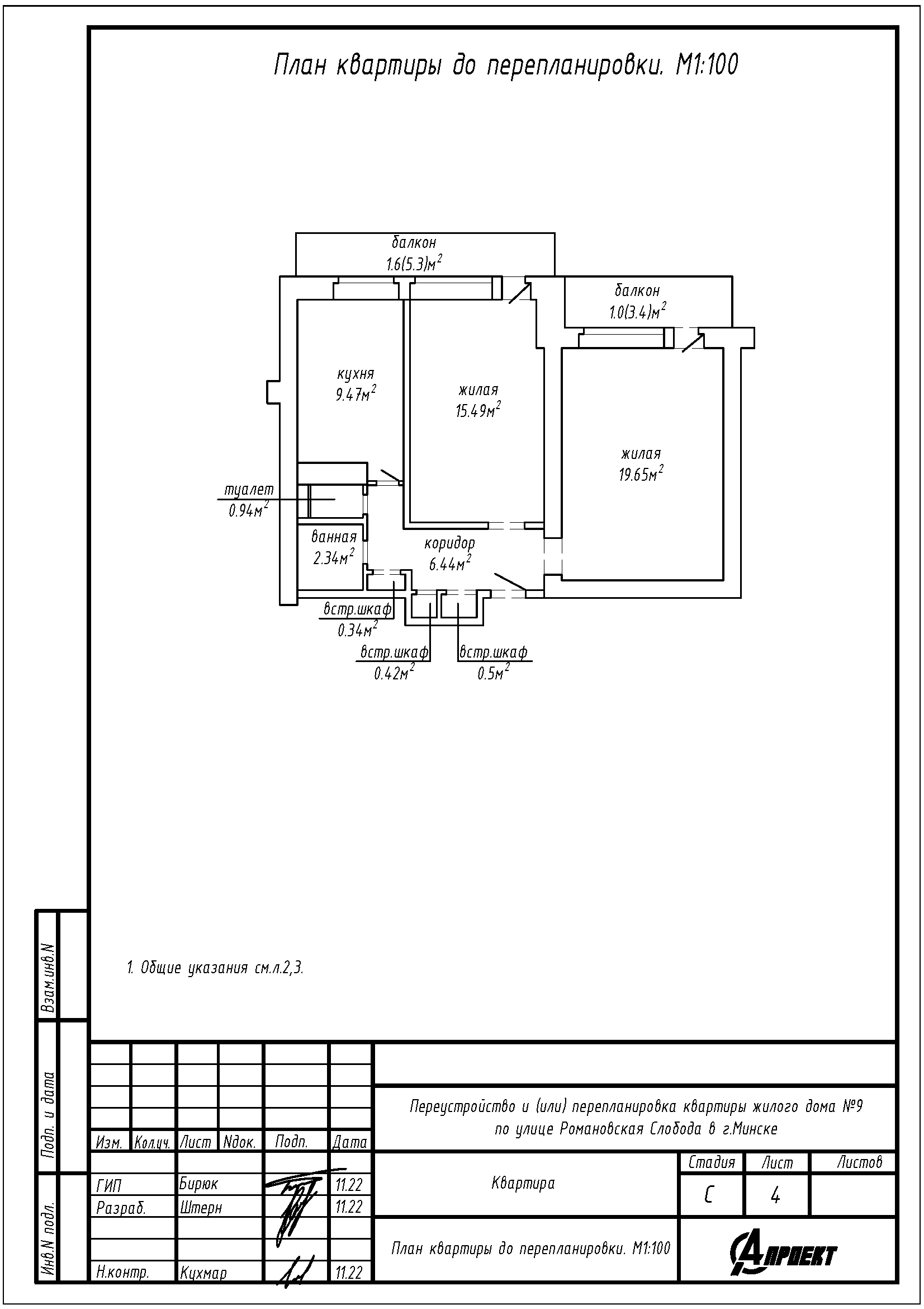 Перепланировка квартиры по ул. Романовская Слобода, 9 в г. Минске