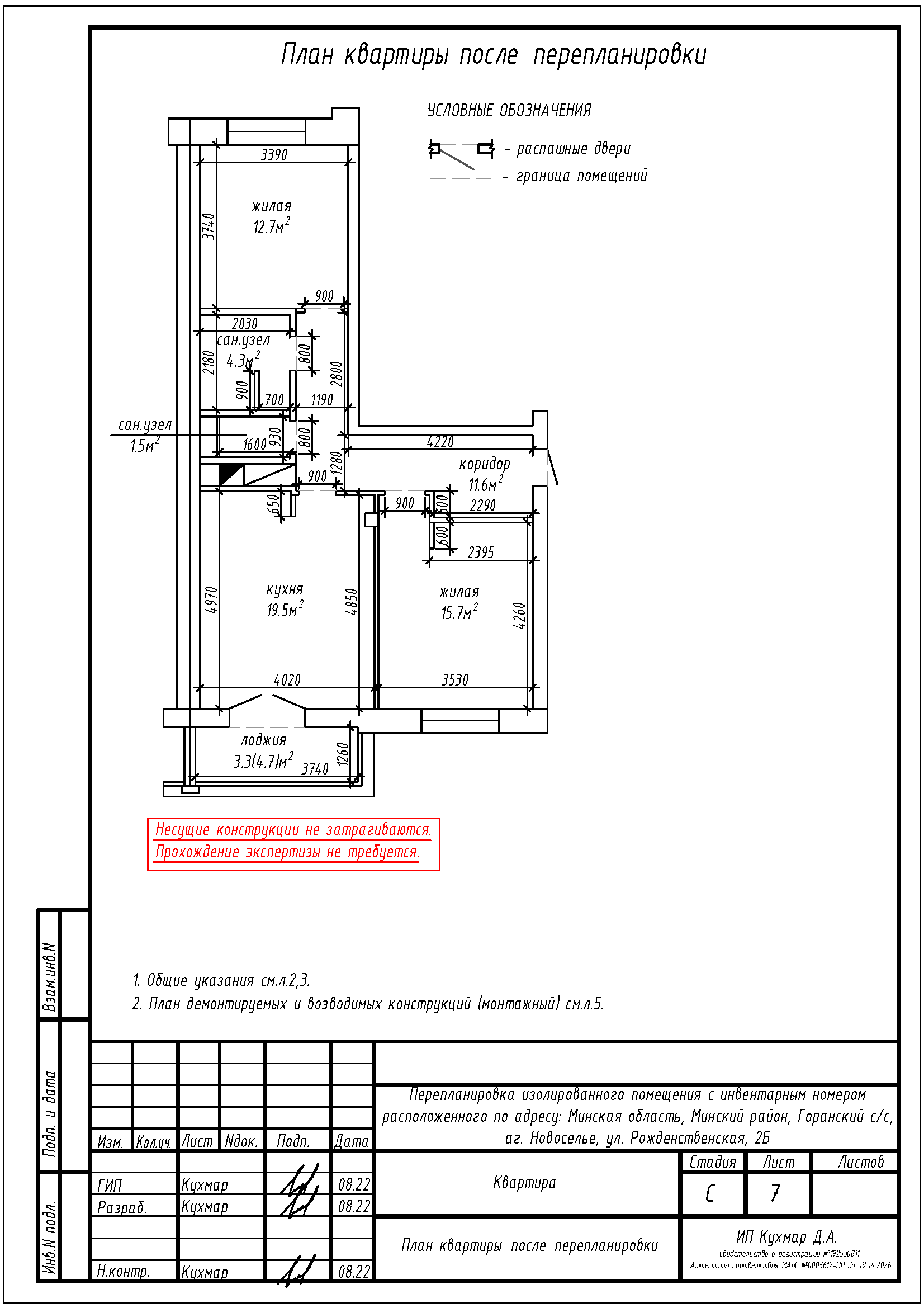 - Демонтаж перегородок дверного проёма между коридором и жилой с устройством новых перегородок с дверным проёмом на площади жилой;