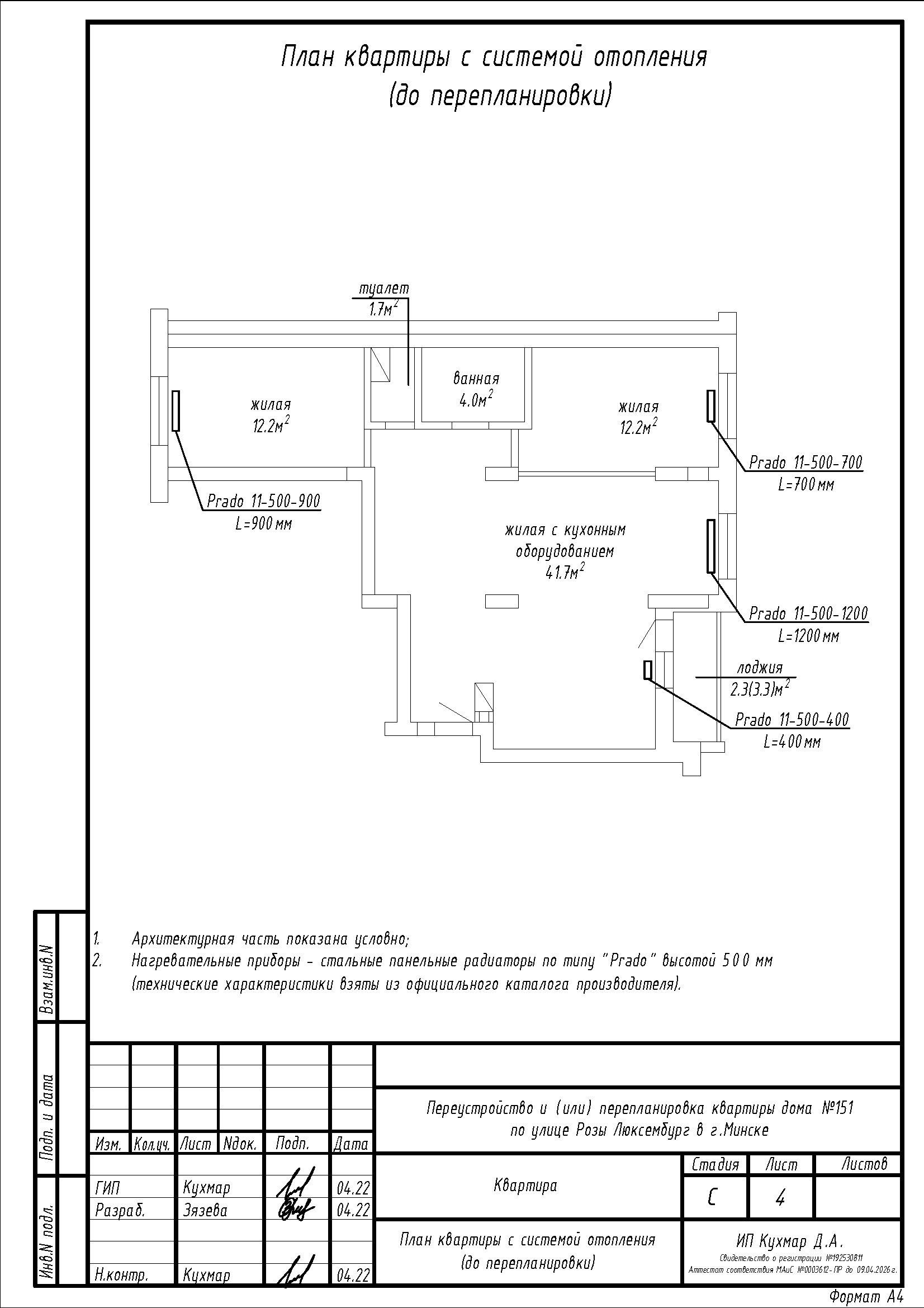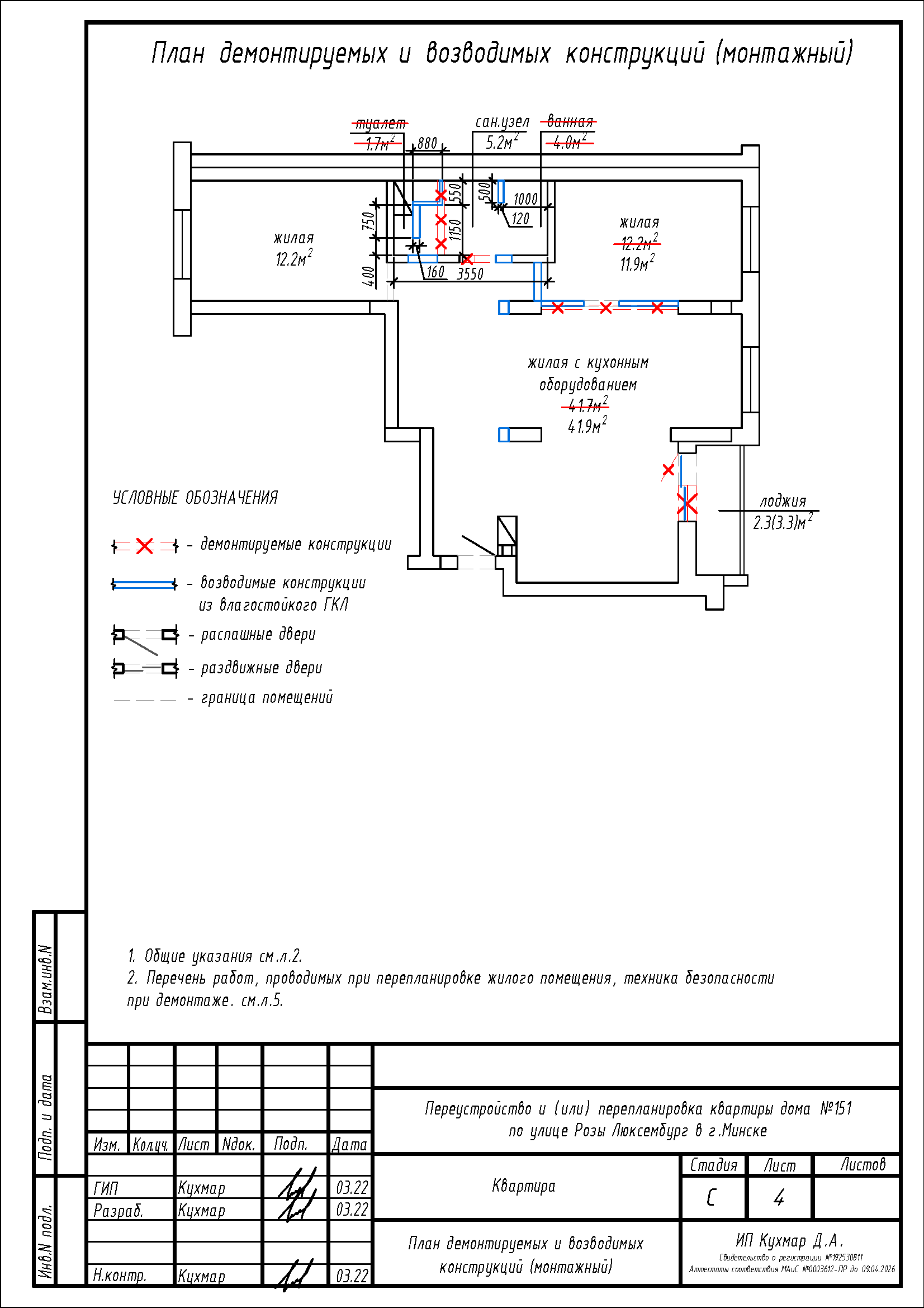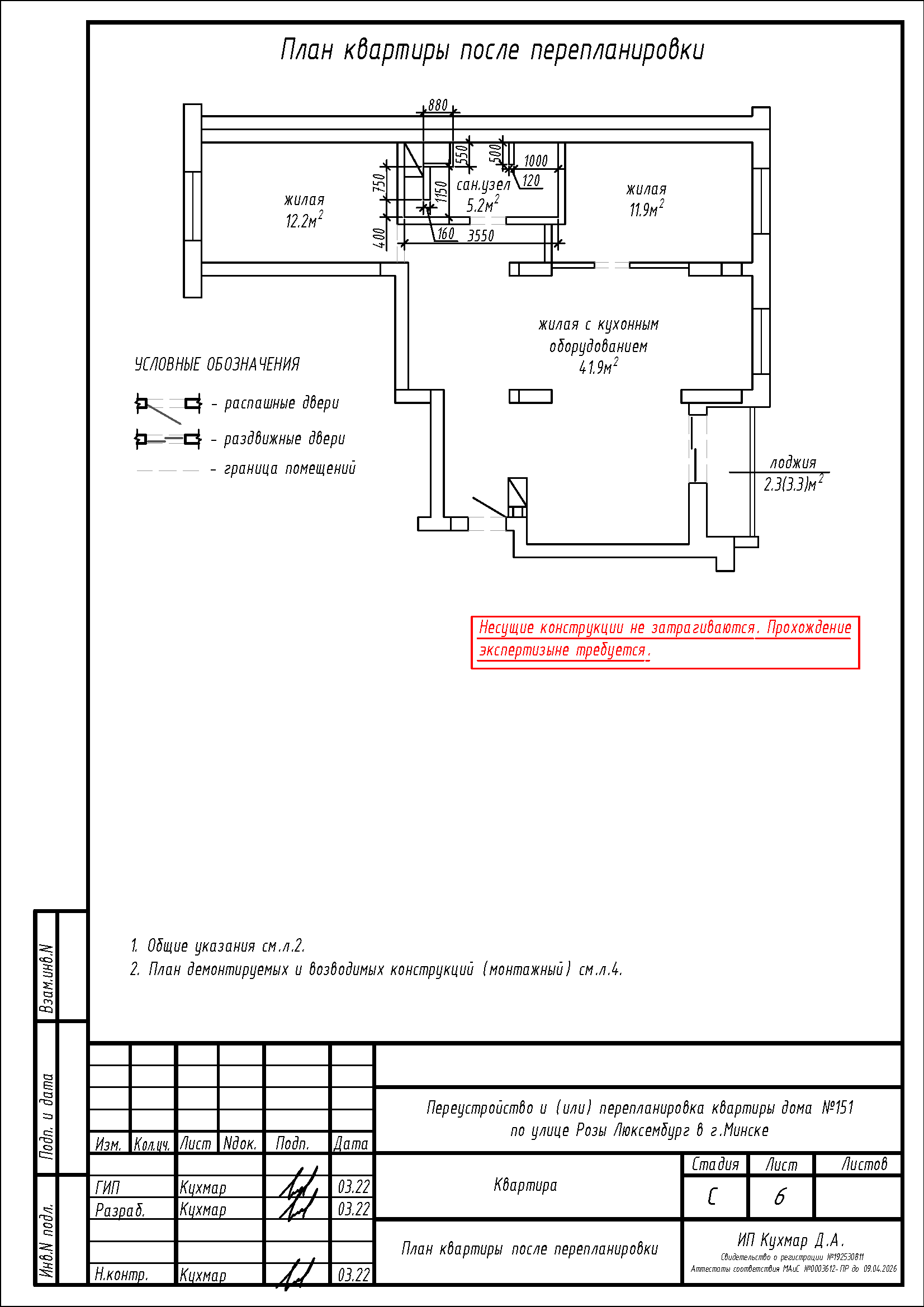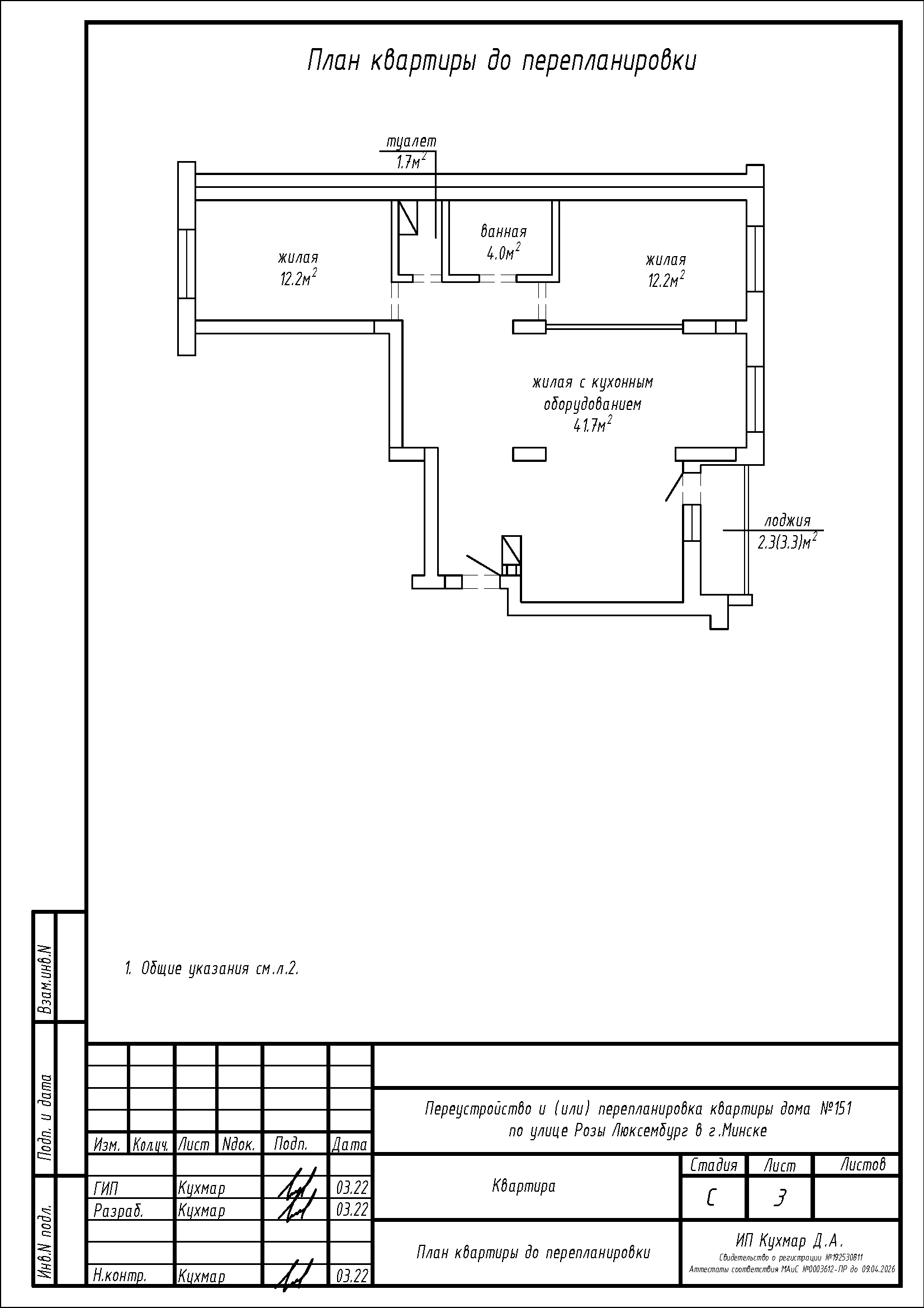 Перепланировка квартиры по ул. Розы Люксембург, 151 в г.Минске