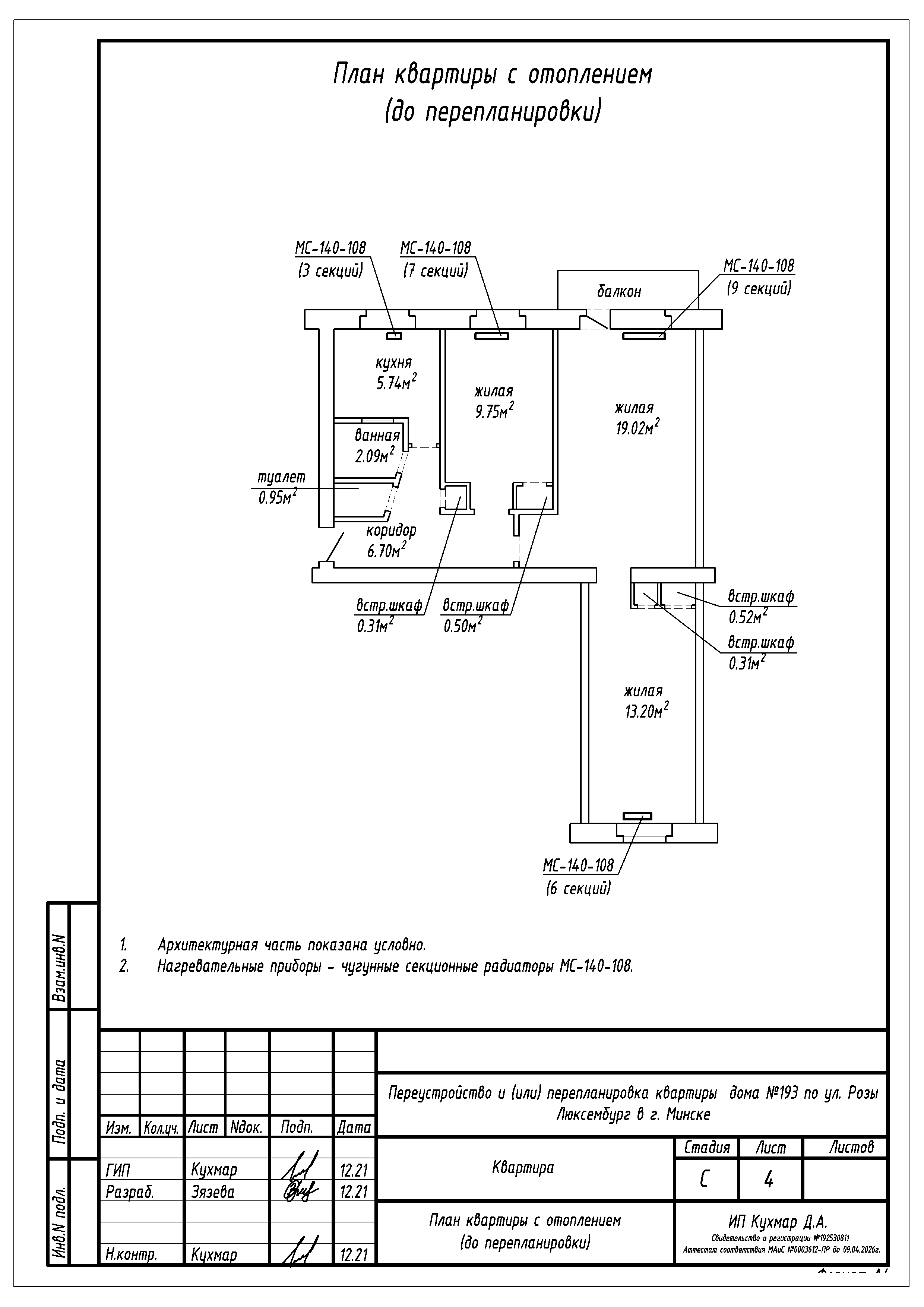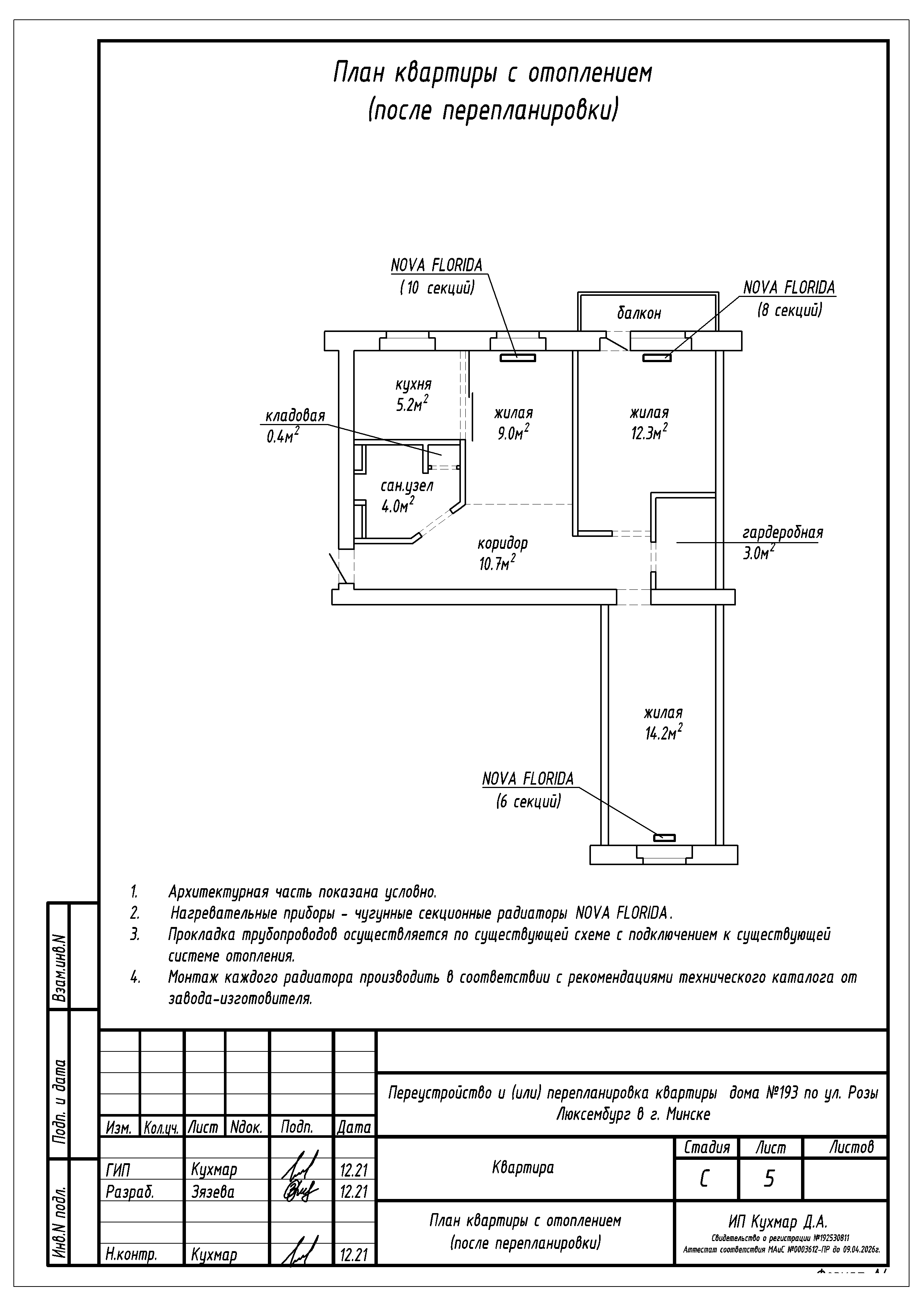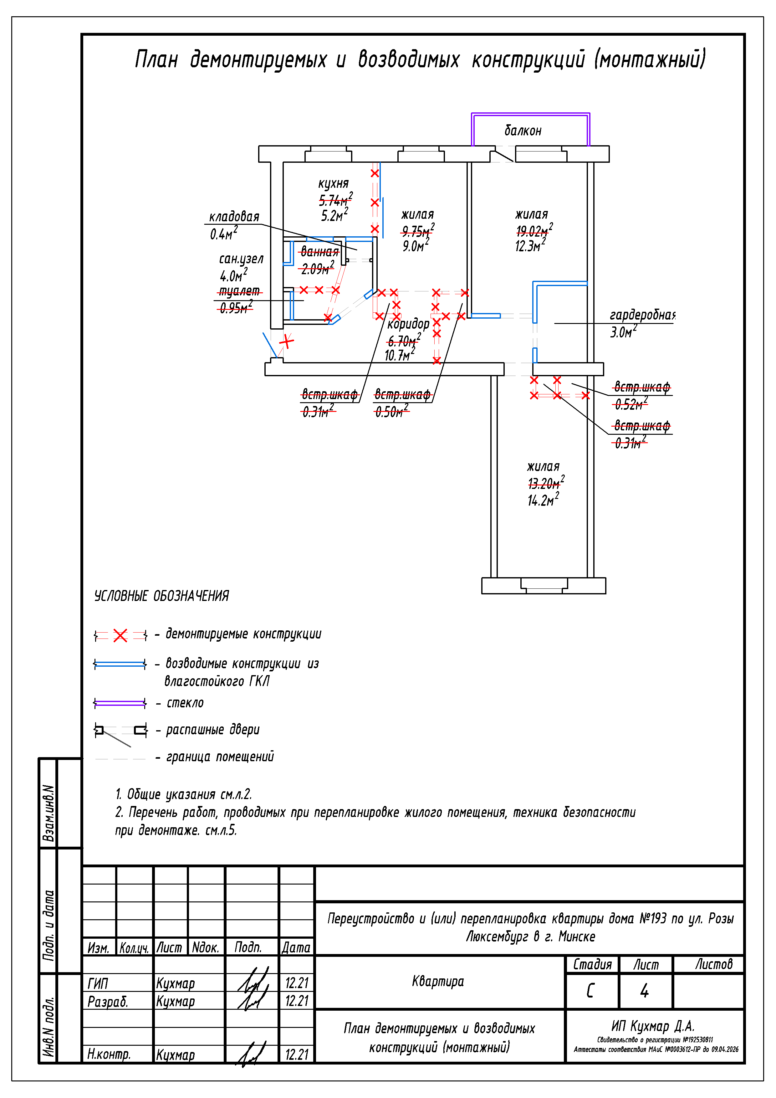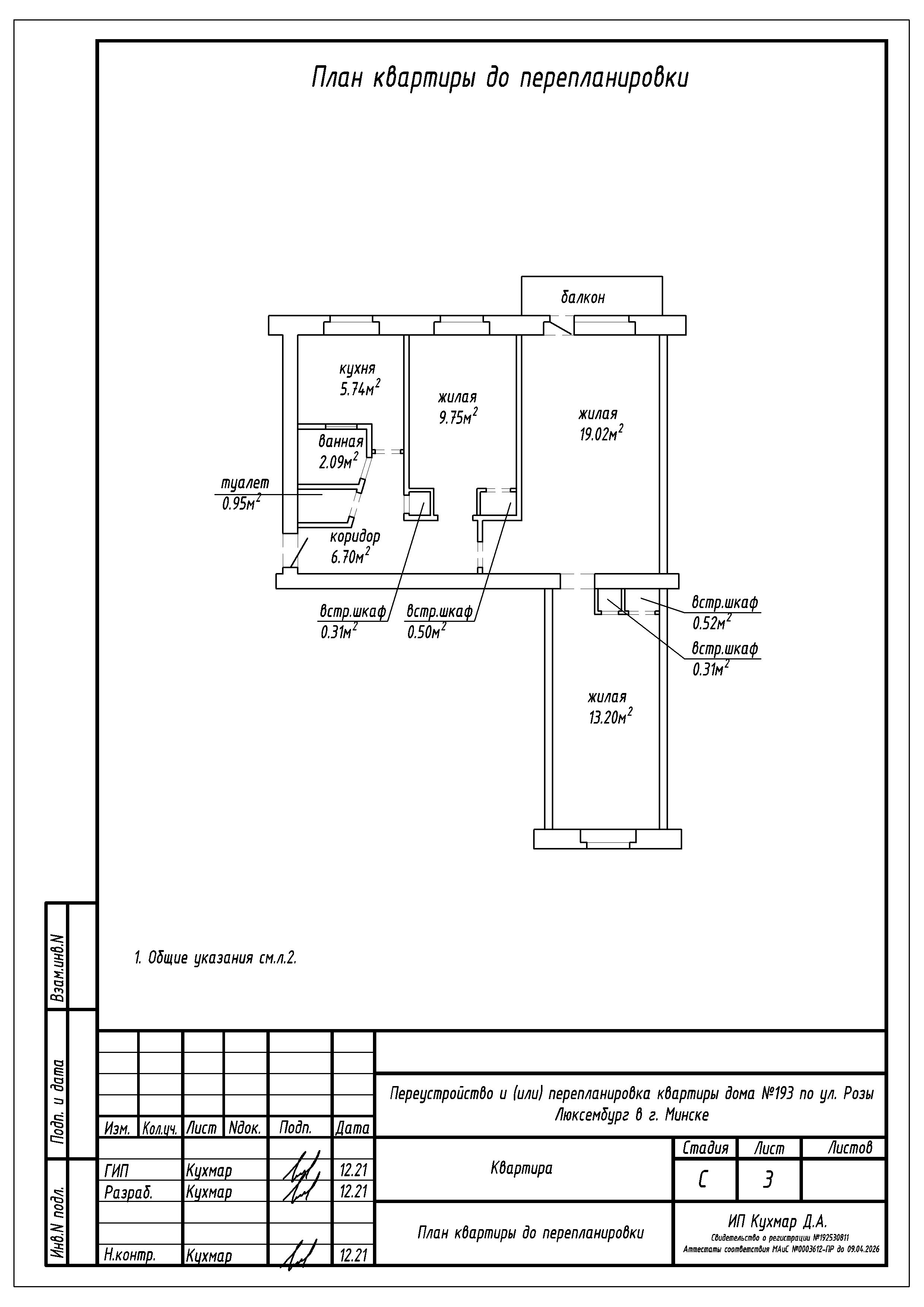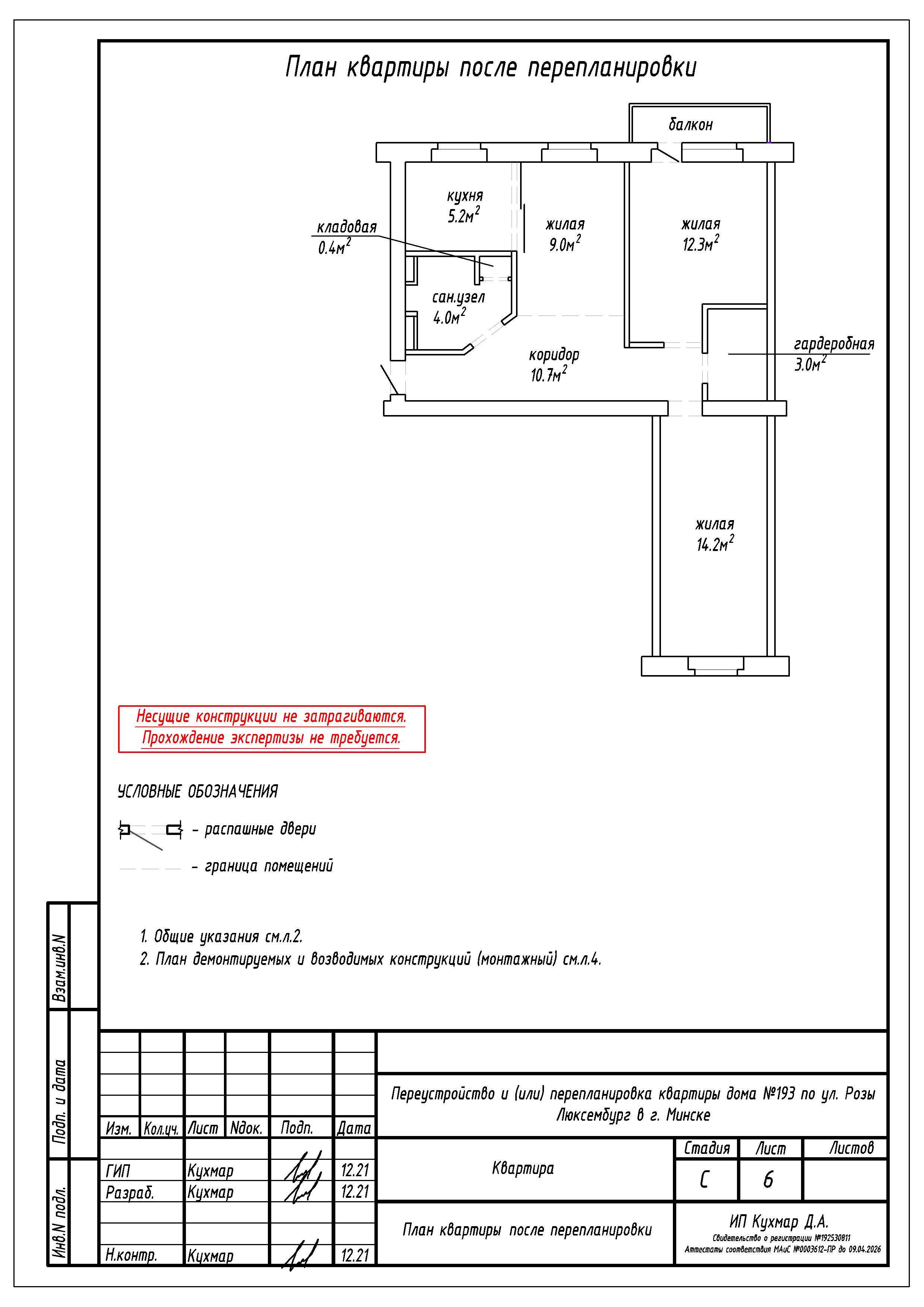 Перепланировка квартиры по ул. Розы Люксембург, 193 в г.Минске