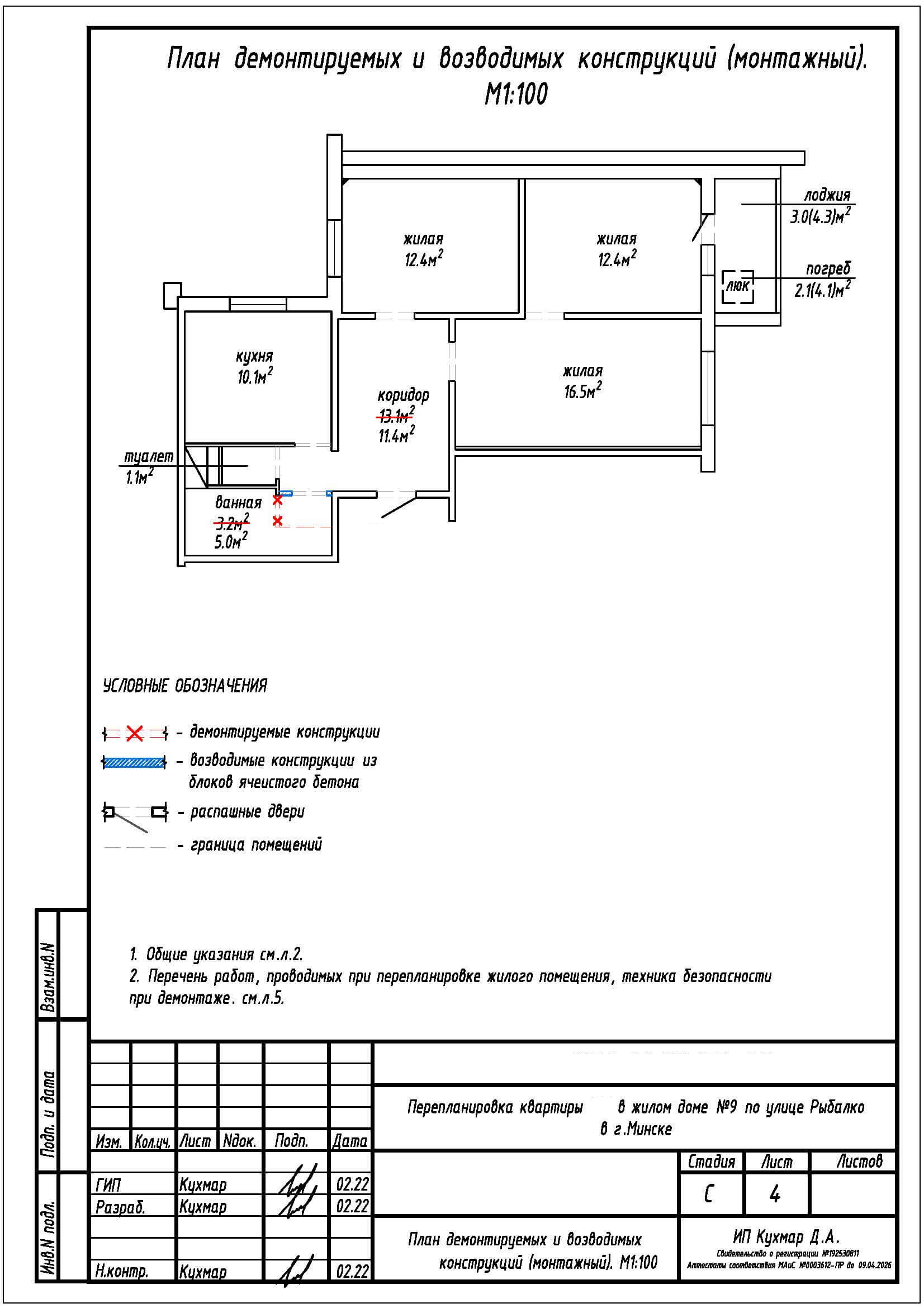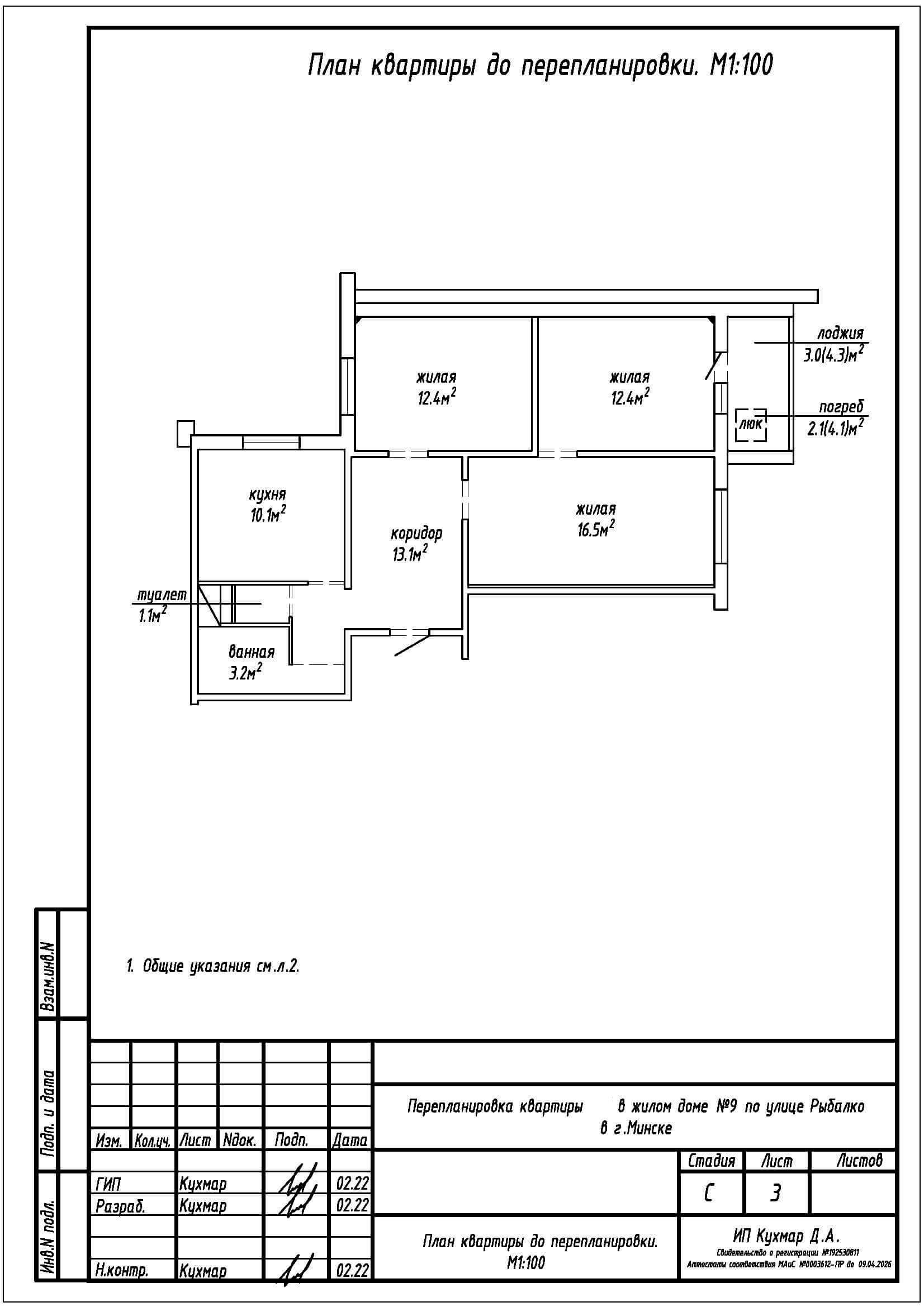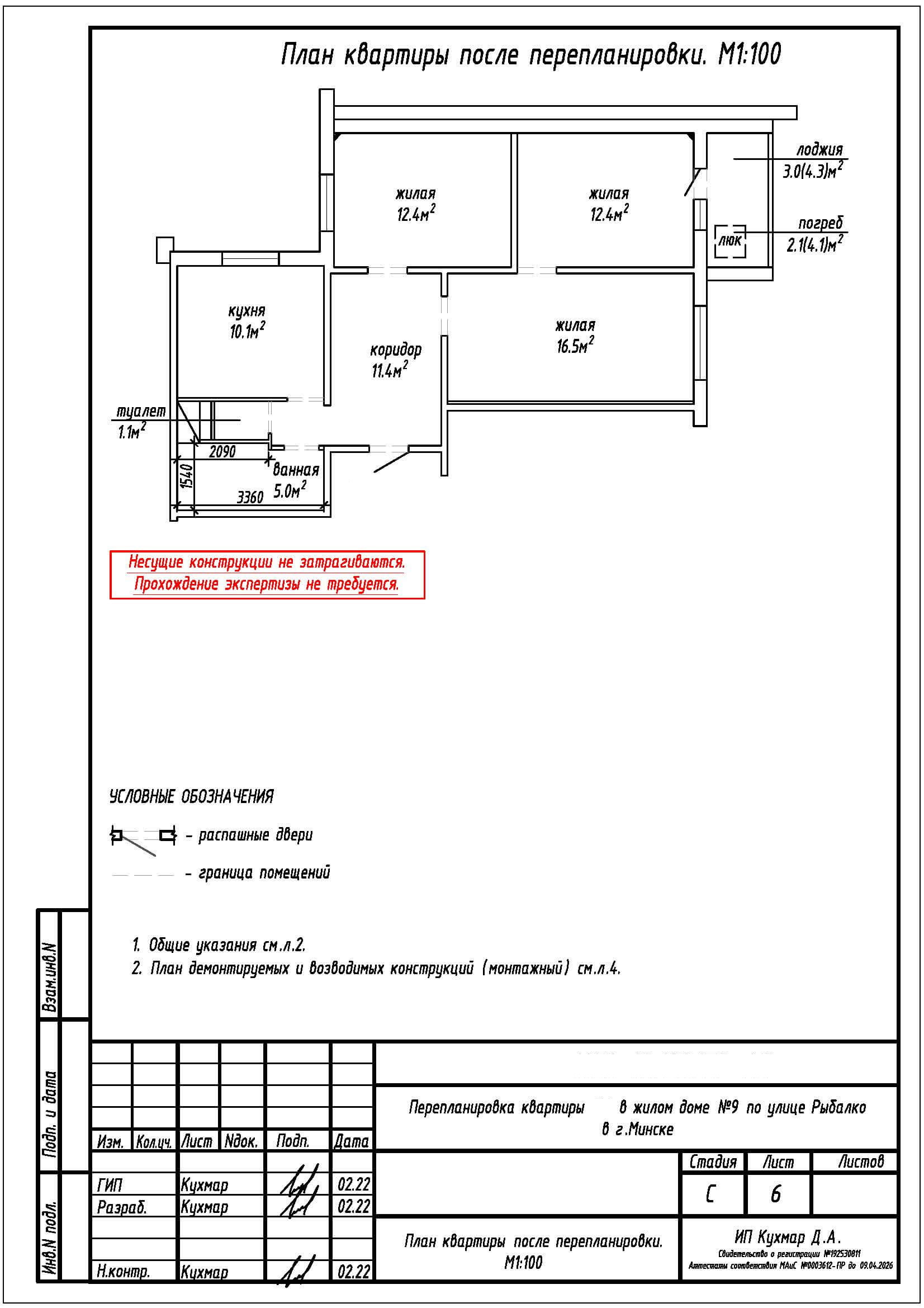 Перепланировка квартиры по ул. Рыбалко, 9 в ЖК «Антоновский квартал»