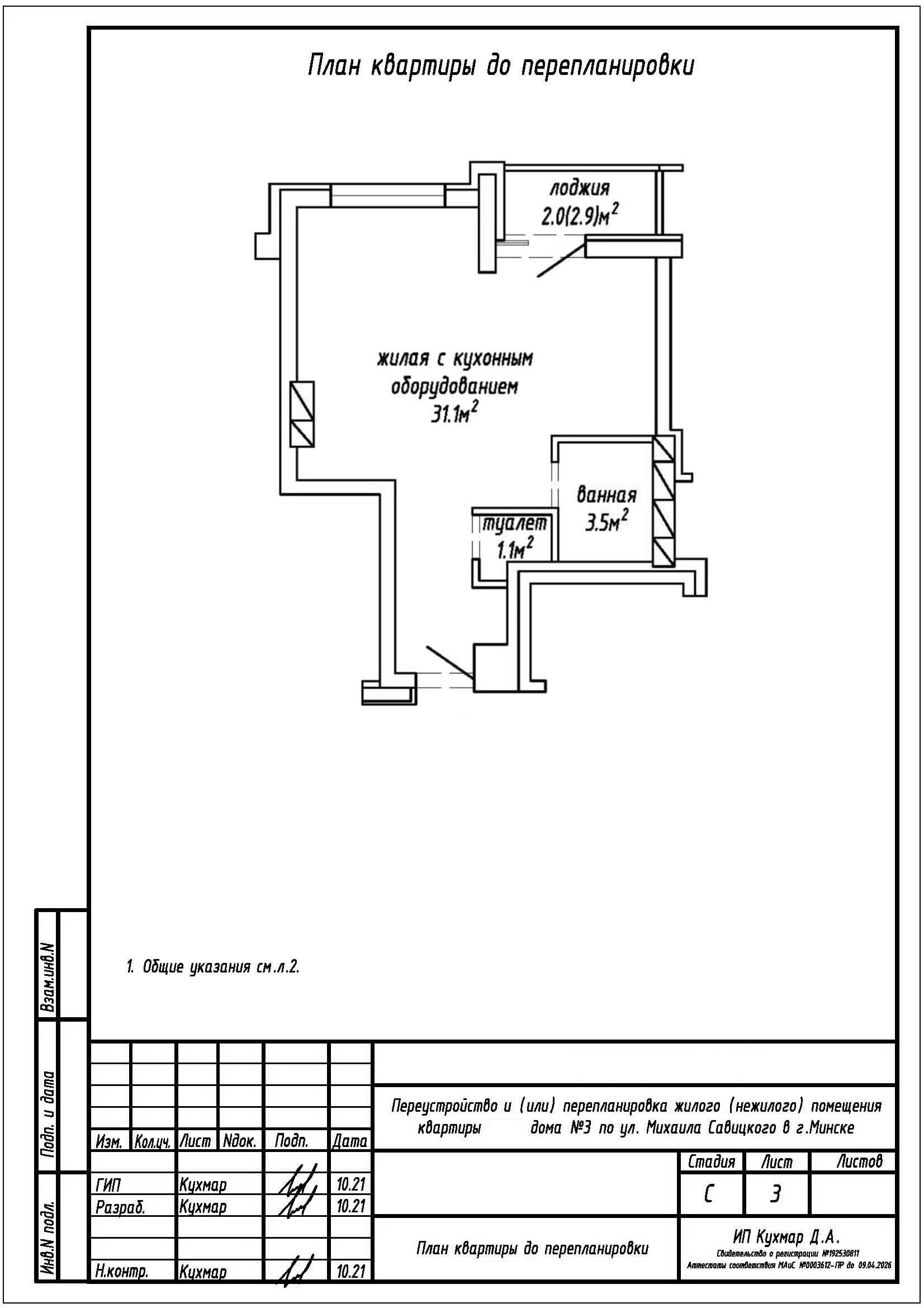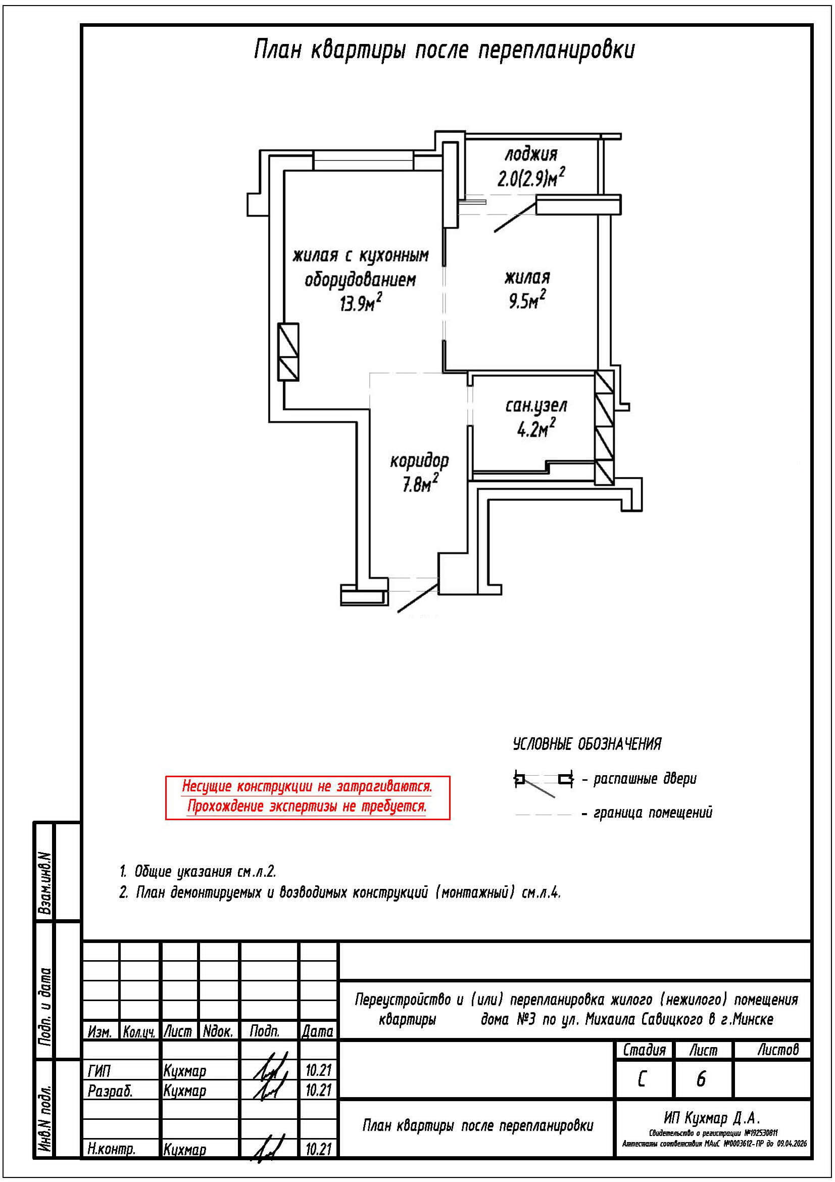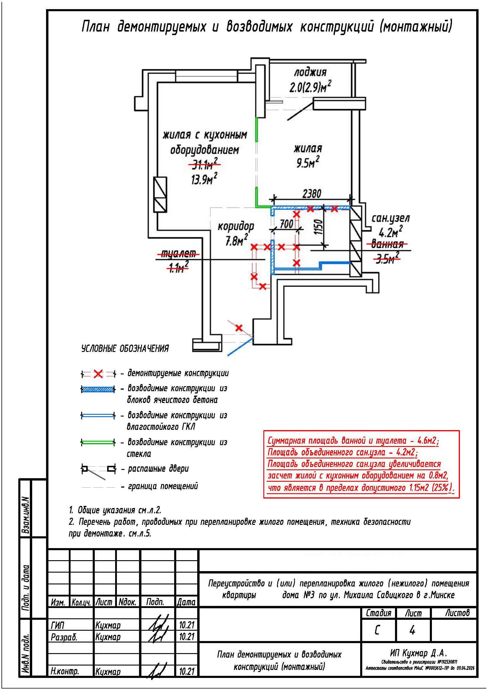 Перепланировка квартиры по ул. Михаила Савицкого, 3 в ЖК «Минск Мир»