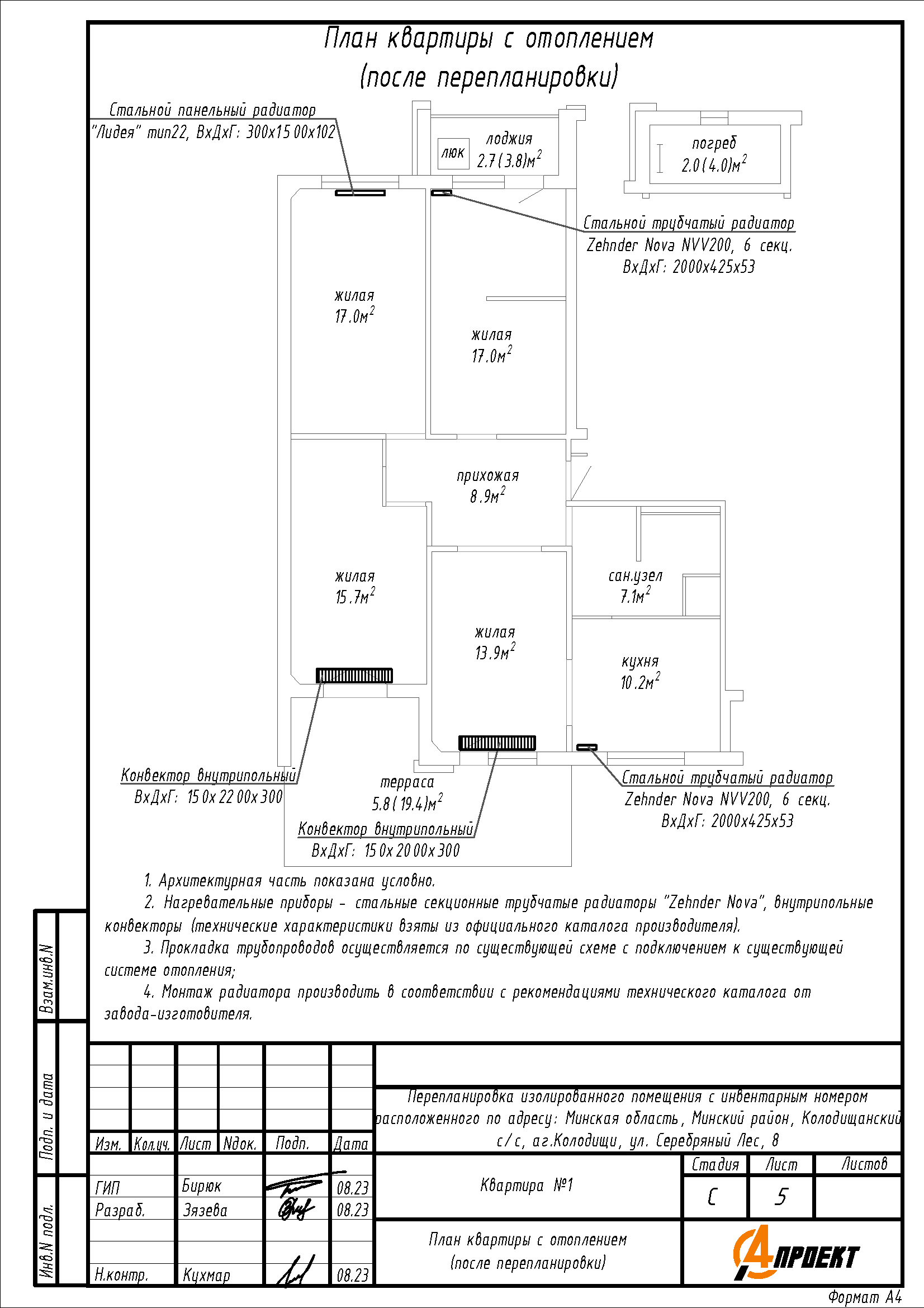 - Перенос и замена отопительных приборов.