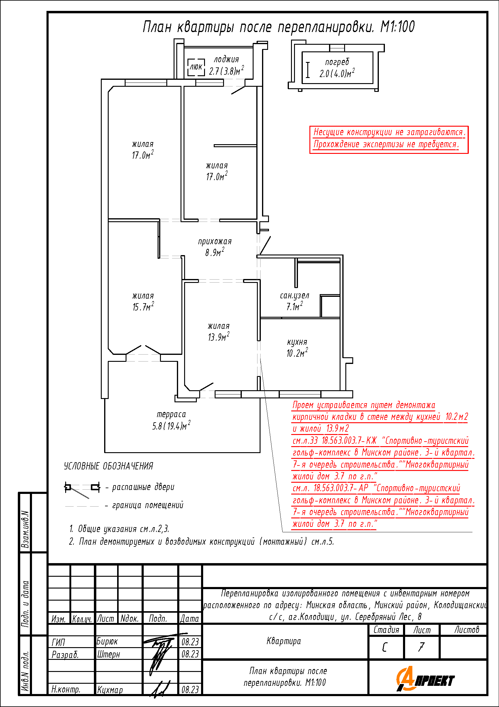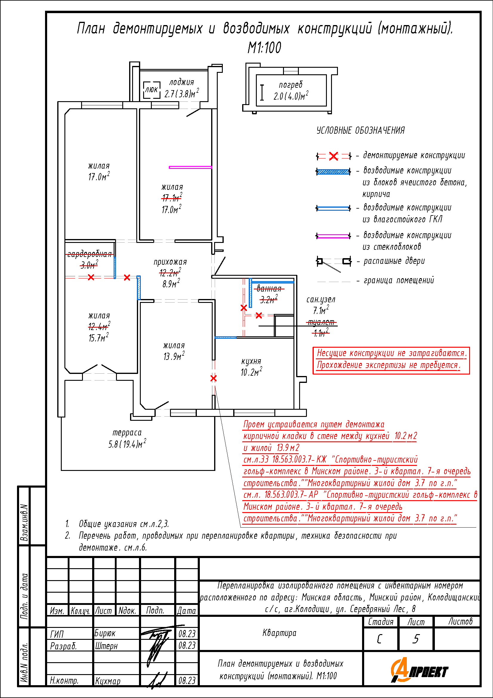 - Устройство стеклянной перегородки в жилой 17,1 м2;