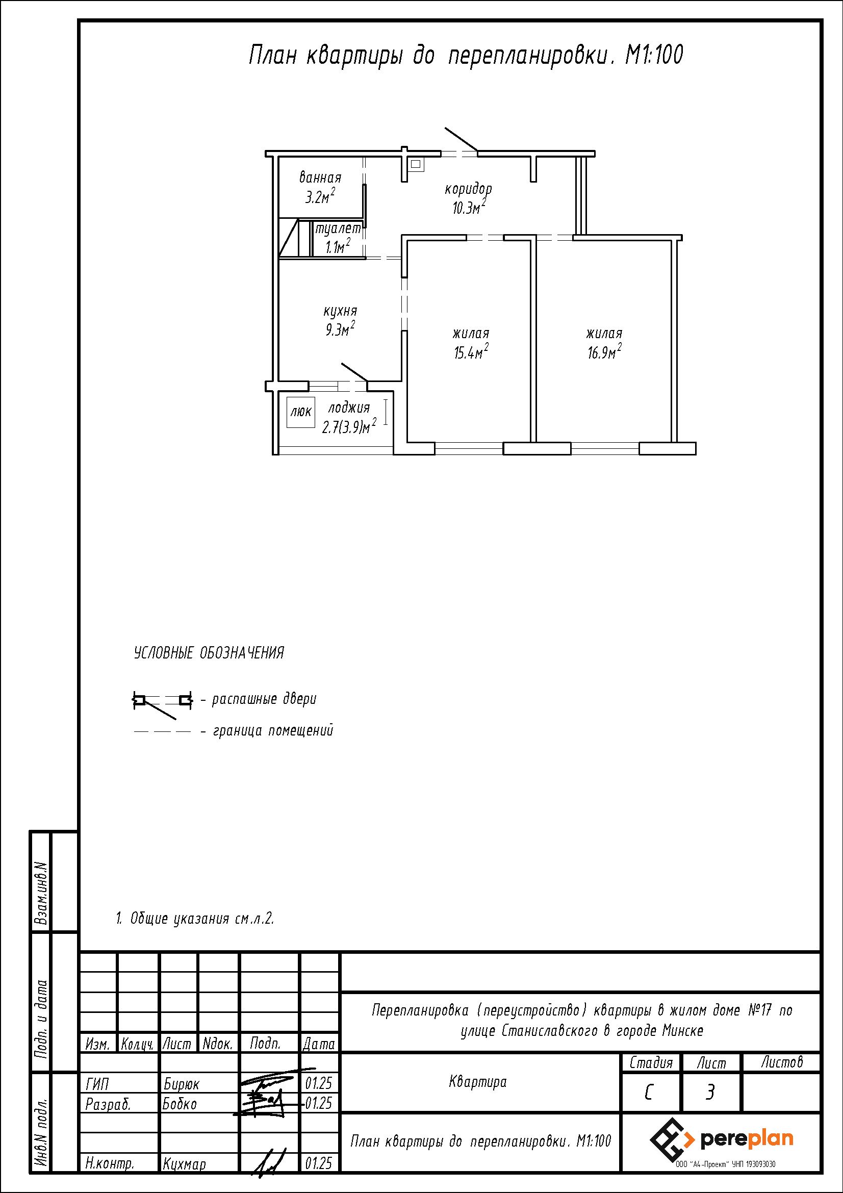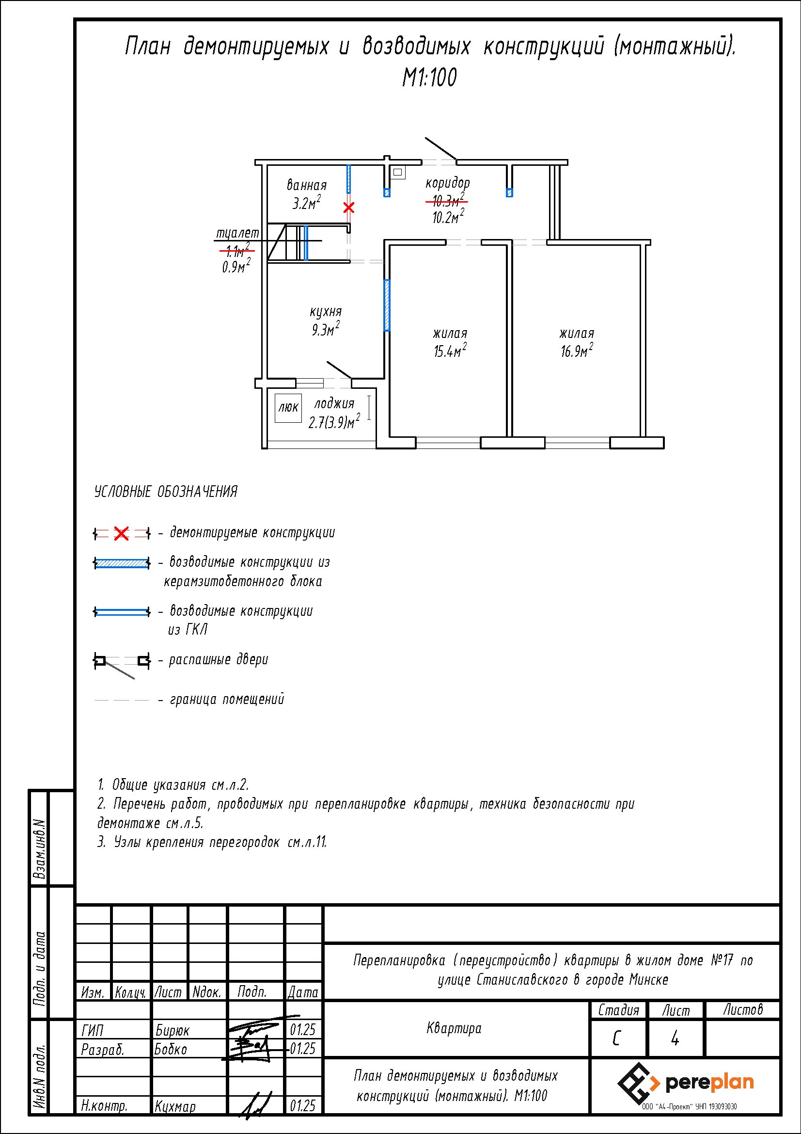 Перепланировка квартиры по ул. Станиславского, 17 в ЖК «Антоновский квартал» в г. Минске