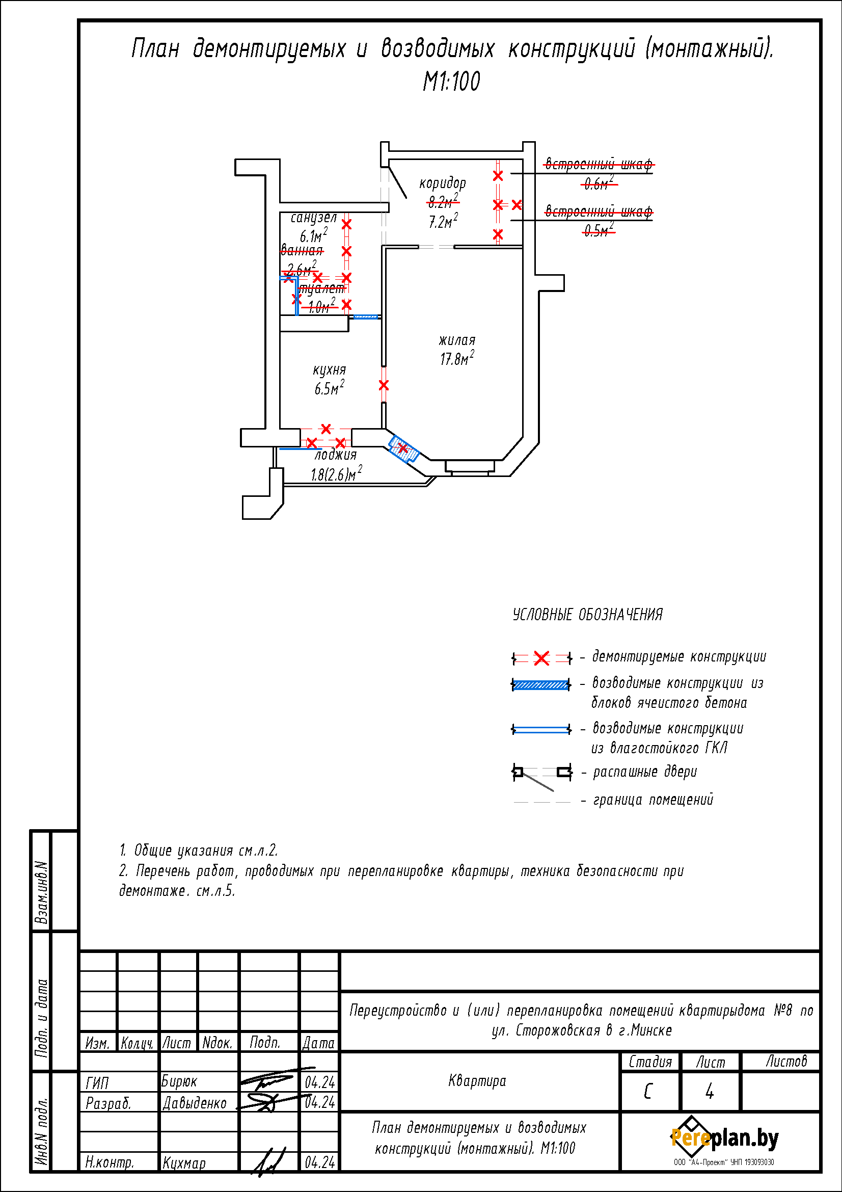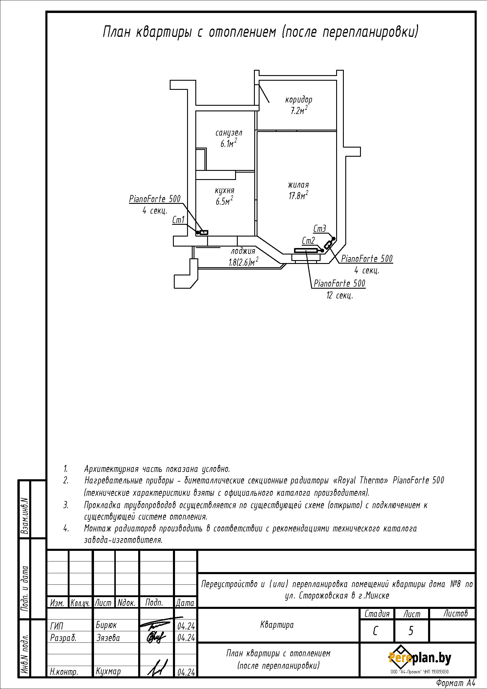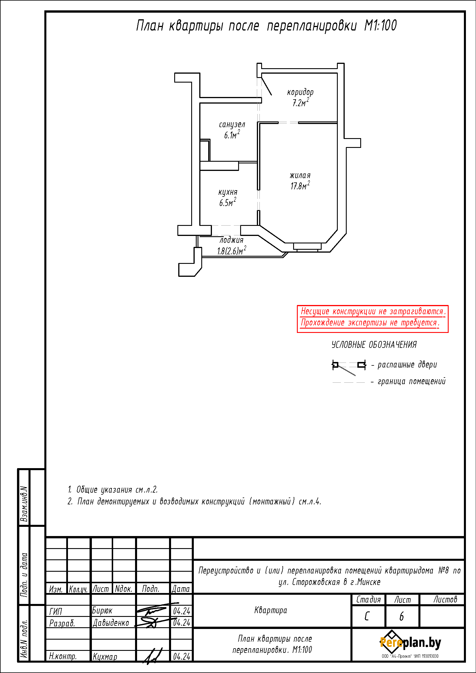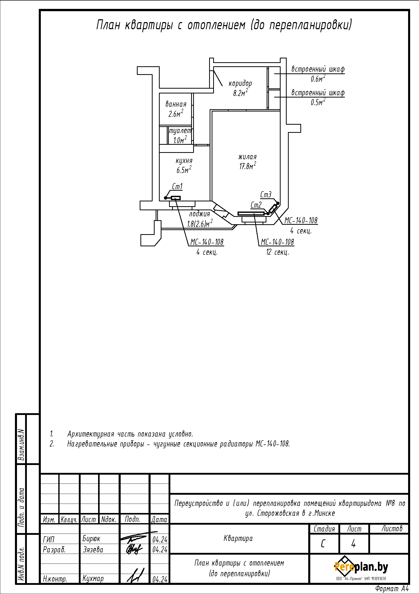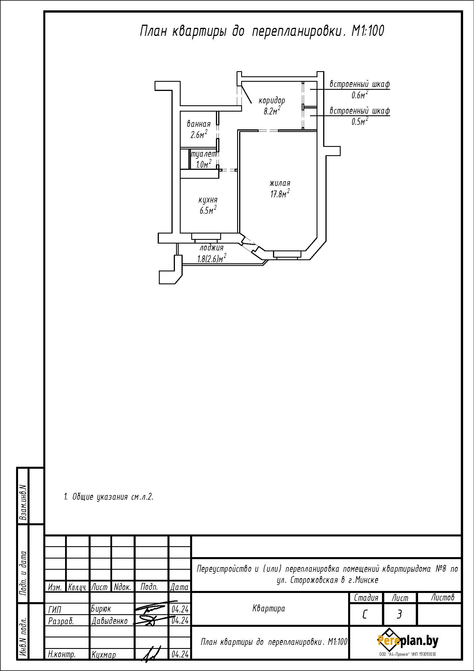 Перепланировка квартиры по ул. Сторожовская, 8 в г. Минске