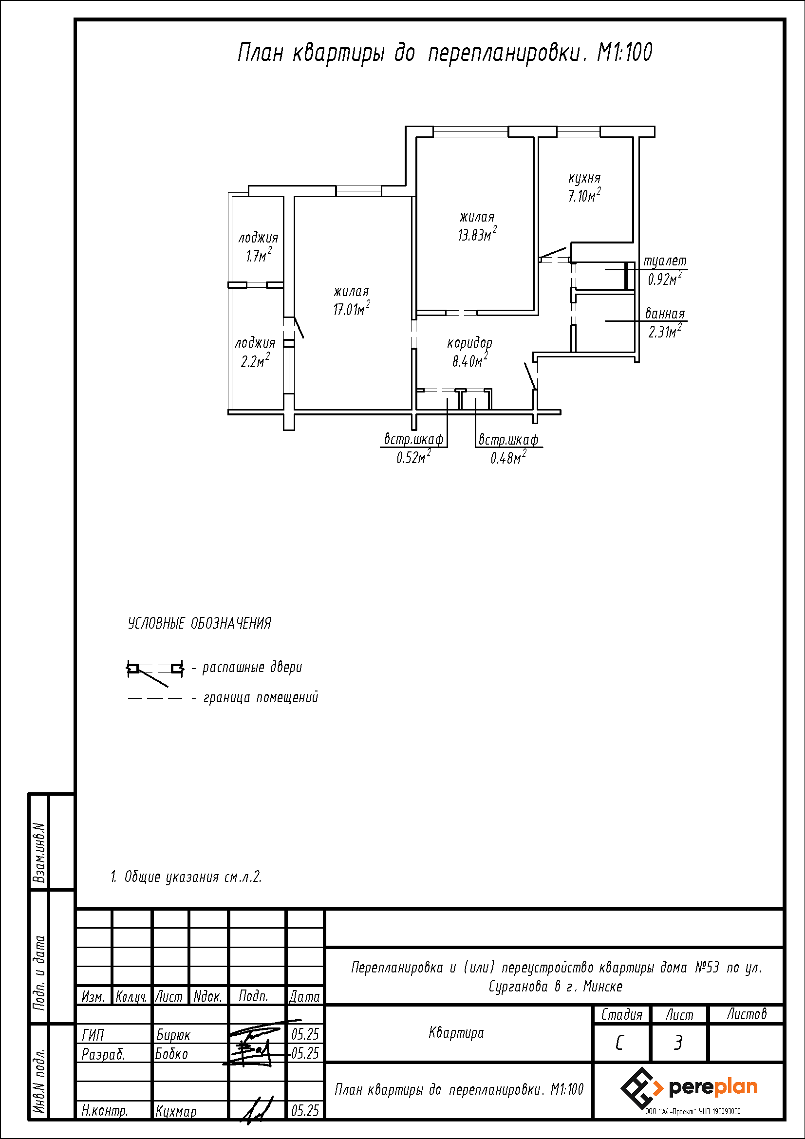Перепланировка квартиры по ул. Сурганова, 53 в г. Минске