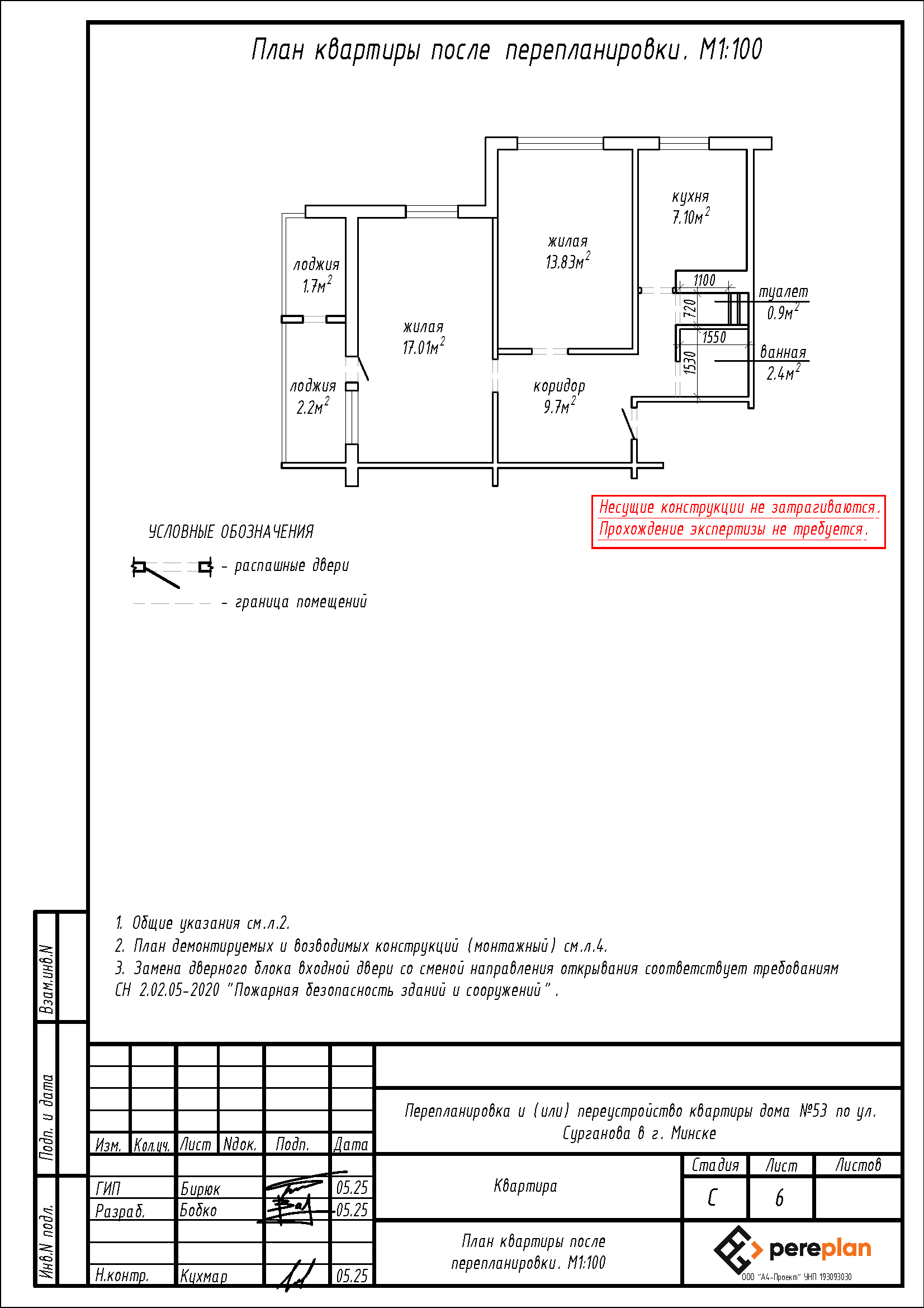 Перепланировка квартиры в г. Минске: