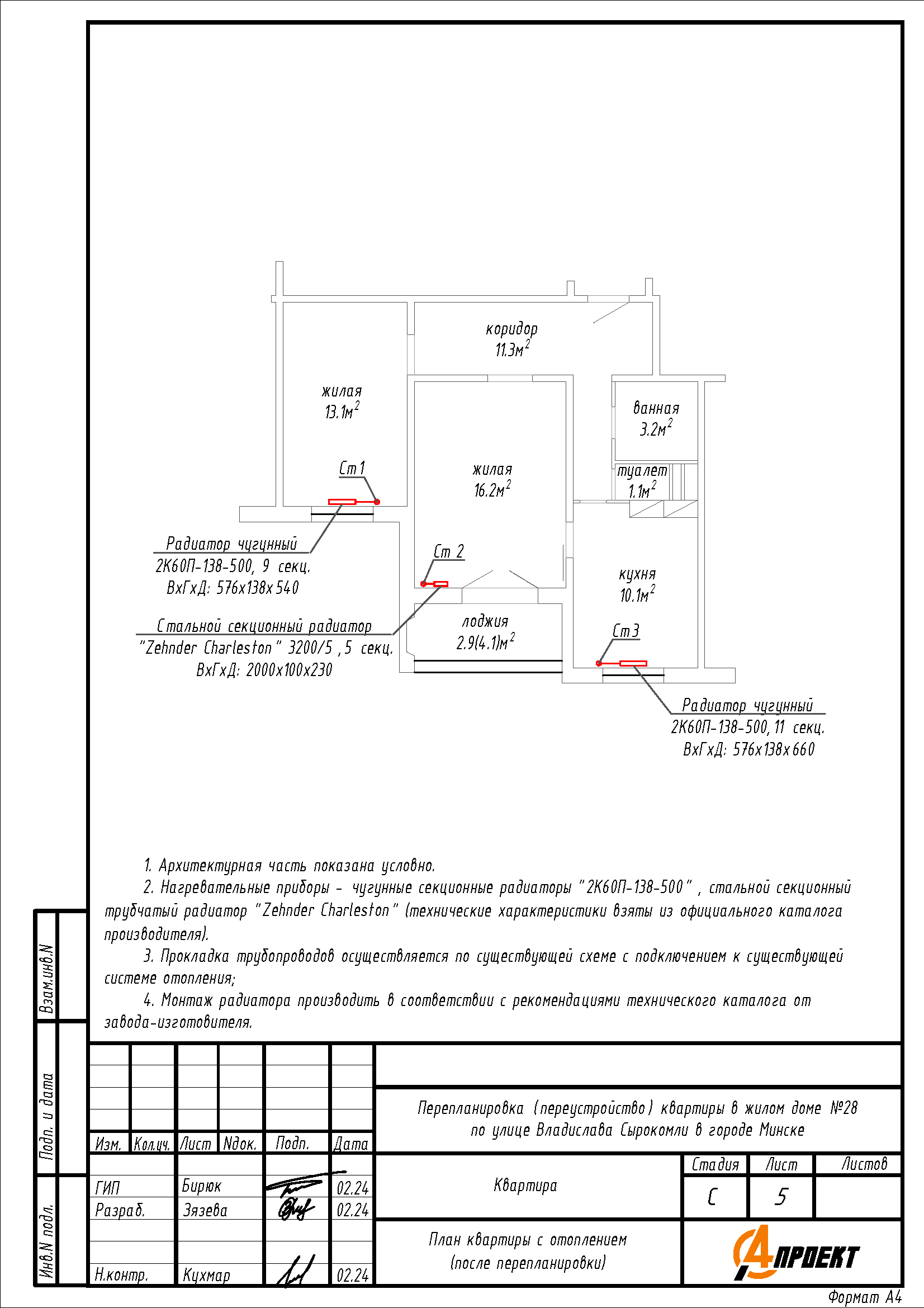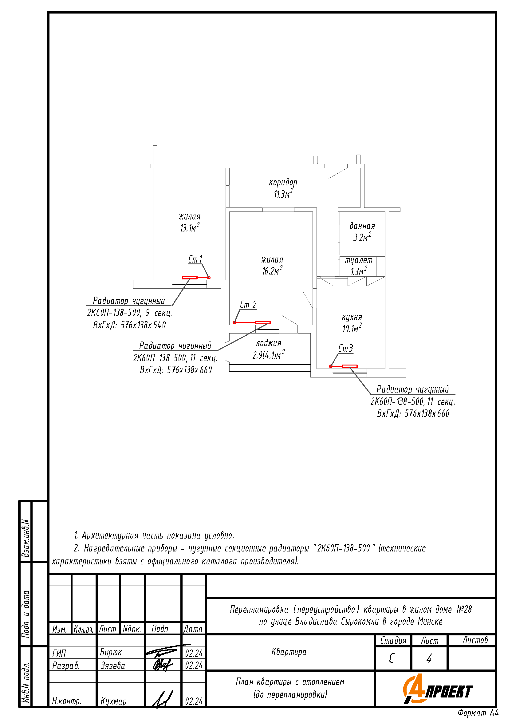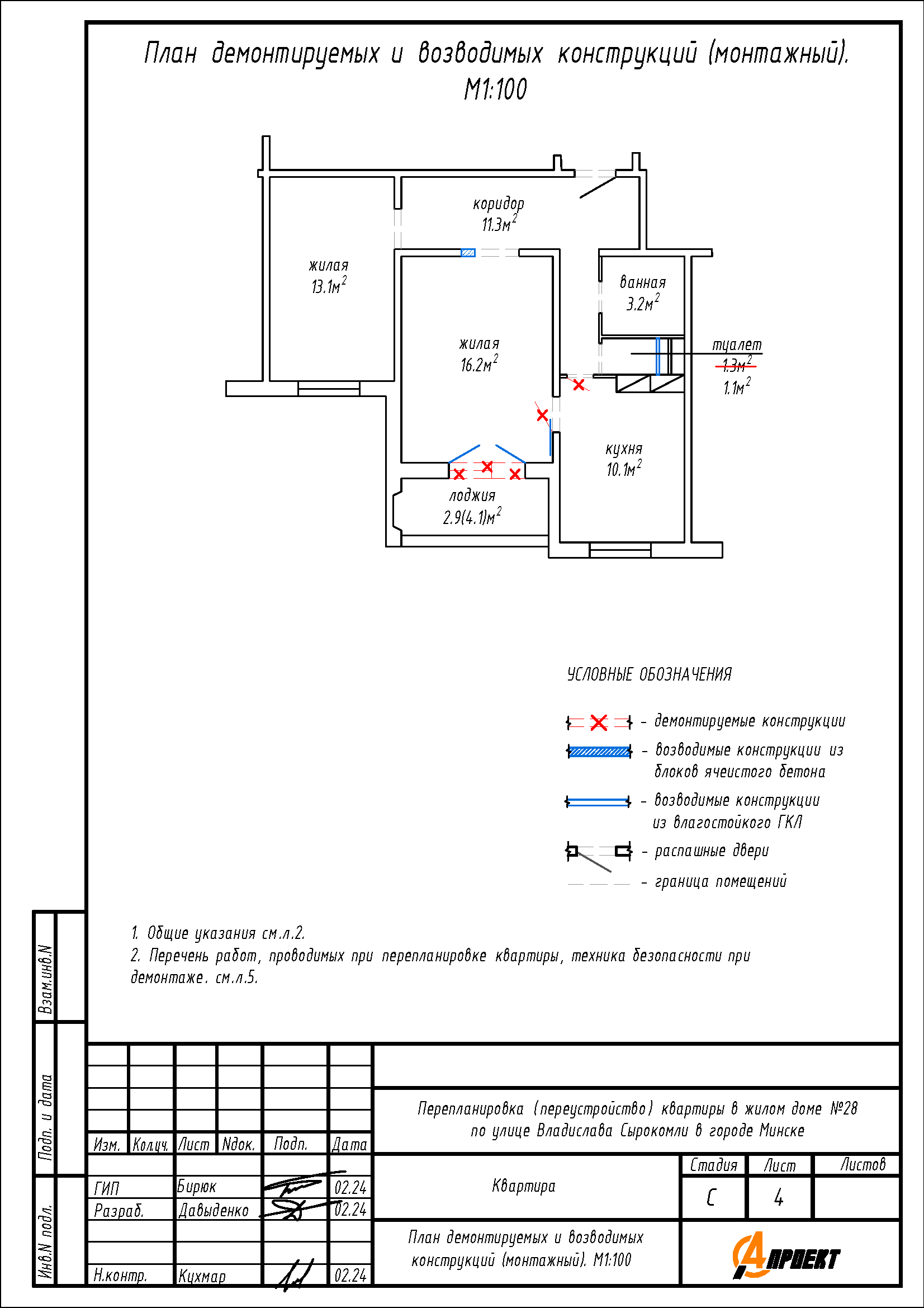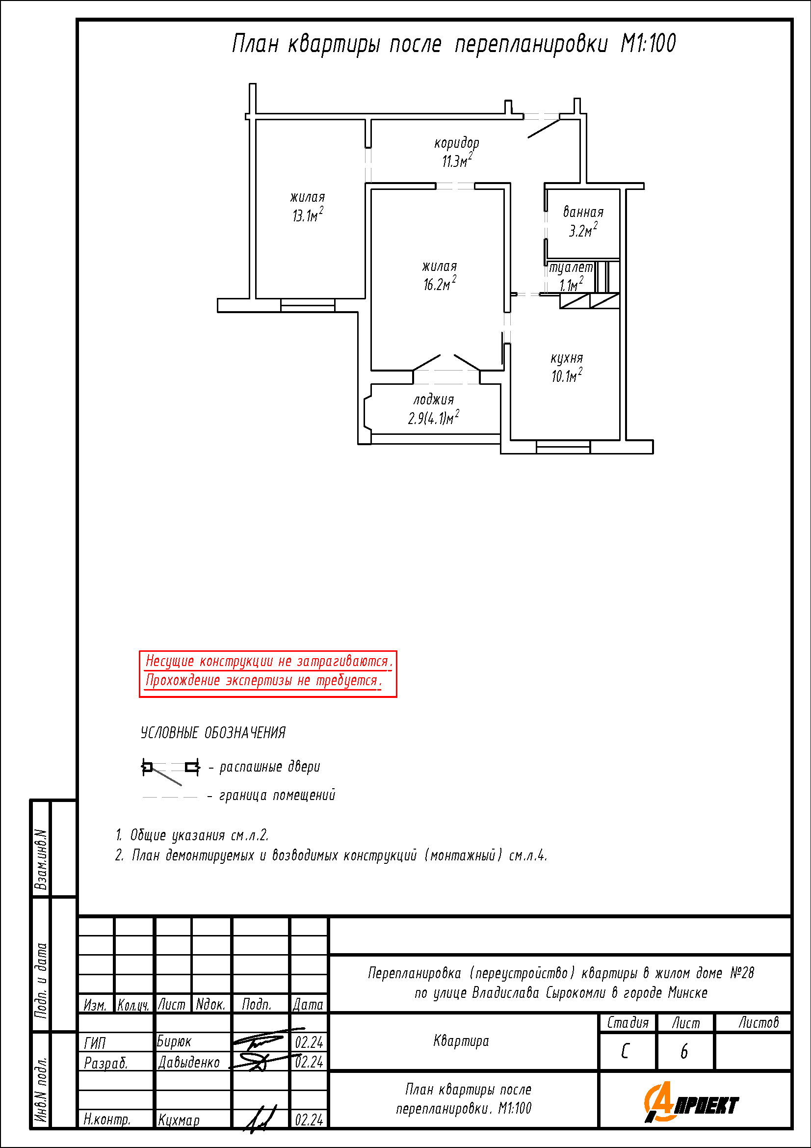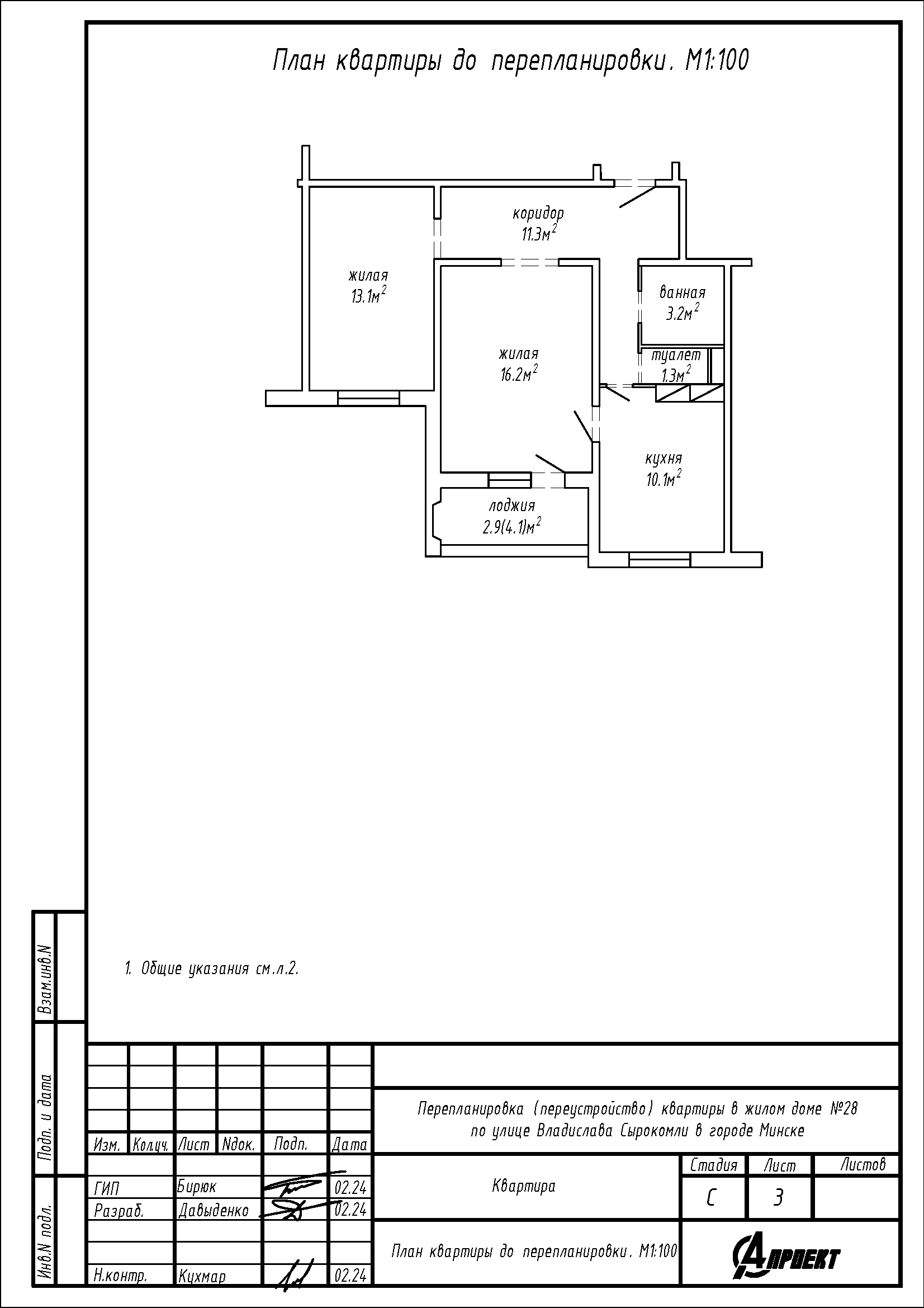 Перепланировка квартиры по ул. Сырокомли, 28 в г. Минске