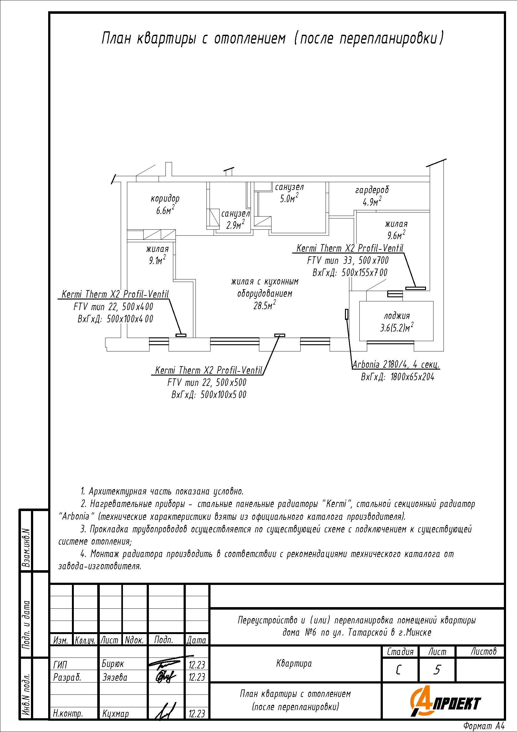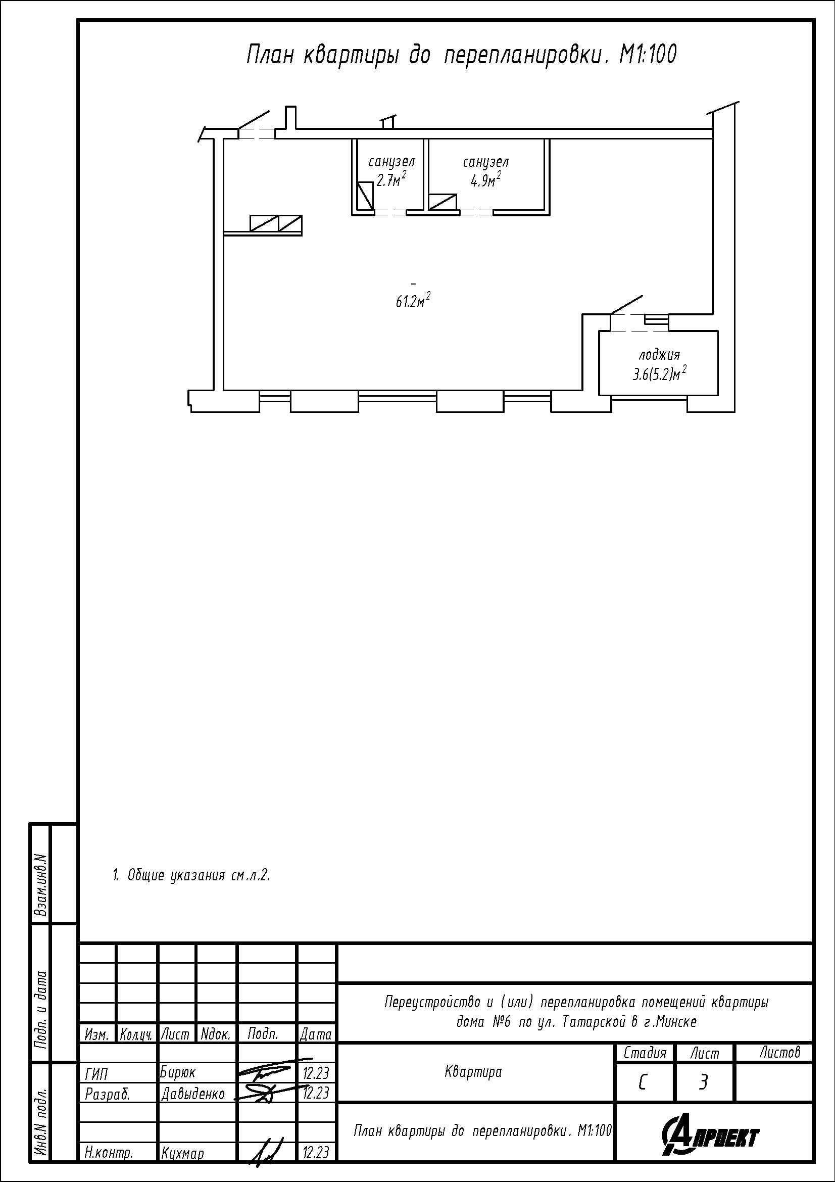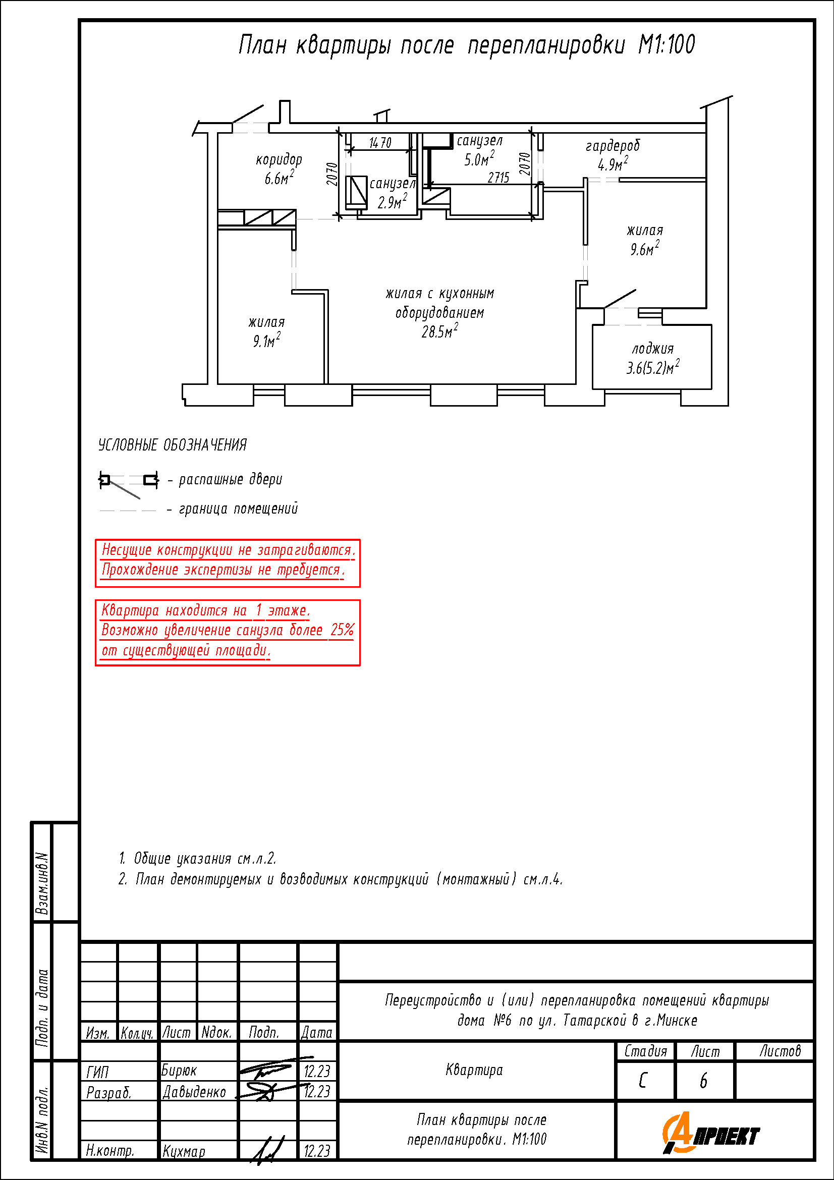 Перепланировка квартиры по ул. Татарская, 6 в ЖК «Комфорт Парк»