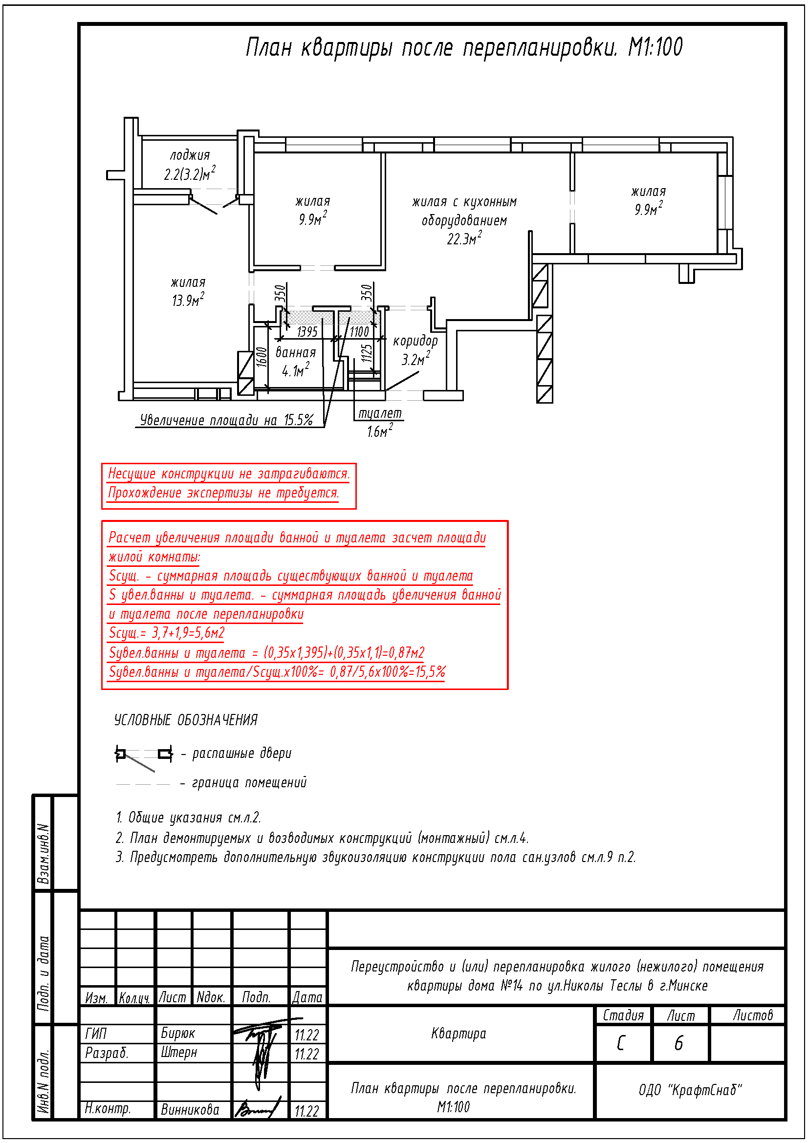 Перепланировка квартиры по ул. Теслы, 14 в ЖК «Минск Мир»