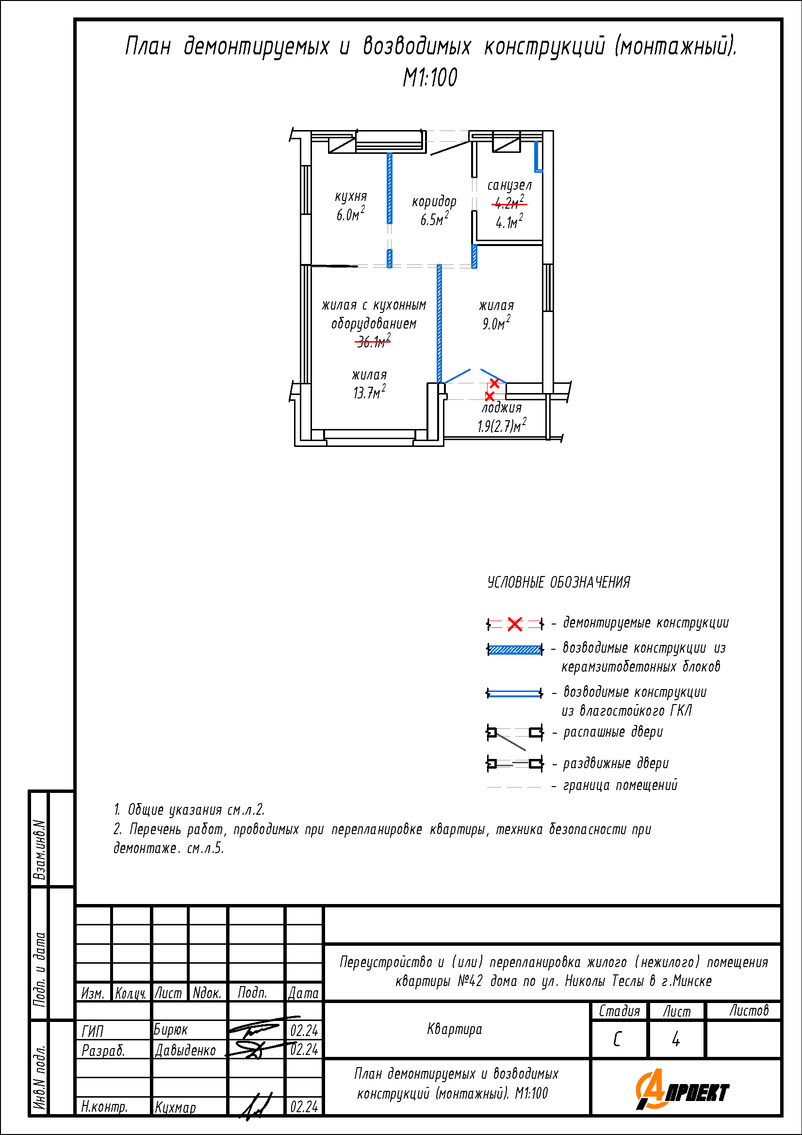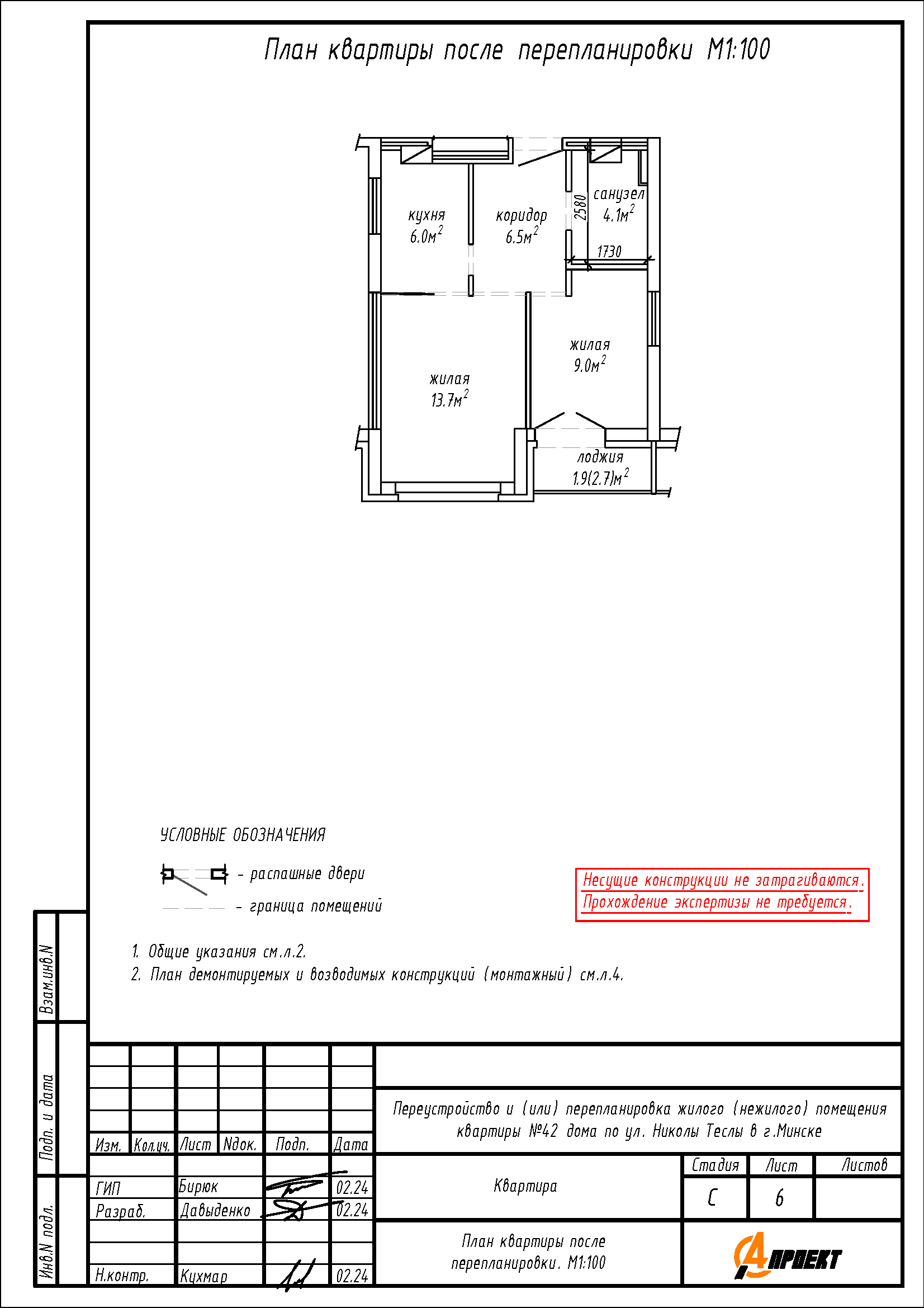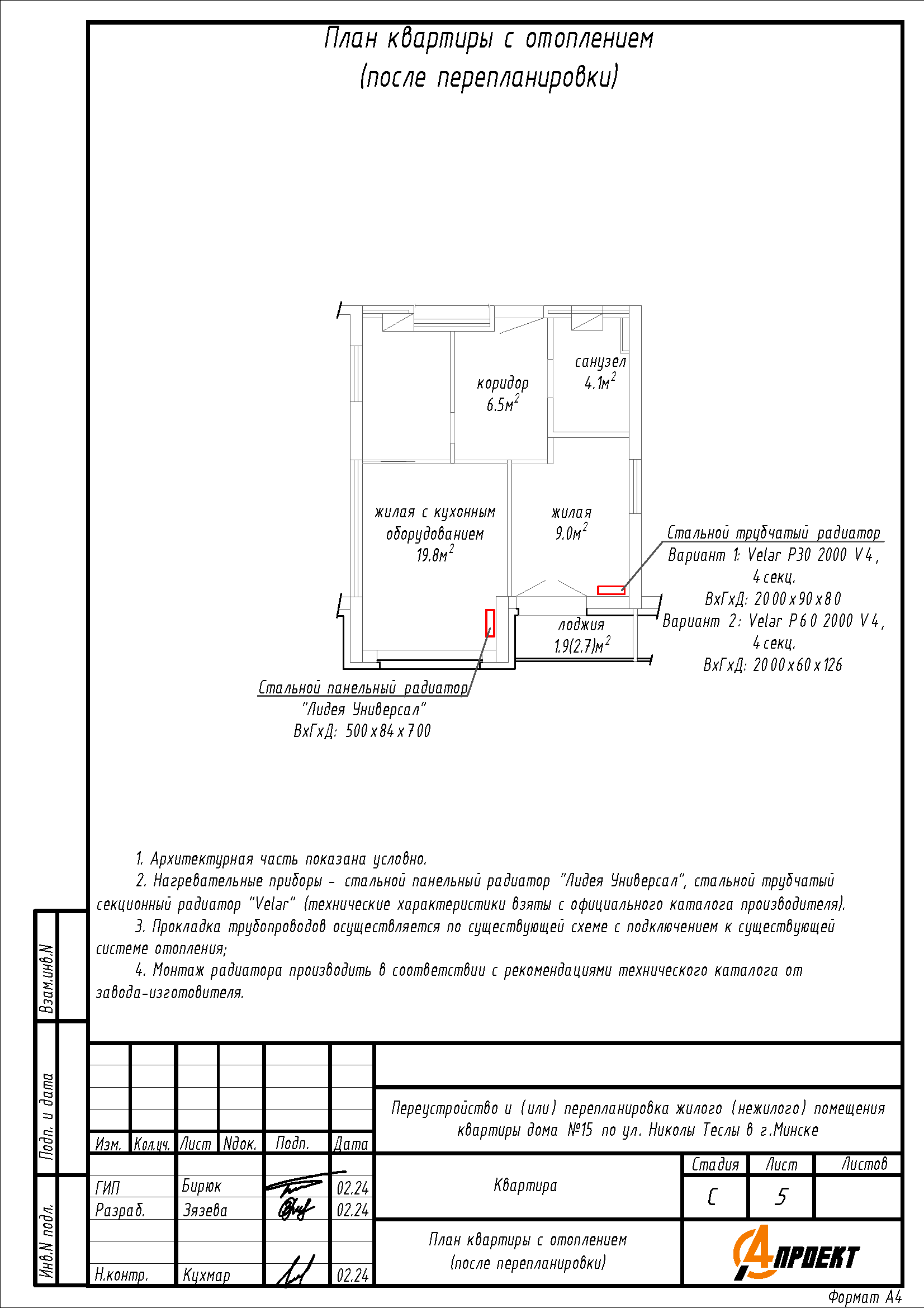 Перепланировка квартиры по ул. Николы Теслы, 15 в ЖК «Минск Мир»