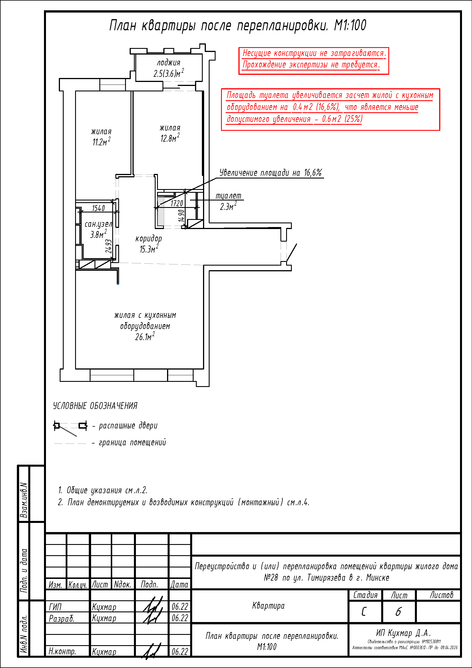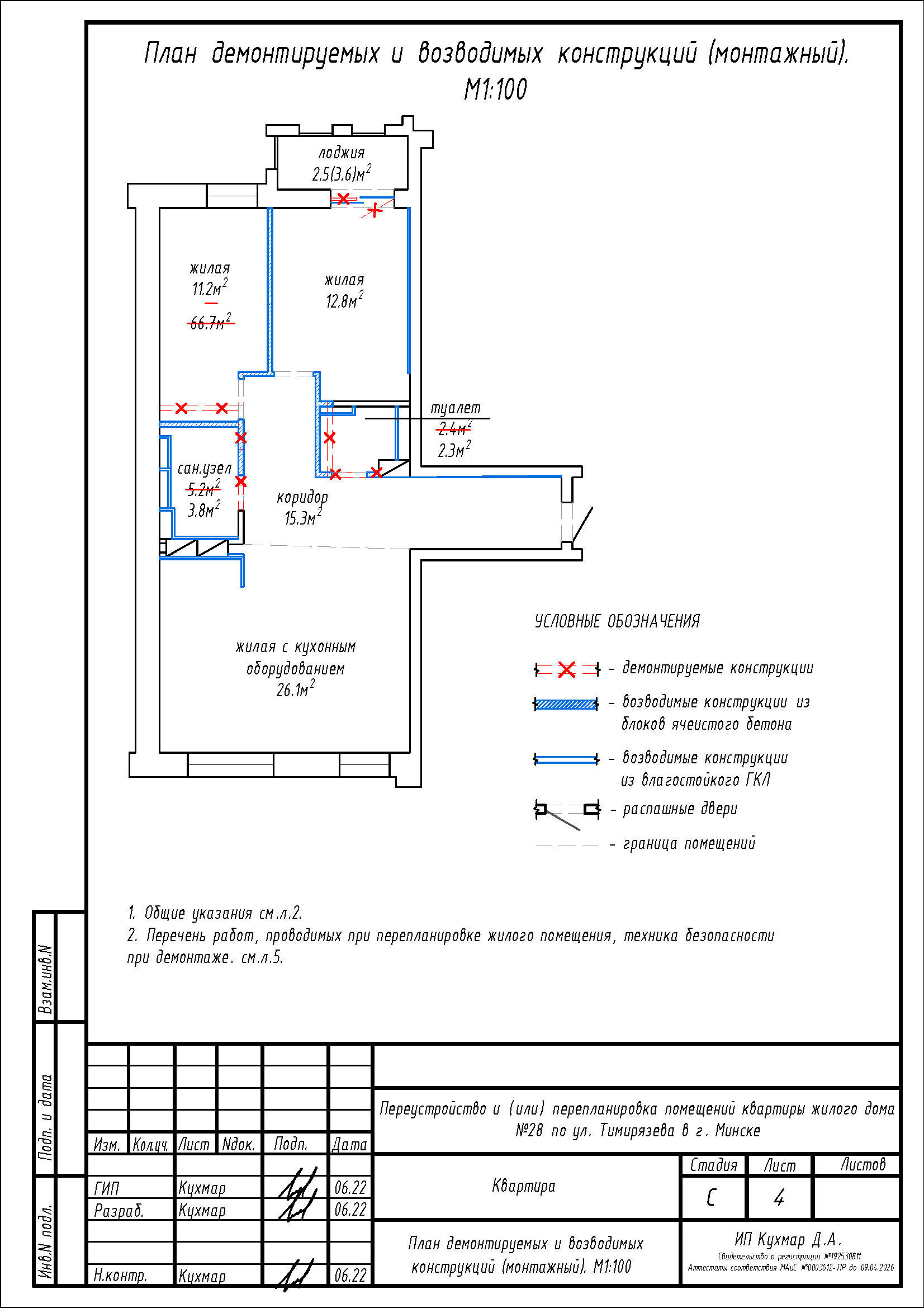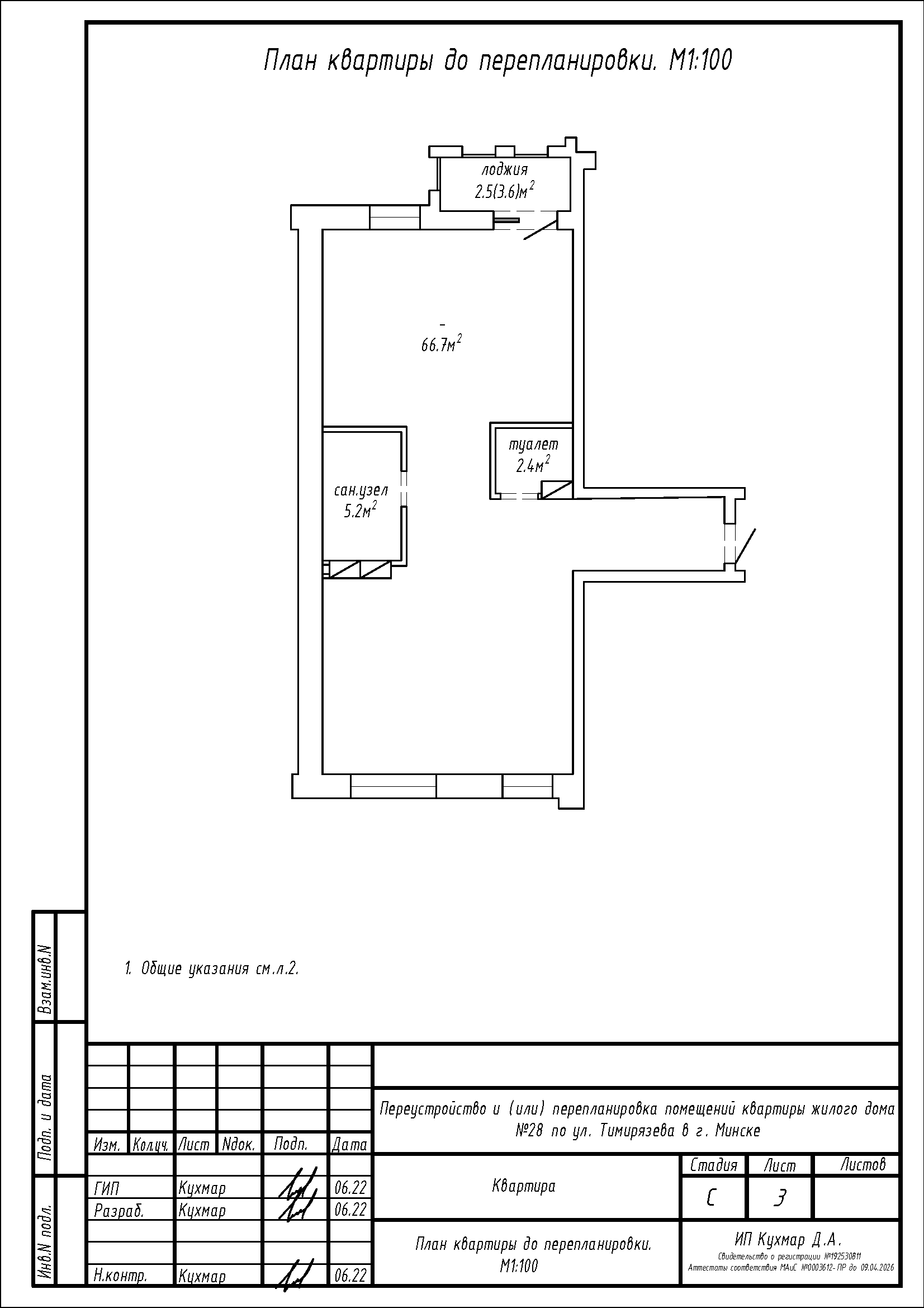 Перепланировка квартиры по ул. Тимирязева, 28 в ЖК «Комфорт Парк»