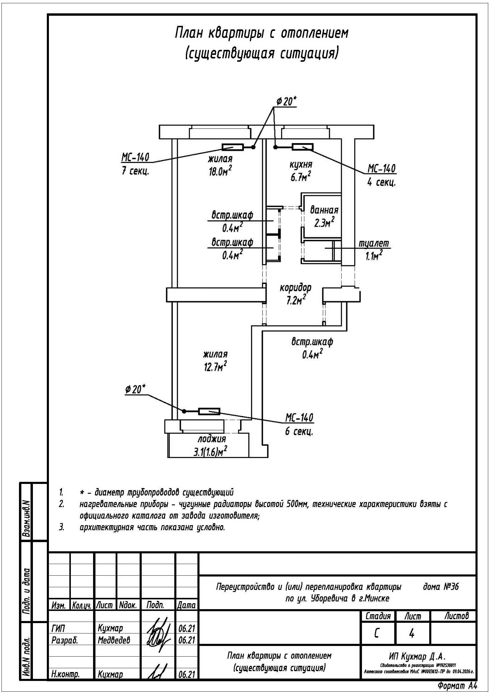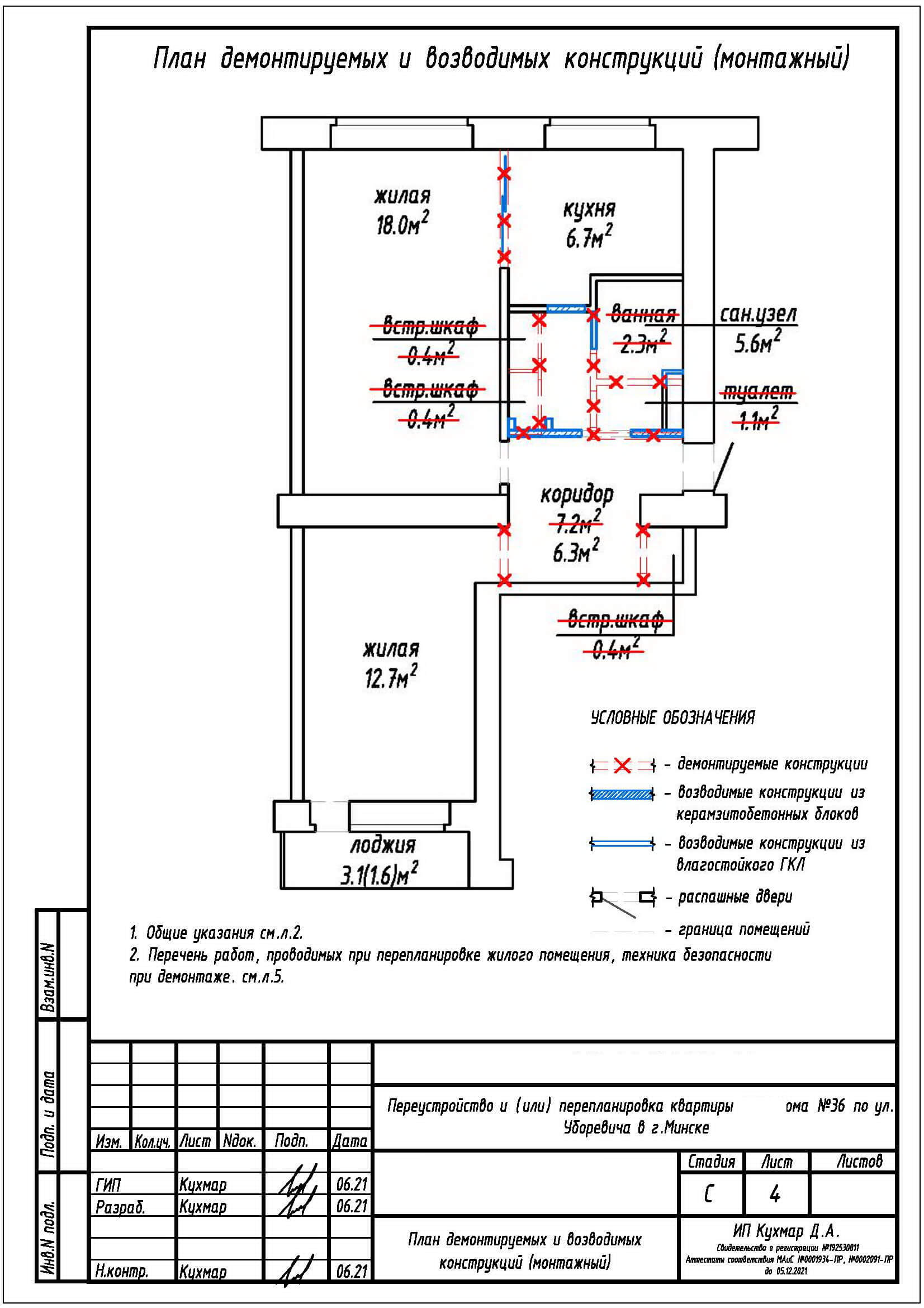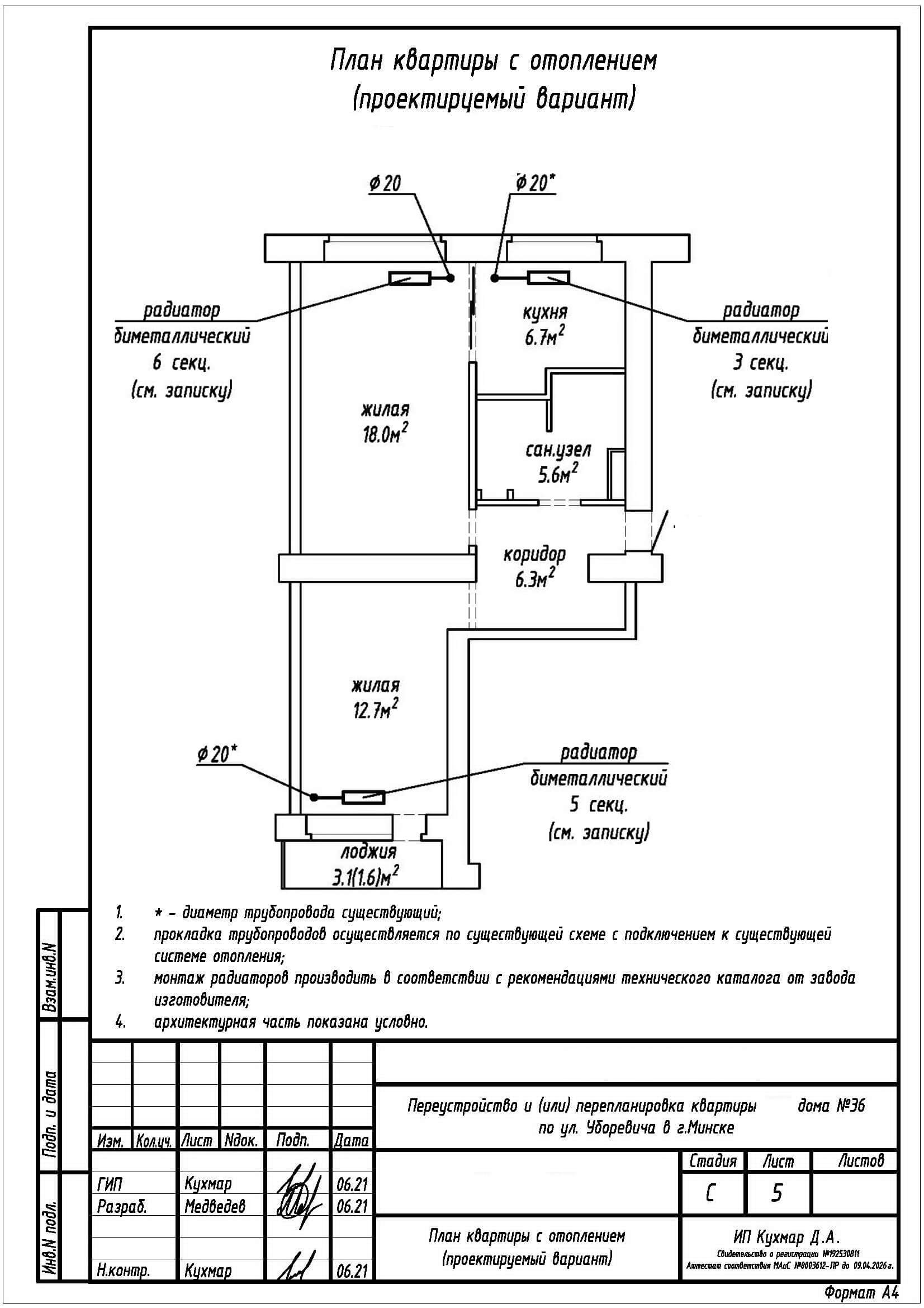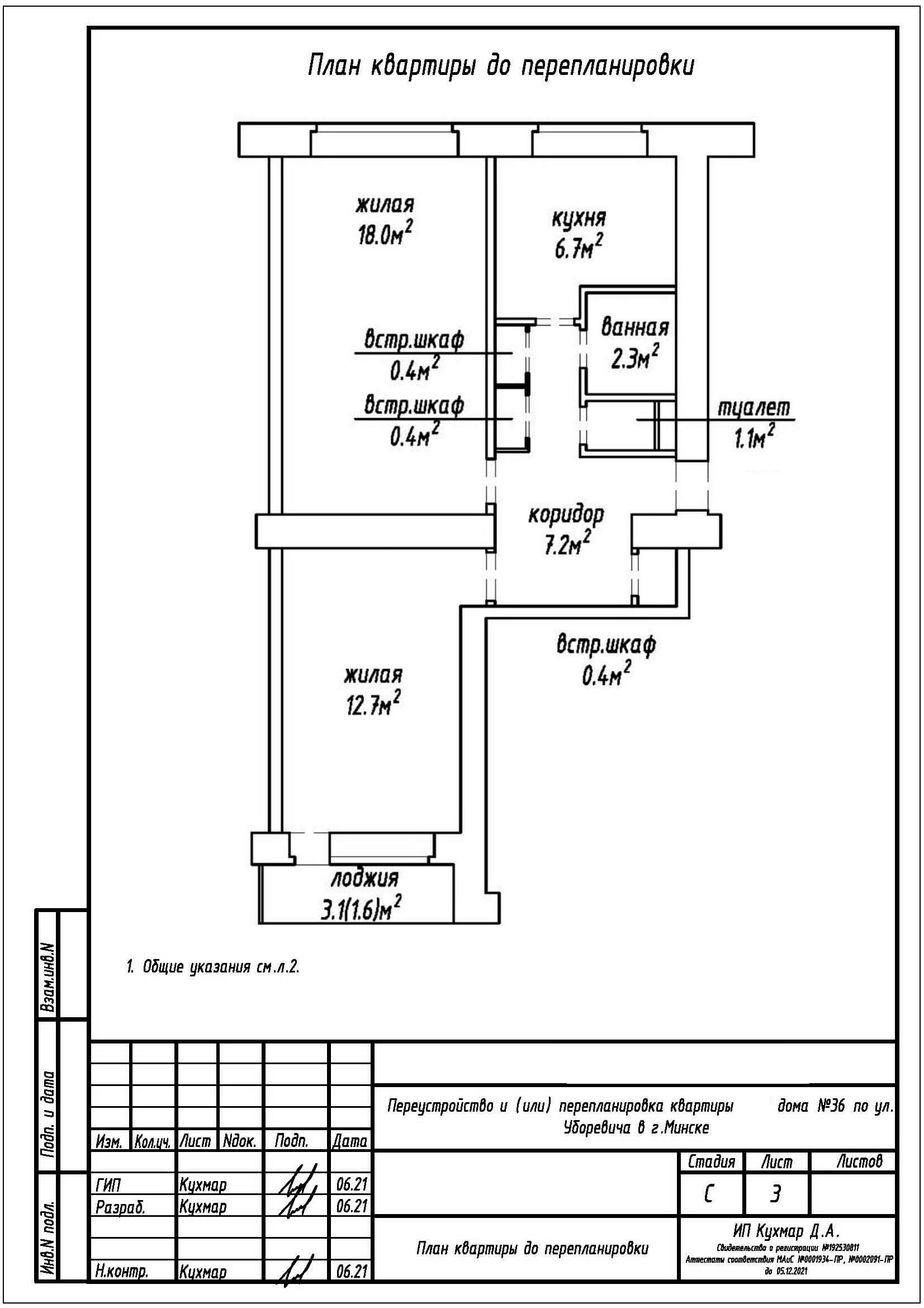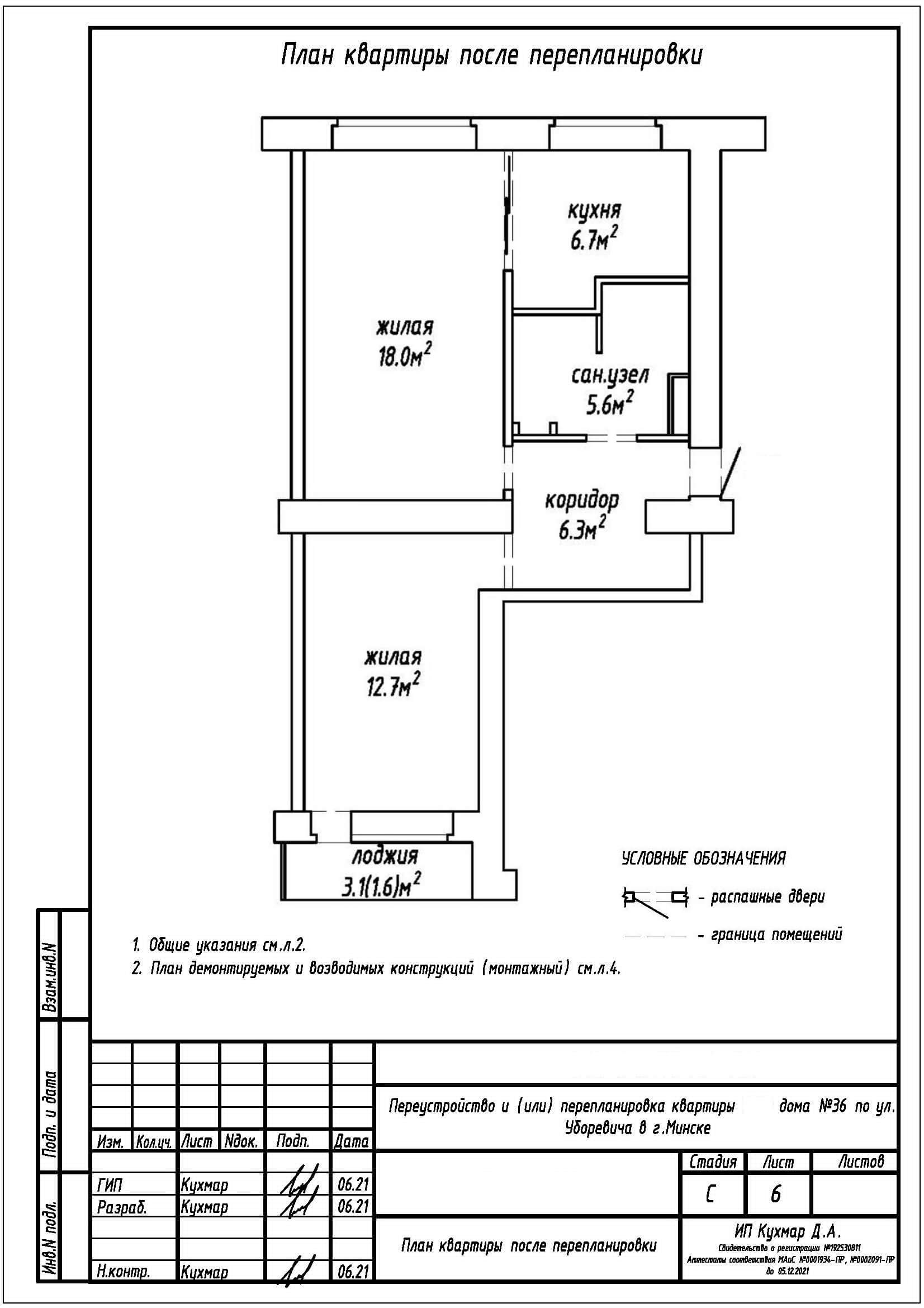 Перепланировка квартиры по ул. Уборевича, 36 в г. Минске
