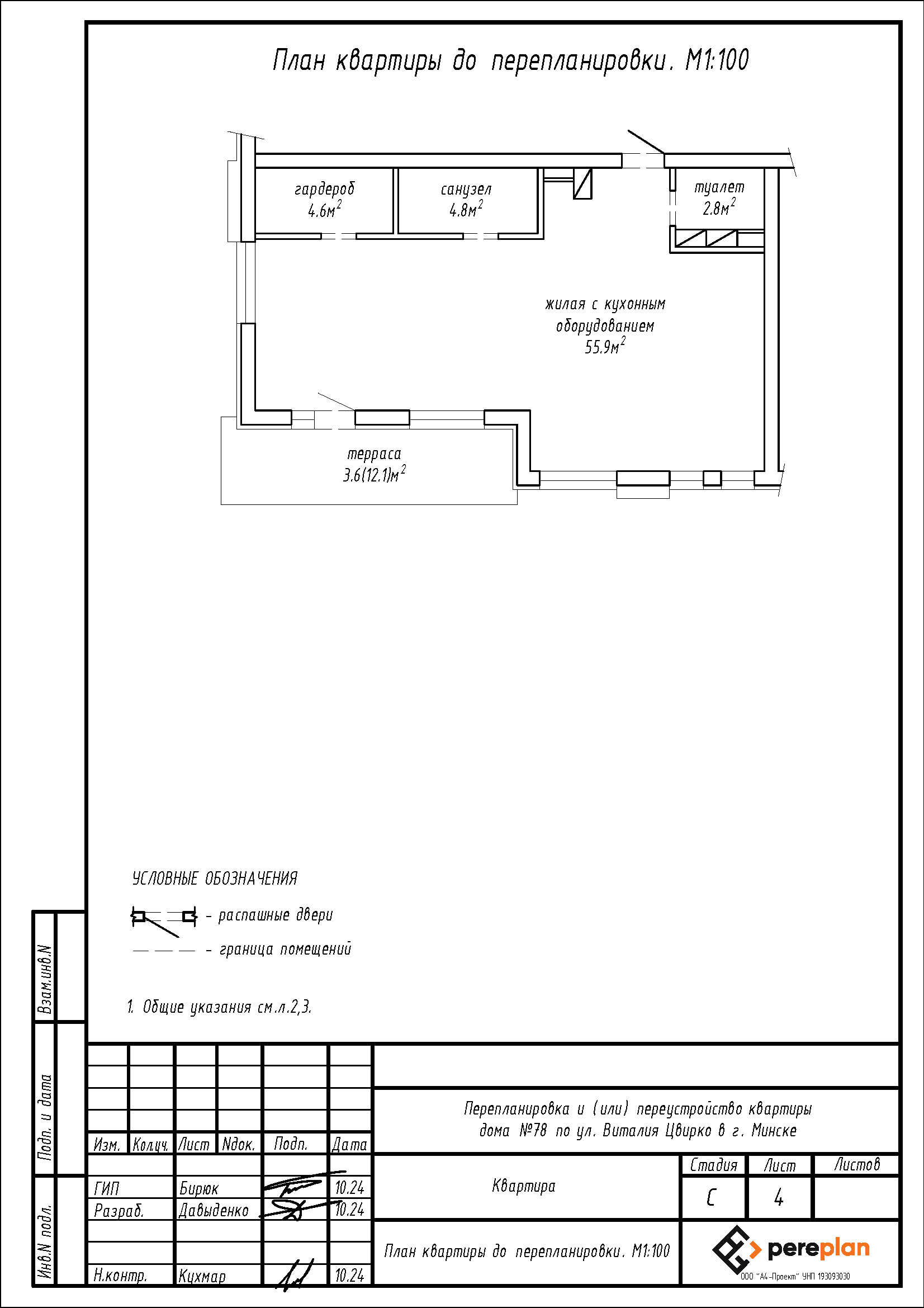 Перепланировка квартиры по ул. Виталия Цвирко, 76 в ЖК «Северный Берег»