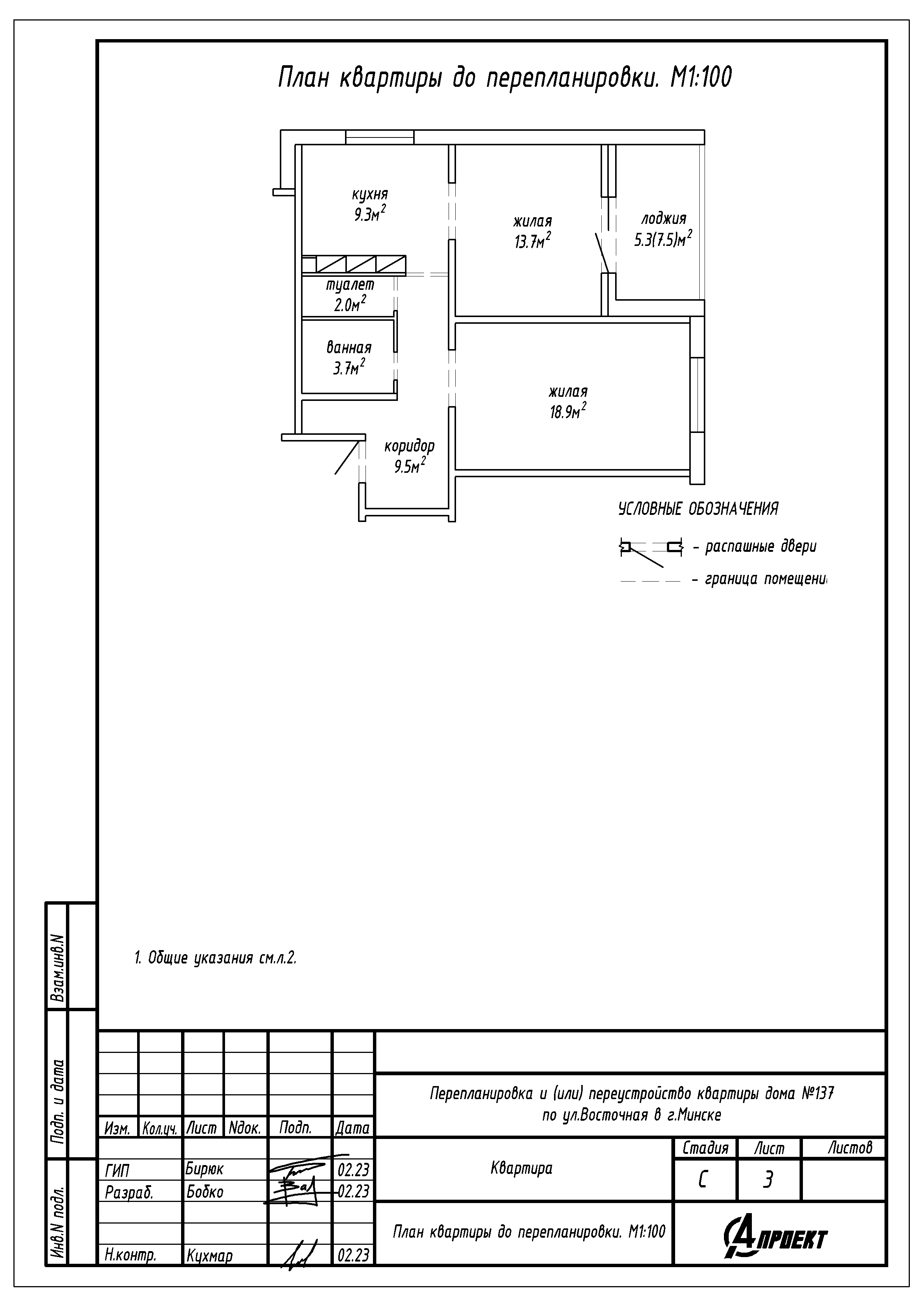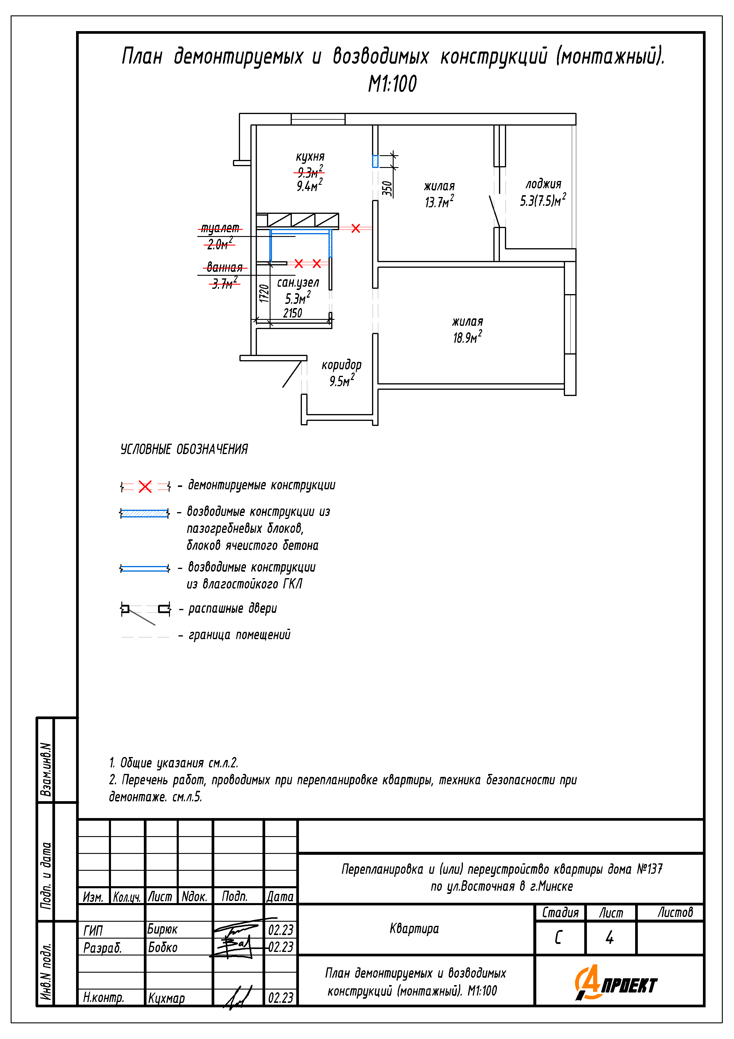 Перепланировка квартиры по ул. Восточная, 137 в ЖК «4 Сезона»