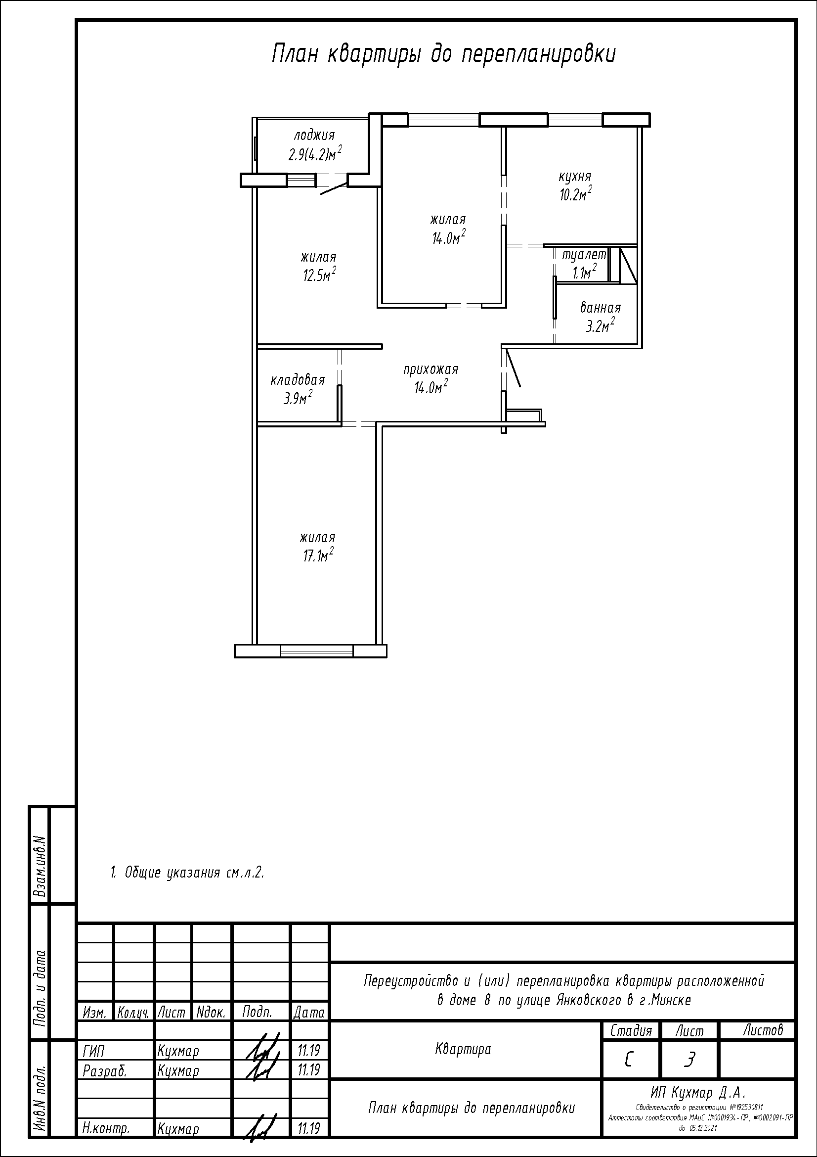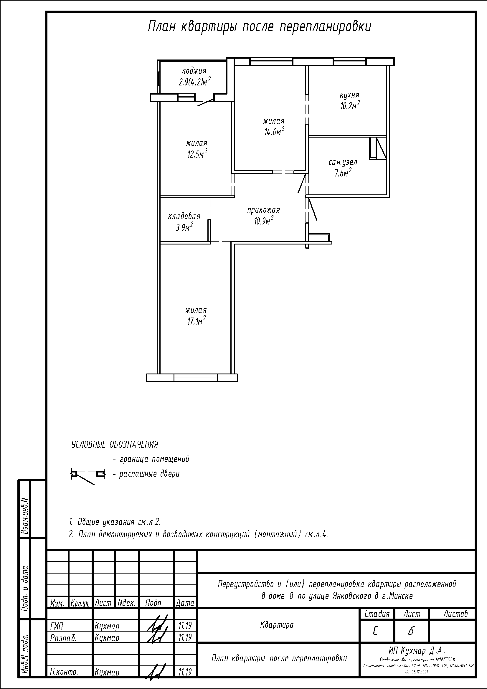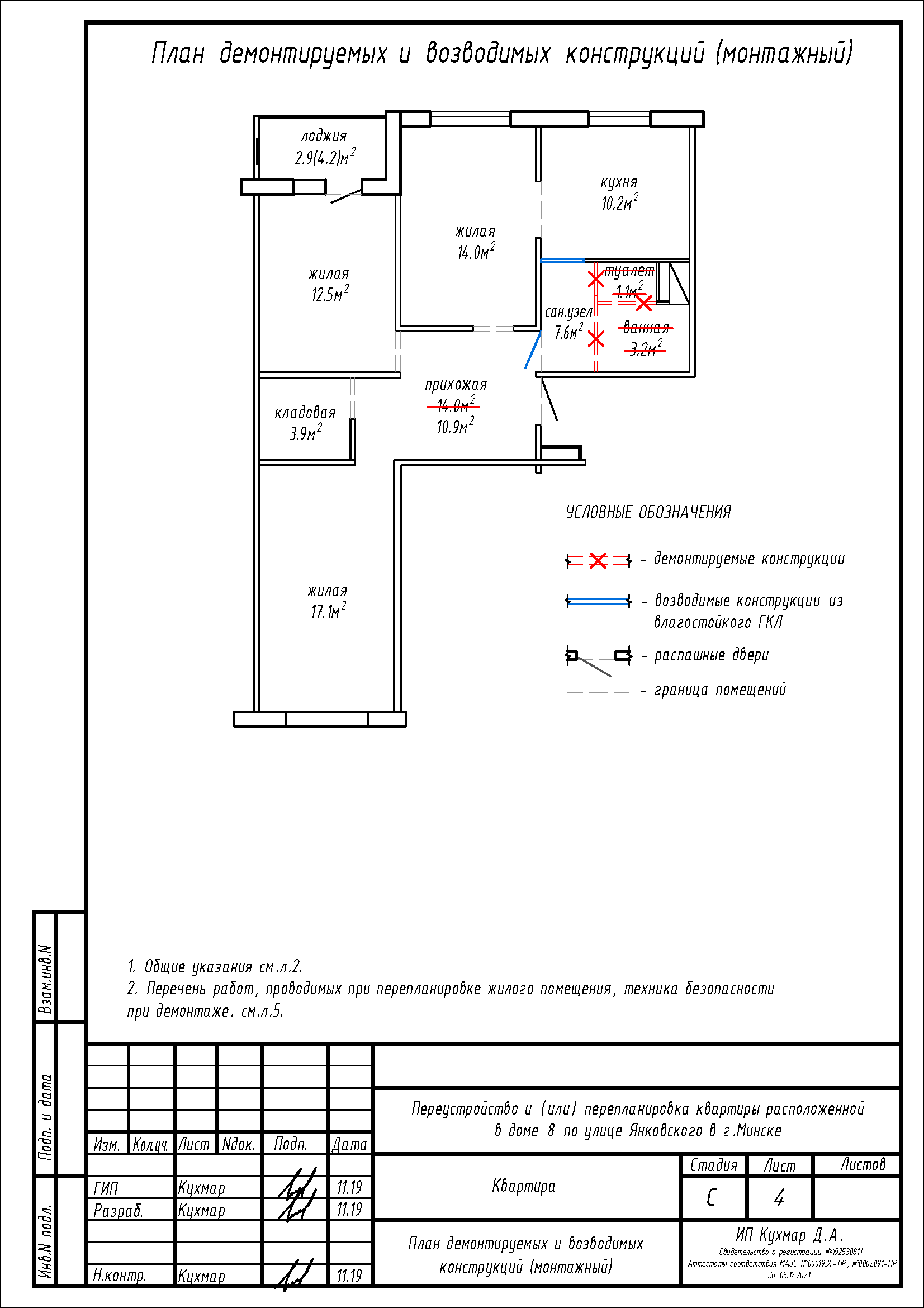 Перепланировка квартиры по ул. Янковского, 8 в г.Минске