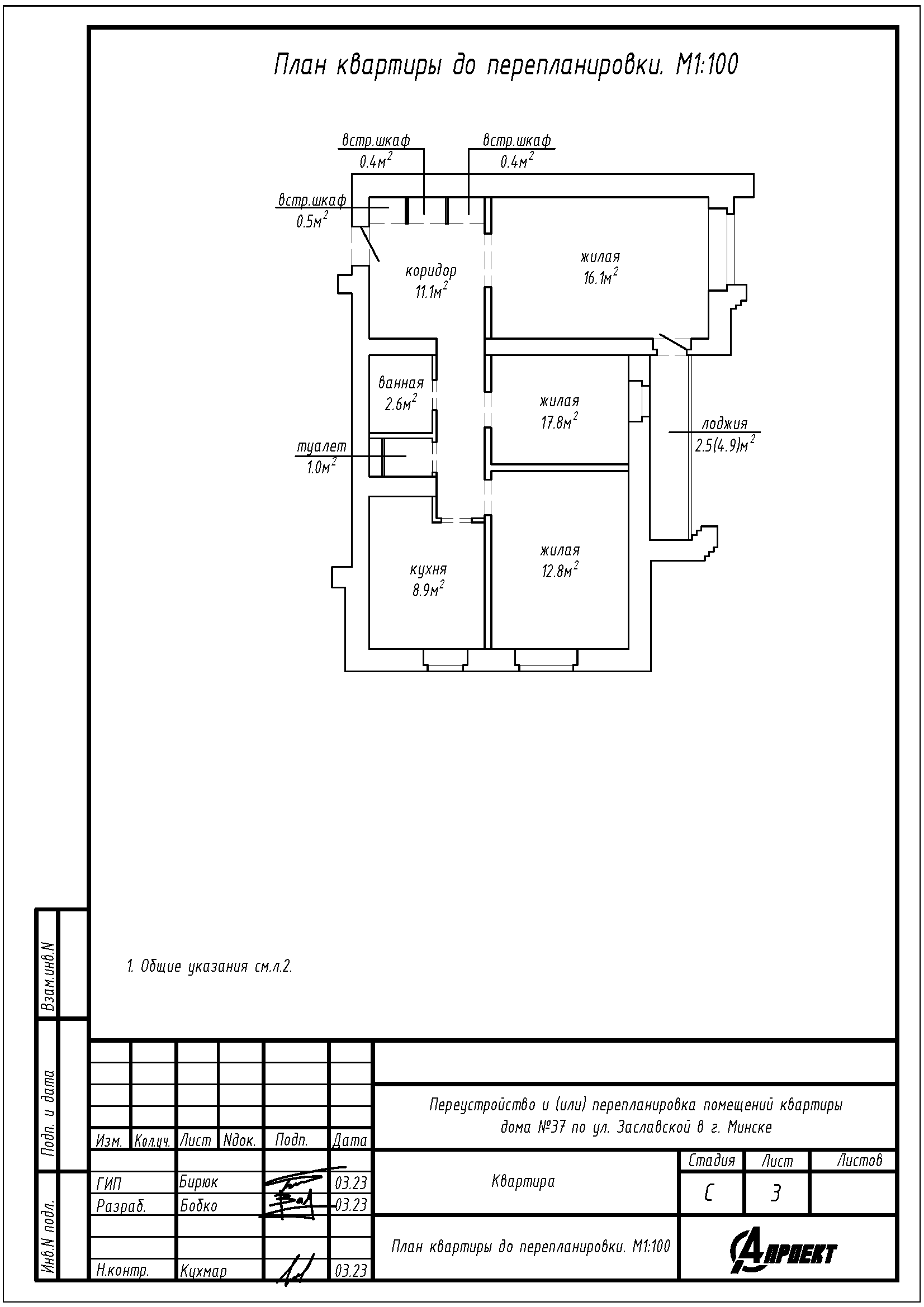 Перепланировка квартиры по ул. Заславская, 37