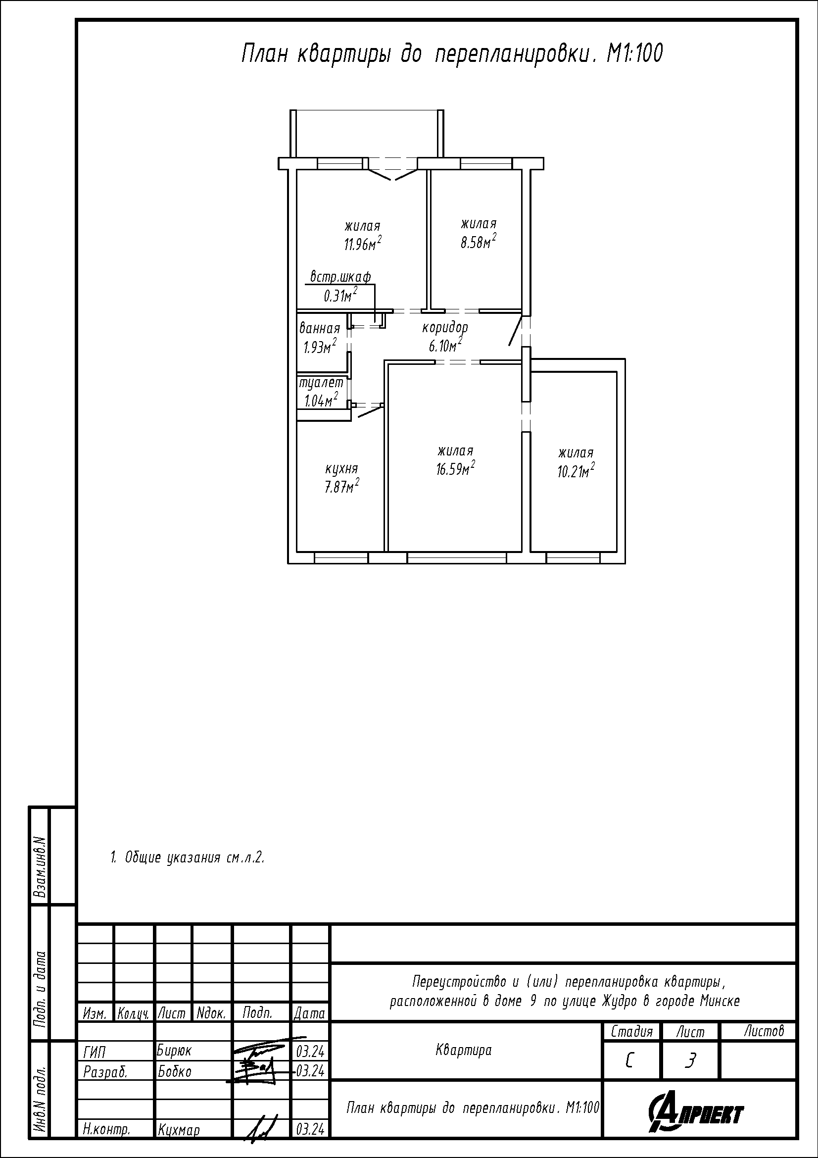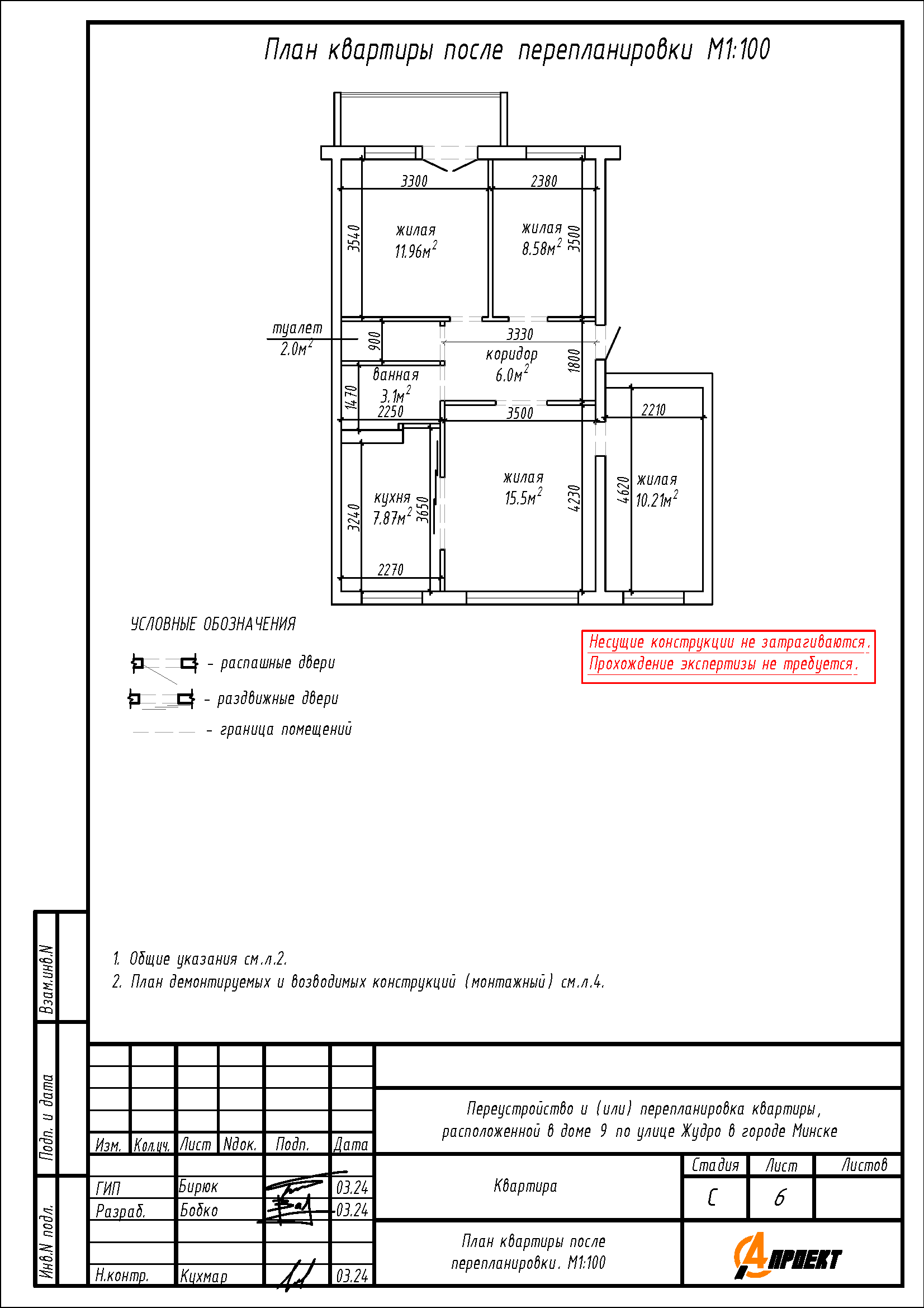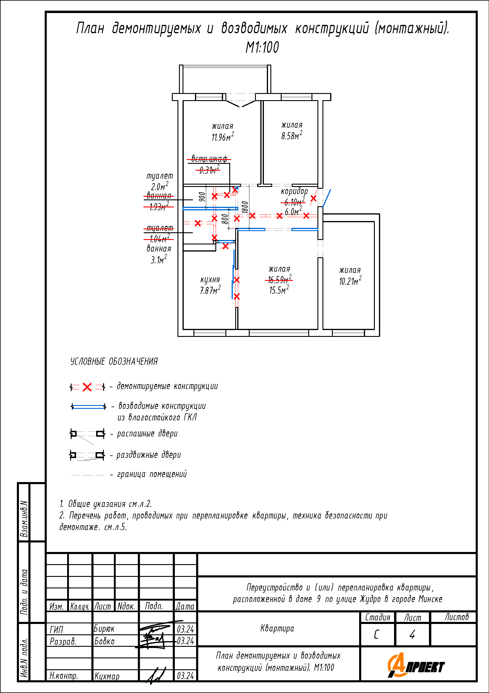Перепланировка квартиры по ул. Жудро, 9 в г. Минске