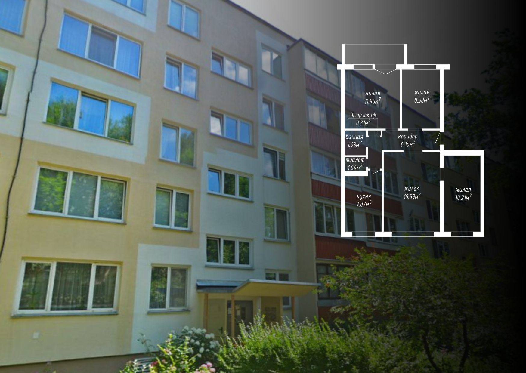 - Демонтаж перегородок с дверным проемом между коридором 6.10 м2 и жилой 16.59 м2 с последующим устройством перегородки с дверным проемом на части площади жилой 16.59 м2: