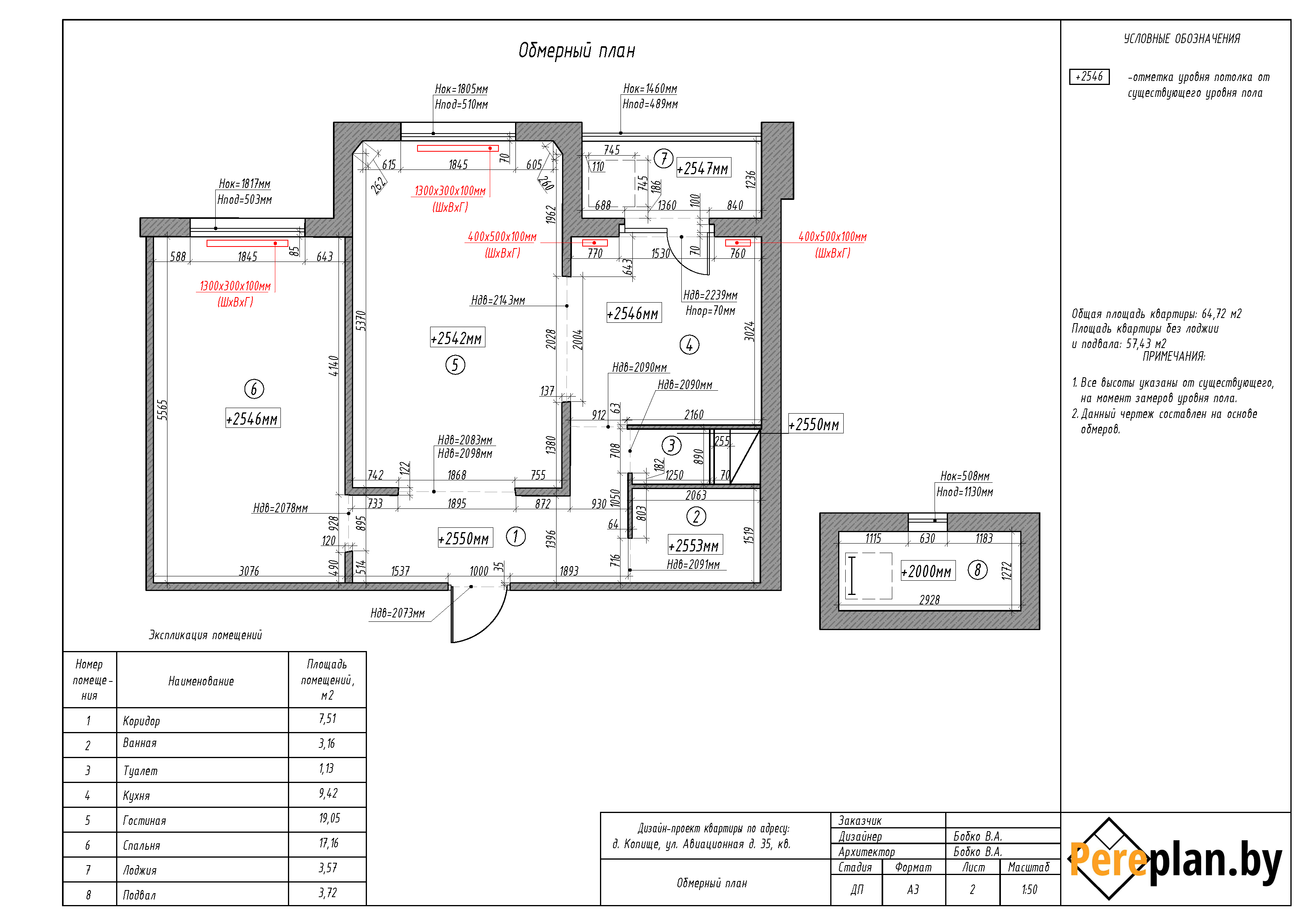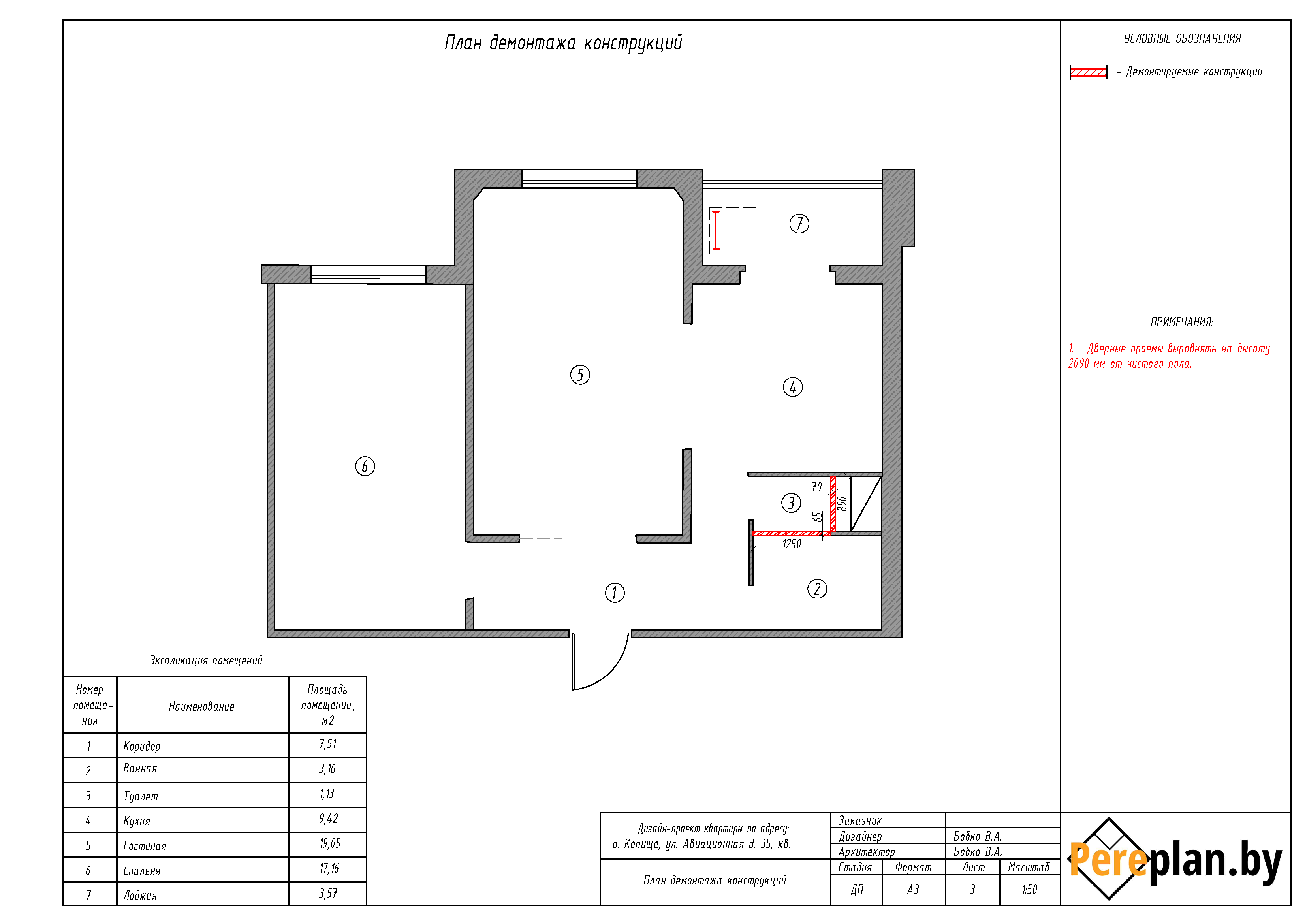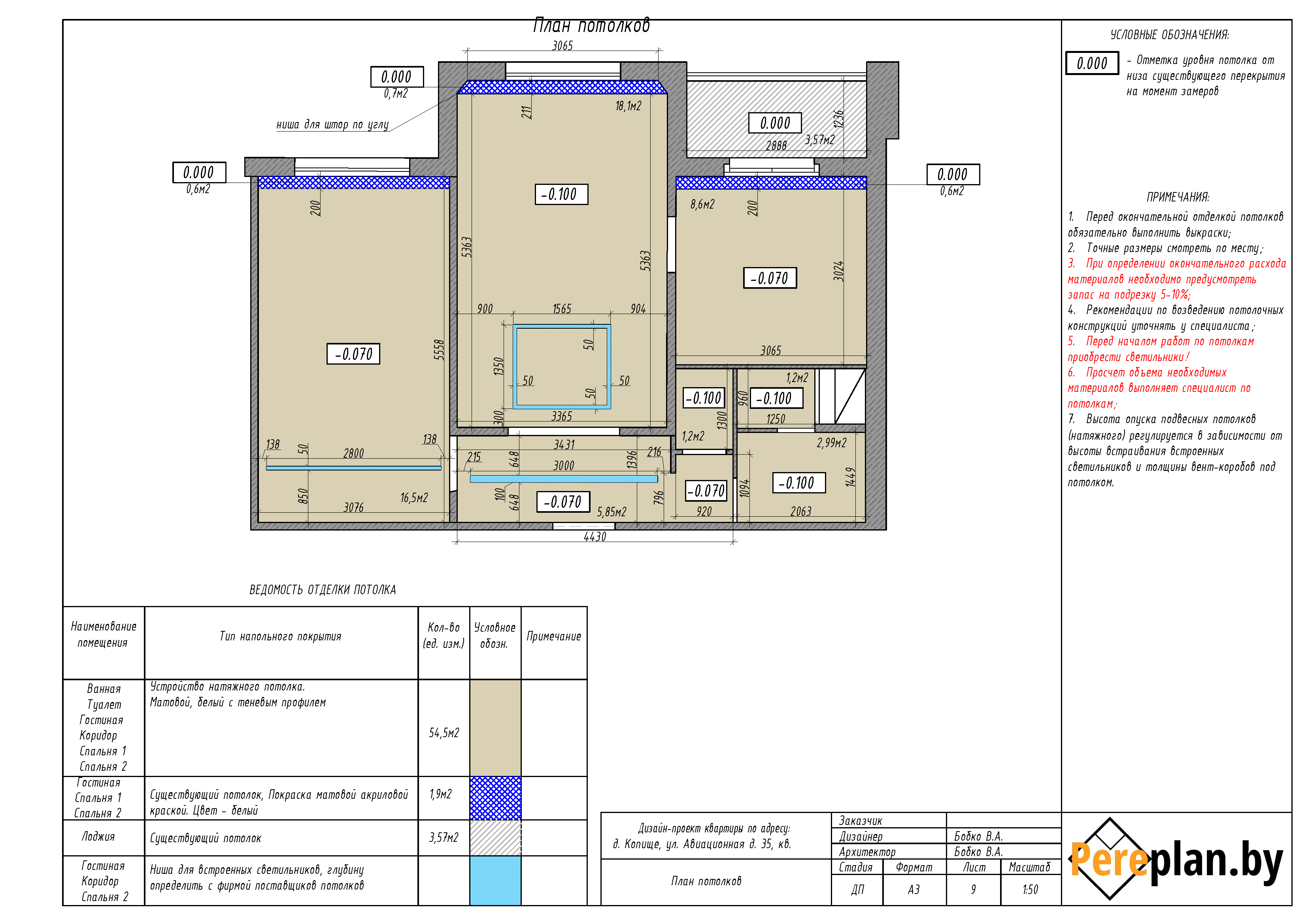Дизайн-проект квартиры по ул. Авиационная, 35 в ЖК «Новая Боровая». Пакет «Технический»