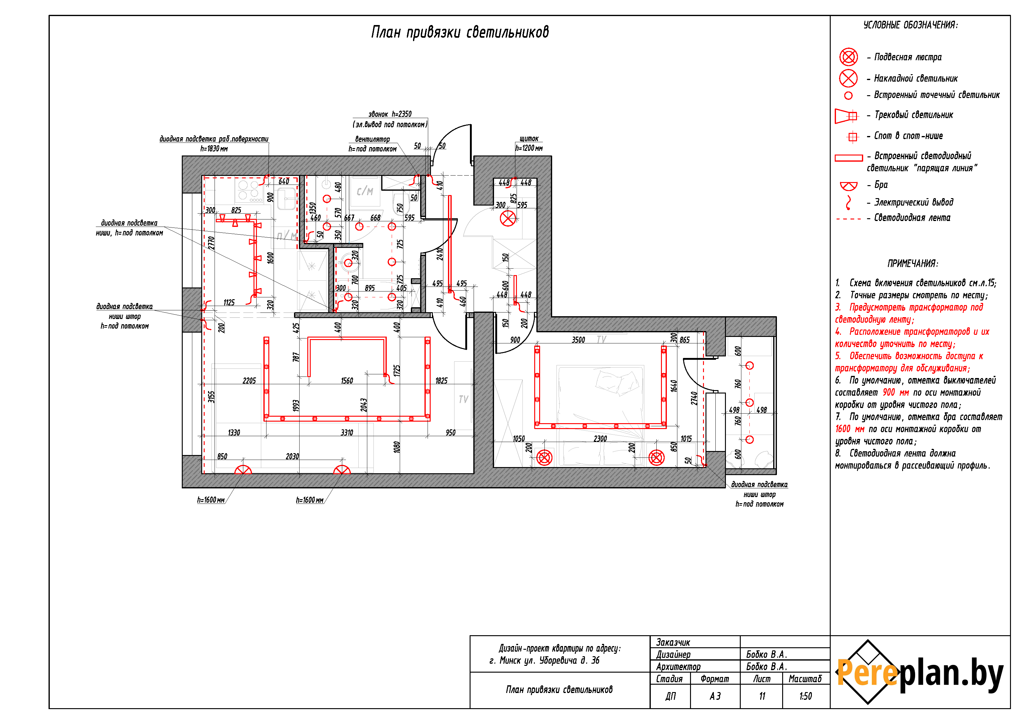 - План привязки светильников.